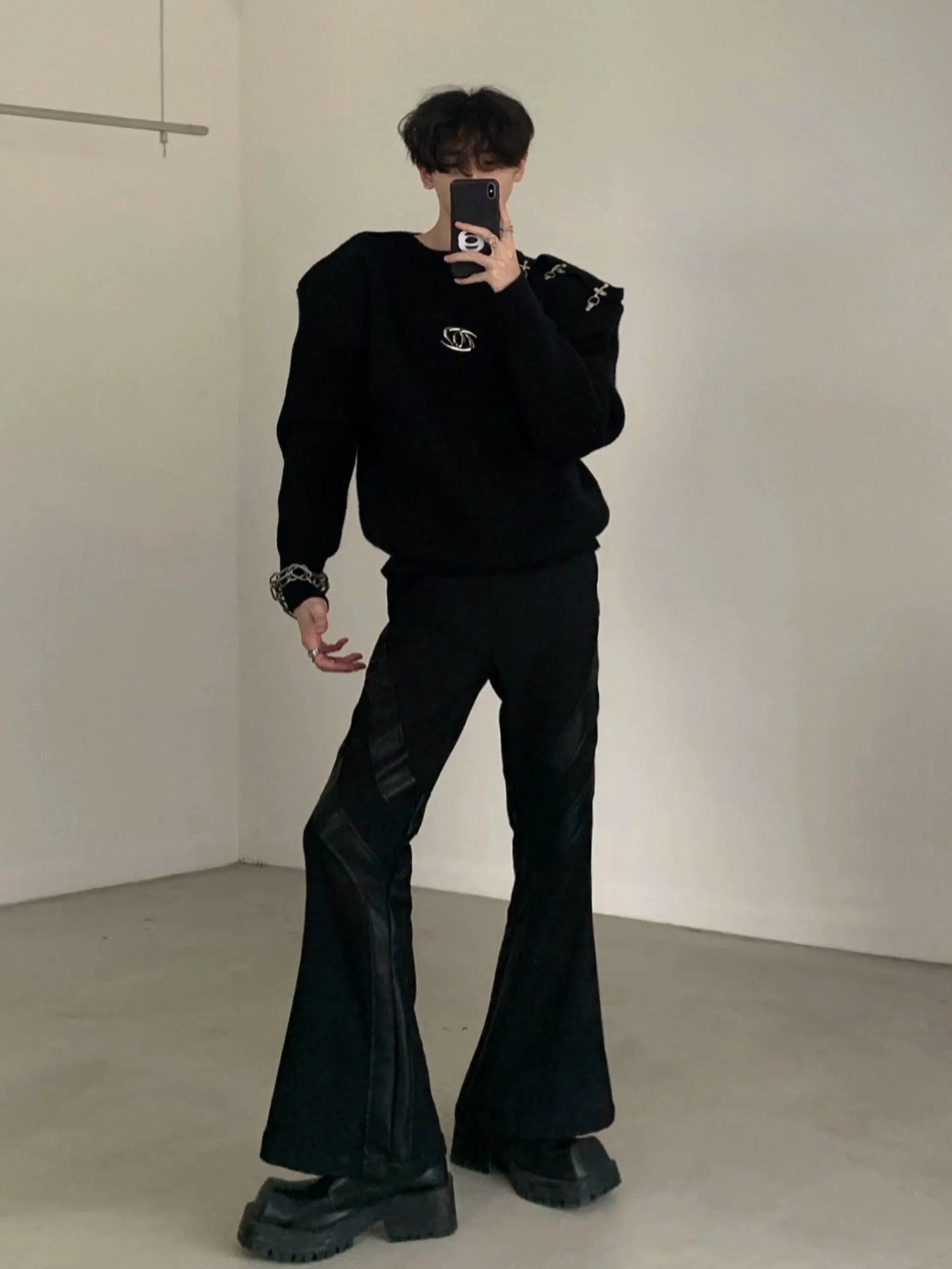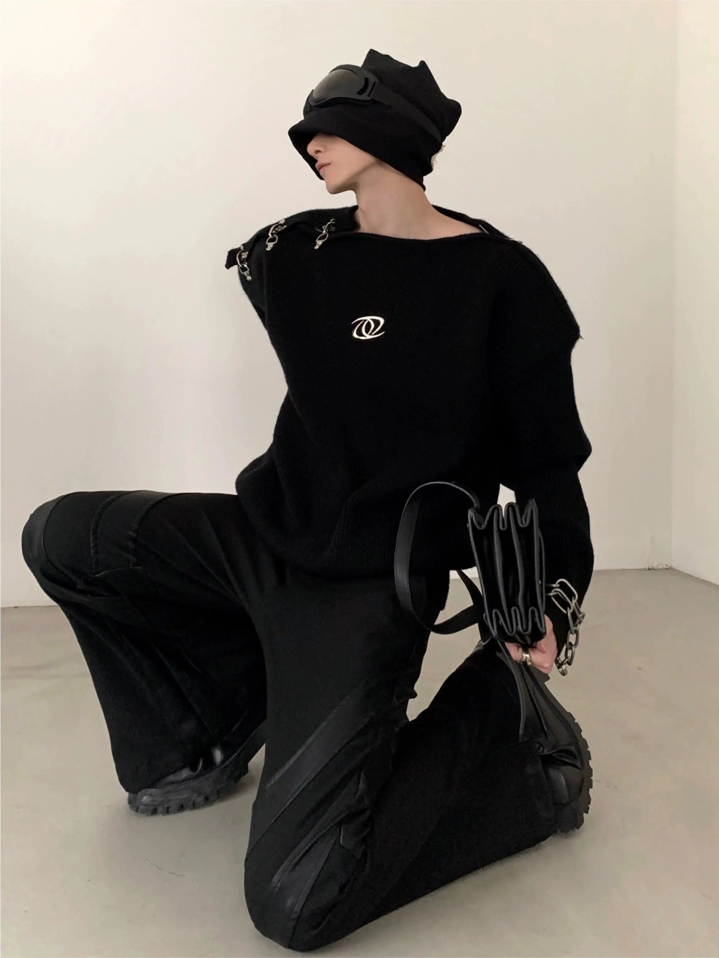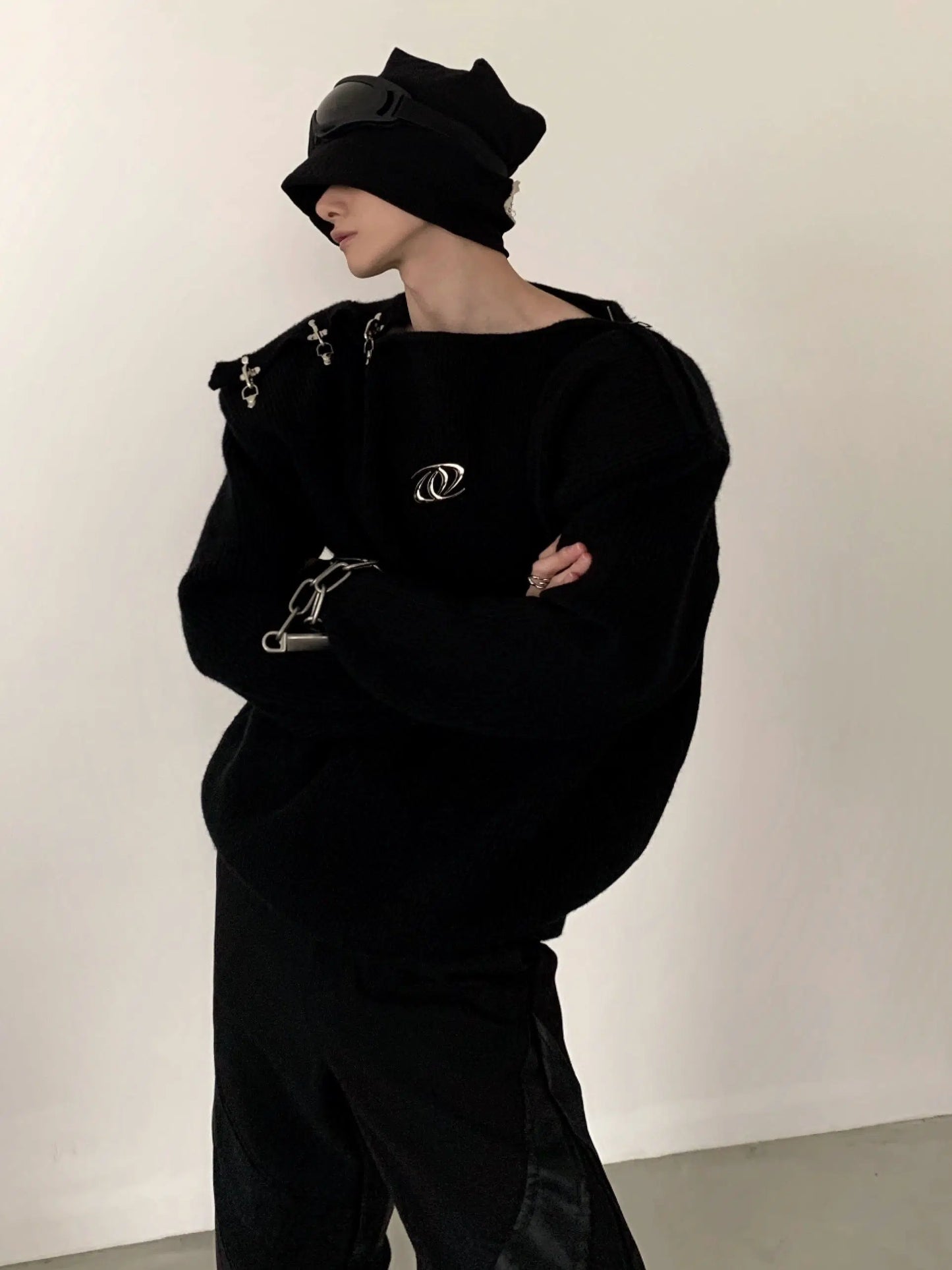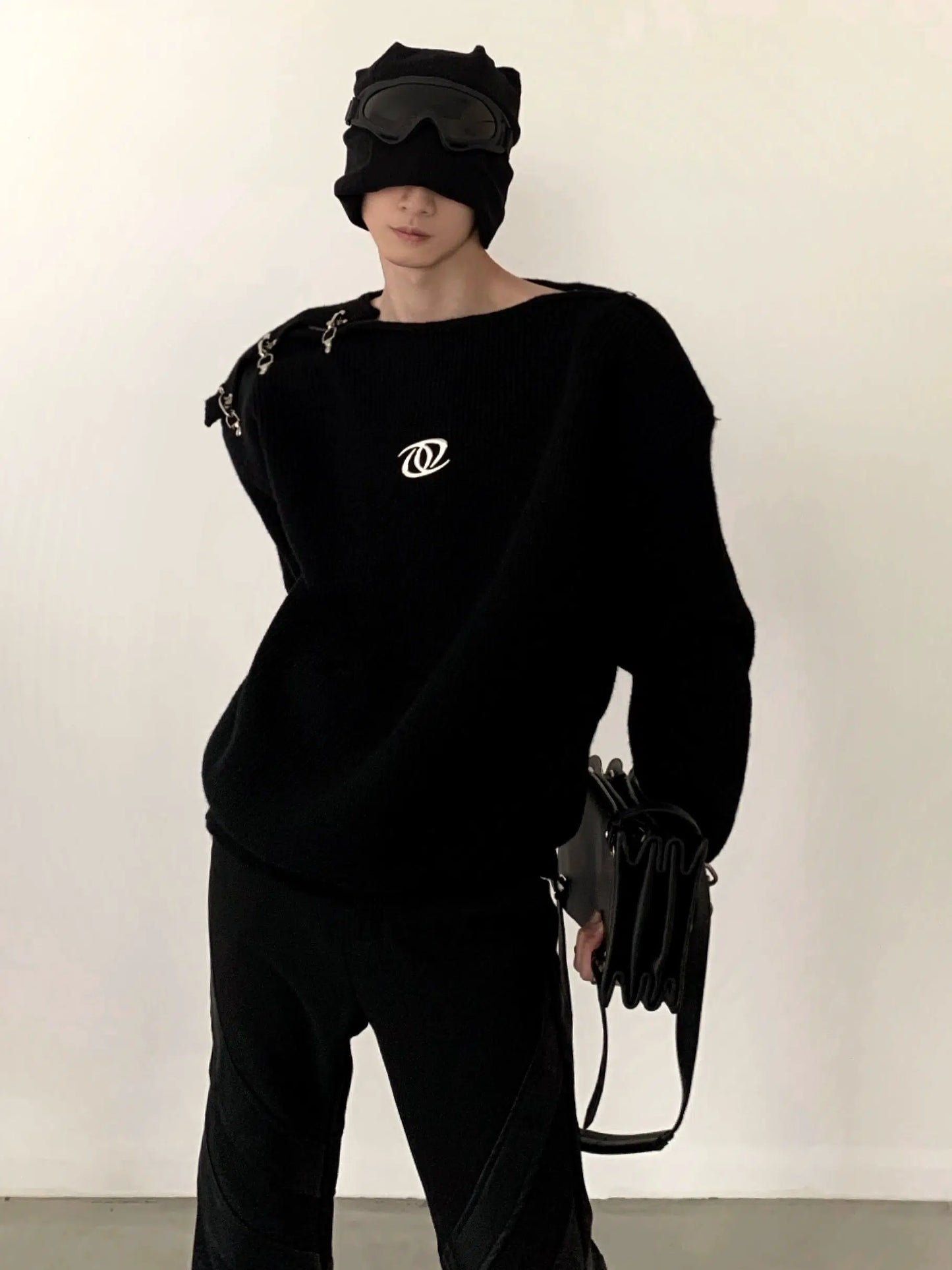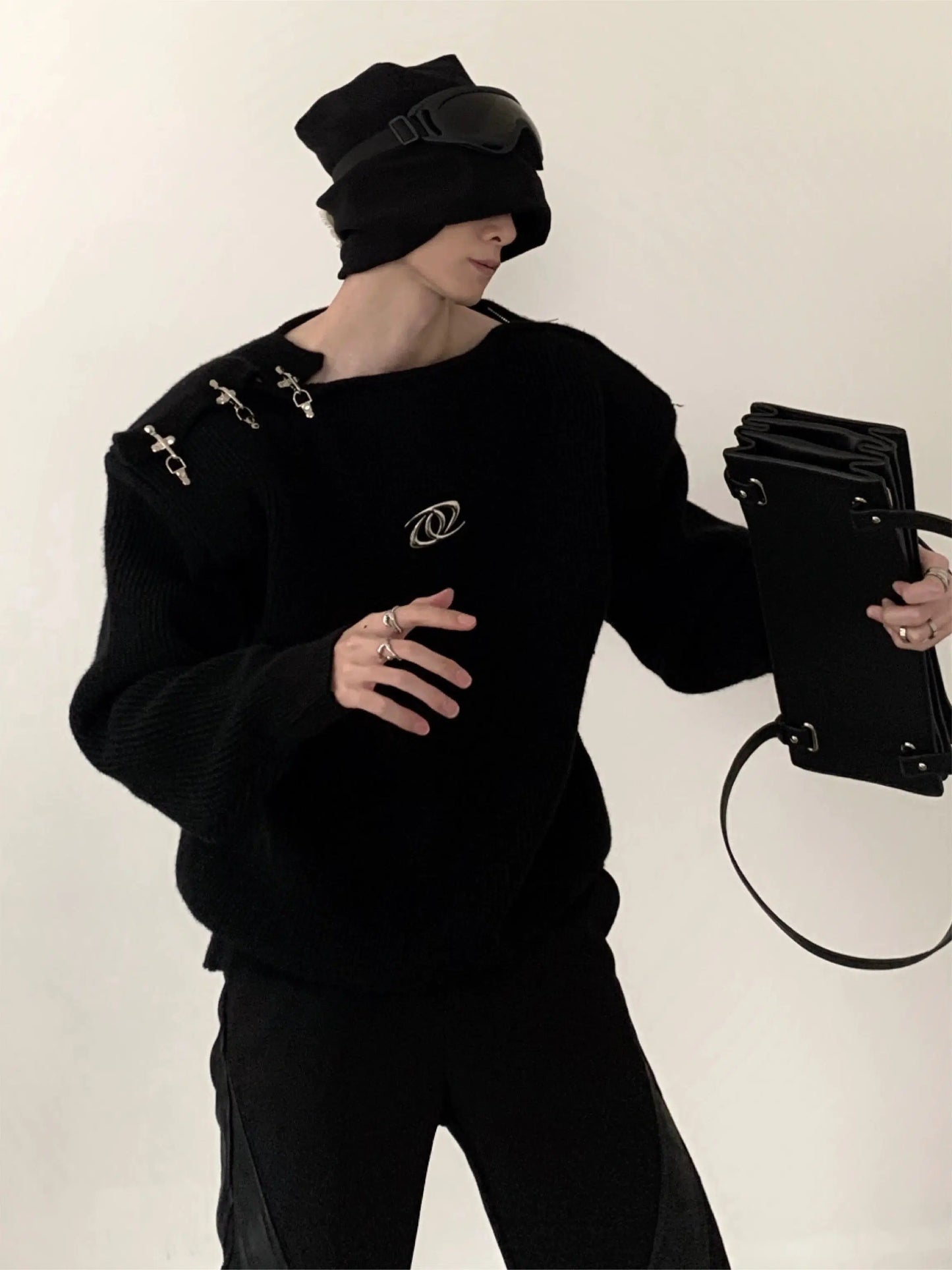 Oversize Metal Buckle Knit Sweater WN2674