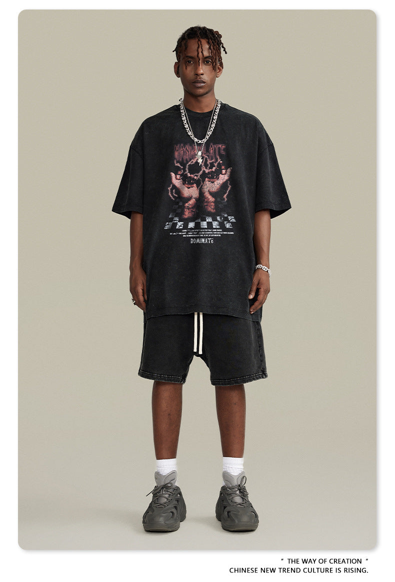 Washed Print Oversize Short-sleeve T-shirt WN6395