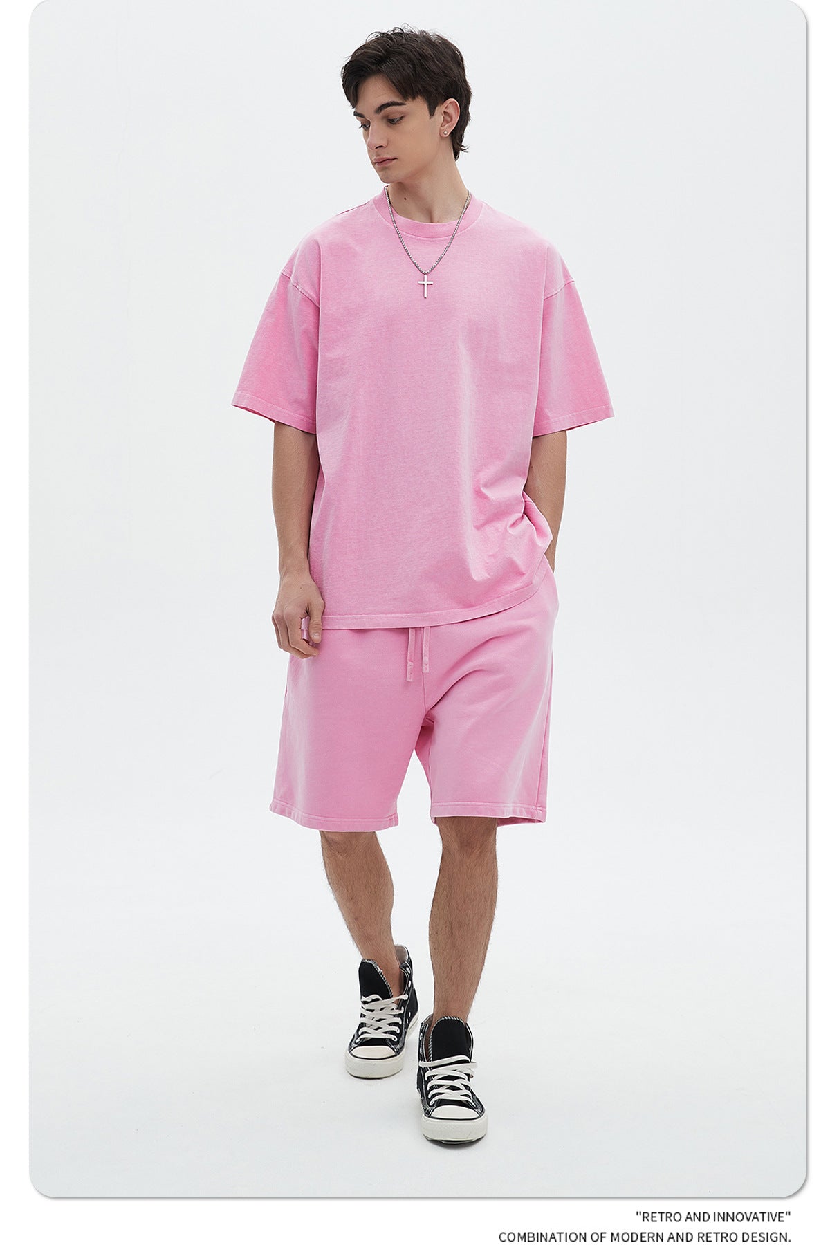 Oversize Washed Short-sleeve-T-shirt & Washed Short Sweatpants Setup WN6633-K