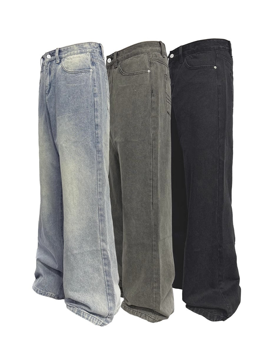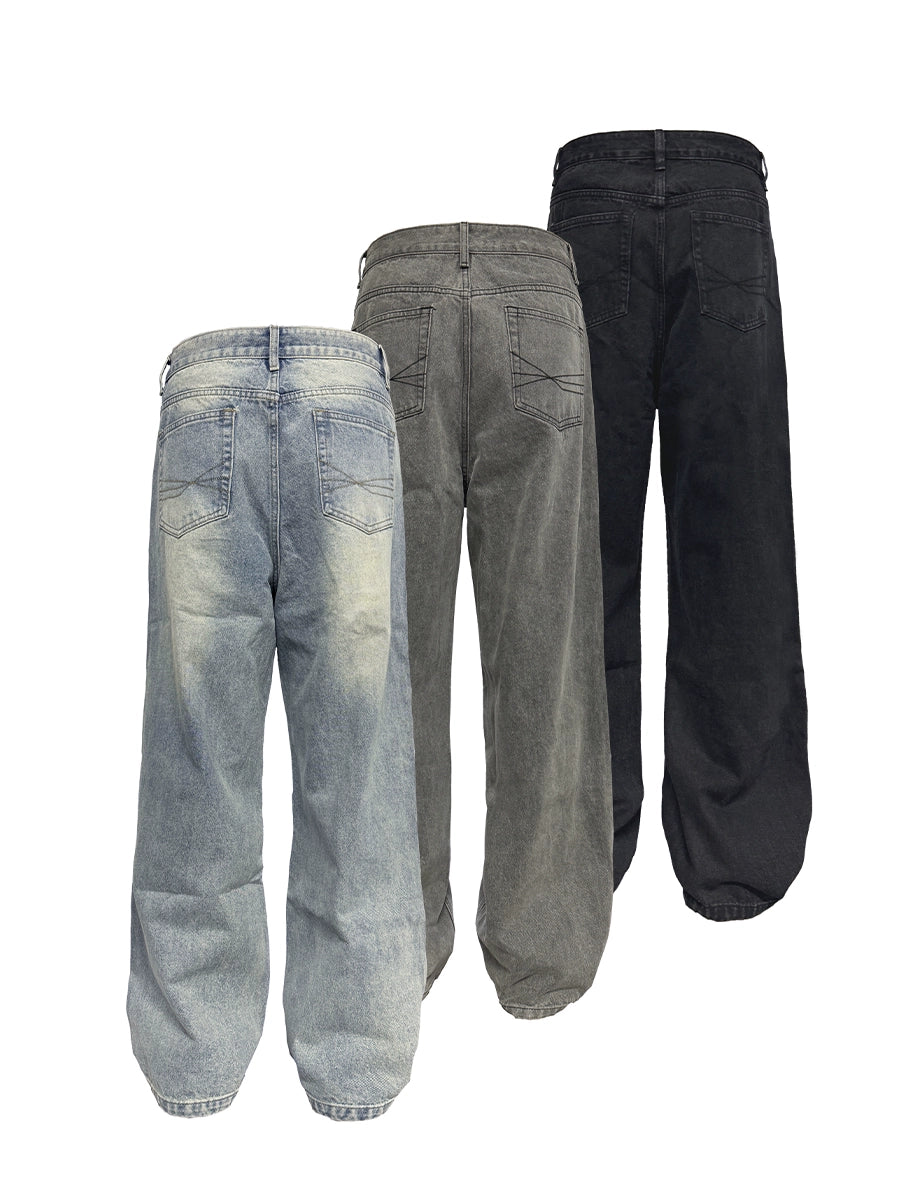 Washed Wide-Leg Straight Denim Jeans WN8584