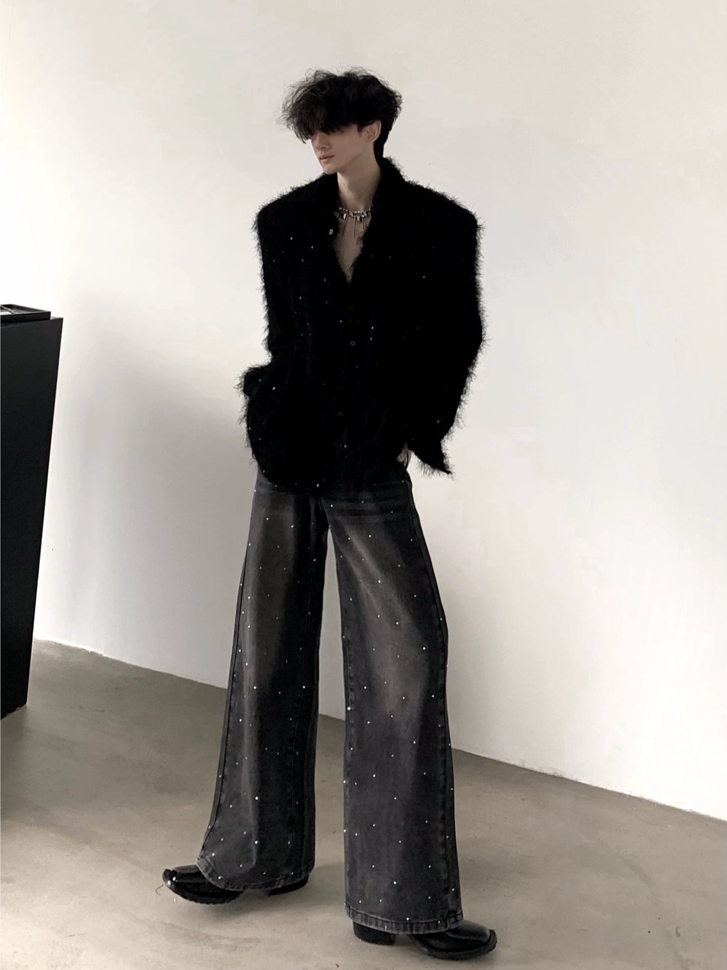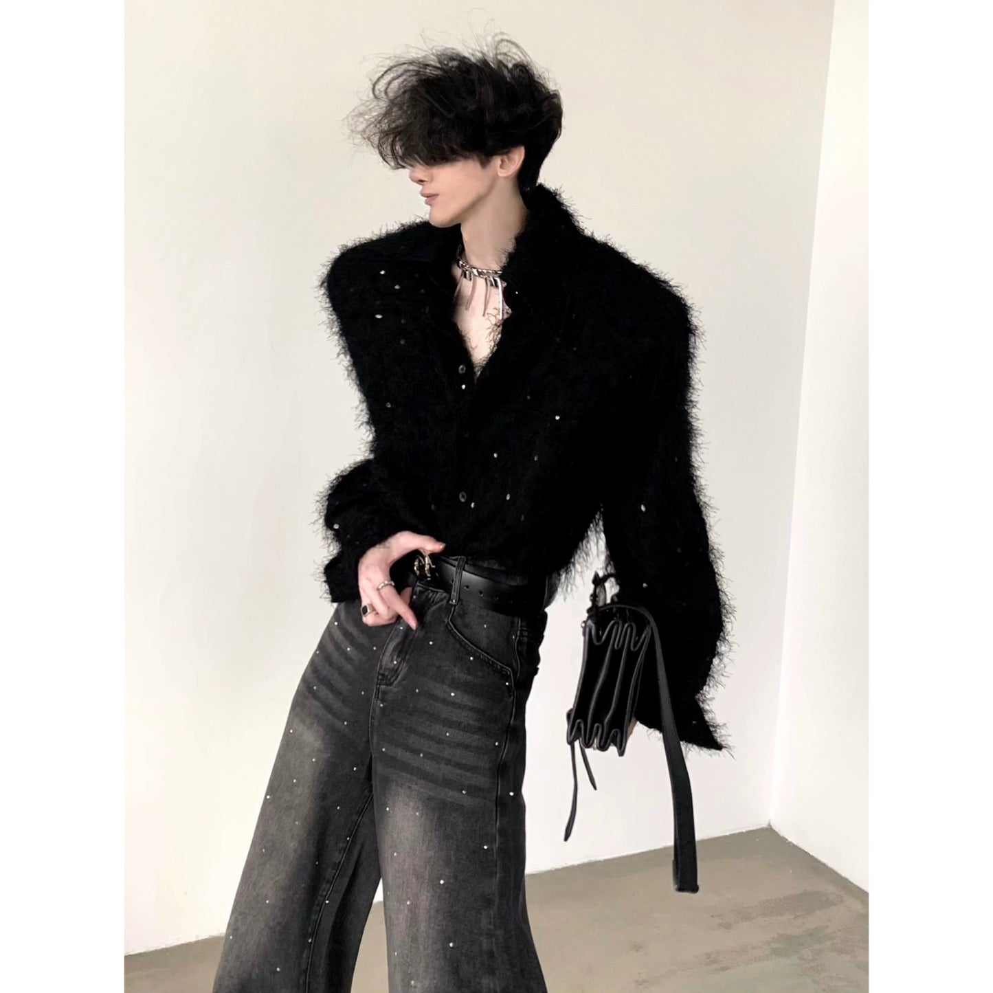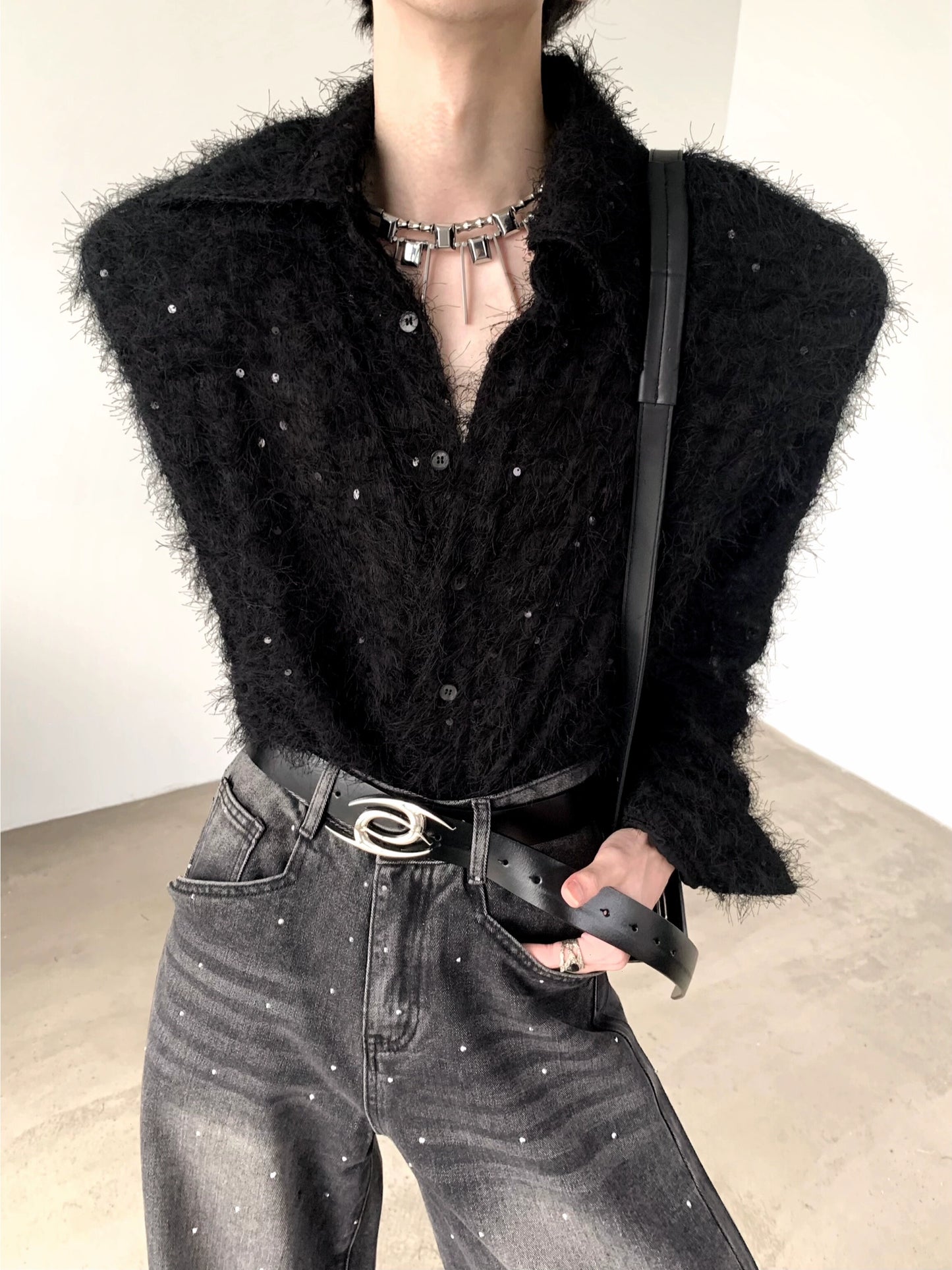 Fake Fur Shoulder Pad Polo Knit Cardigan WN9172