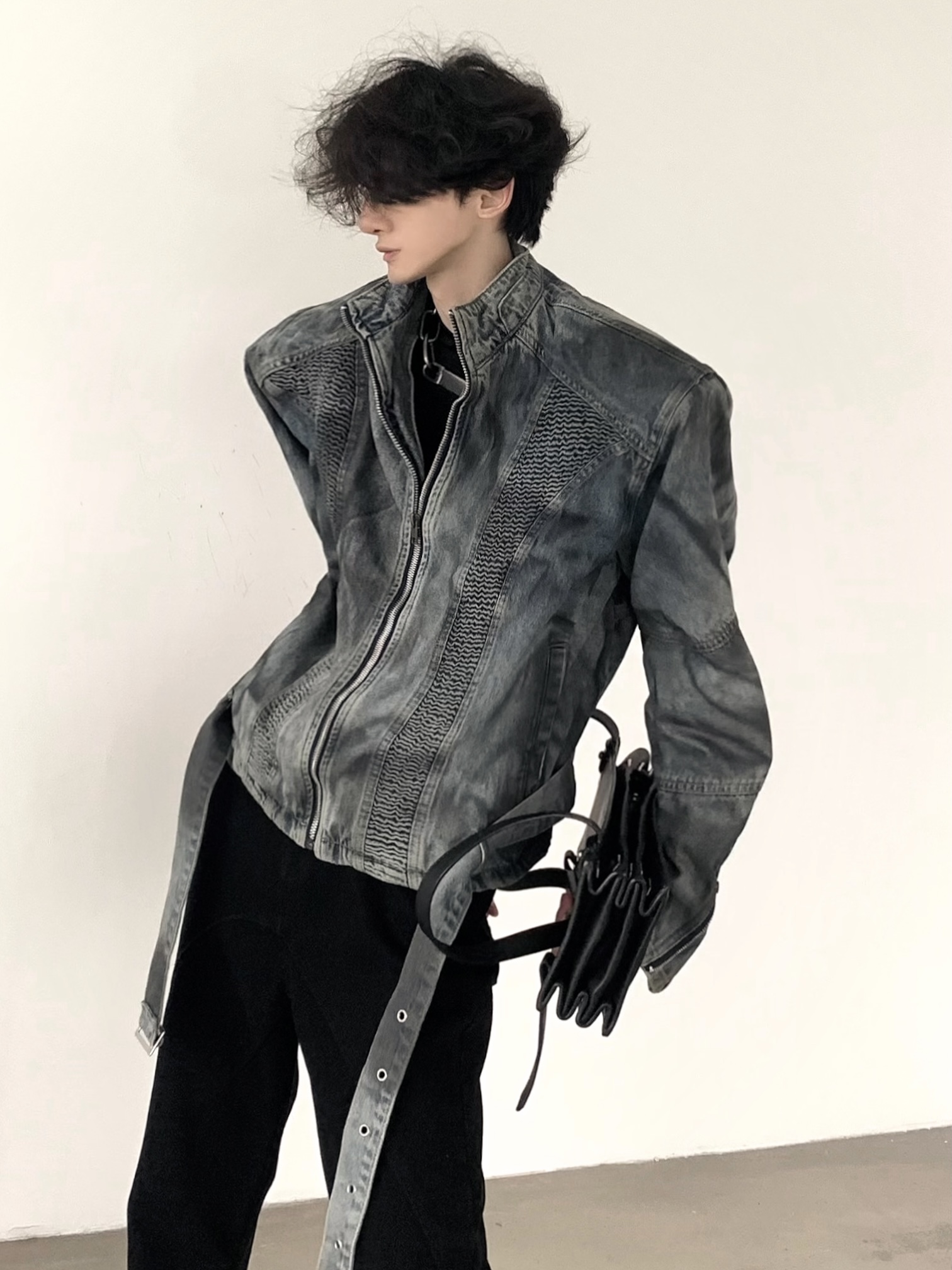 Pleats Design Shoulder Pad Denim Short Jacket WN9190