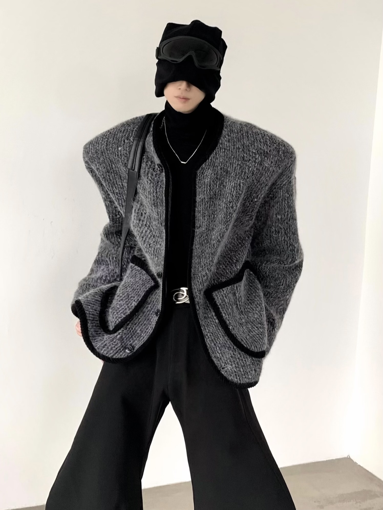 Fake Wool Shoulder Pad Cardigan WN9197