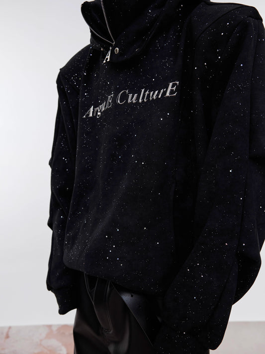 Shoulder Pad Short Zipper Hoodie & Wide Leg Sweatpants Setup WN7357