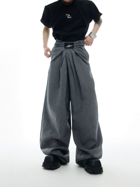 Drape Silhouette Pleats Wide Leg Trousers WN16165
