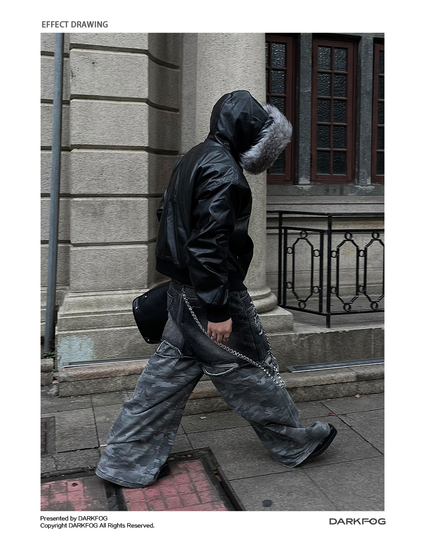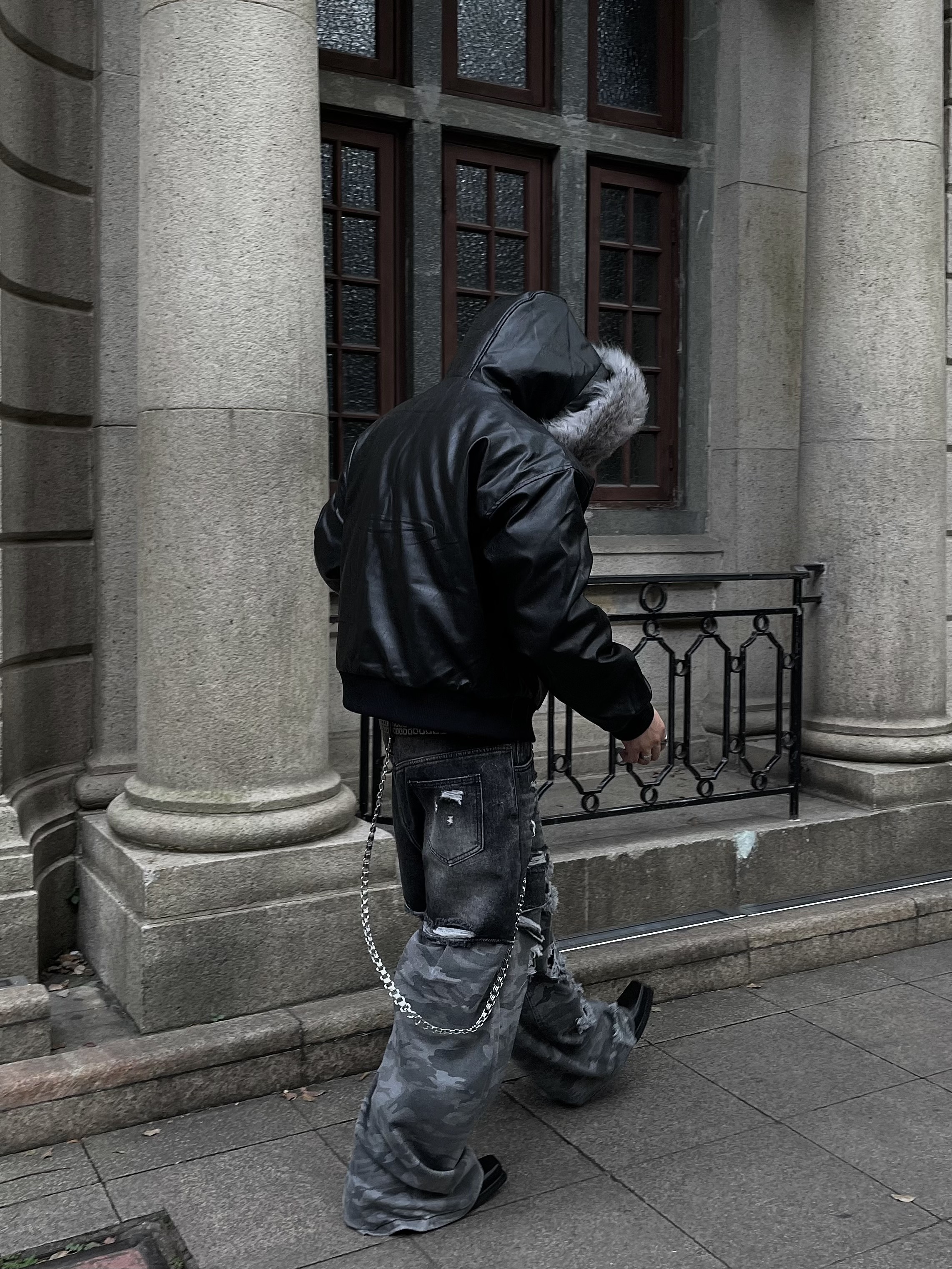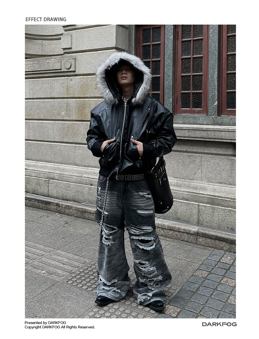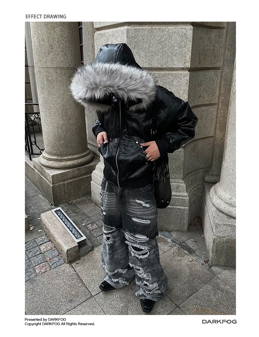 Detachable Fake Fur Collar Hooded PU Leather Short Jacket WN11757