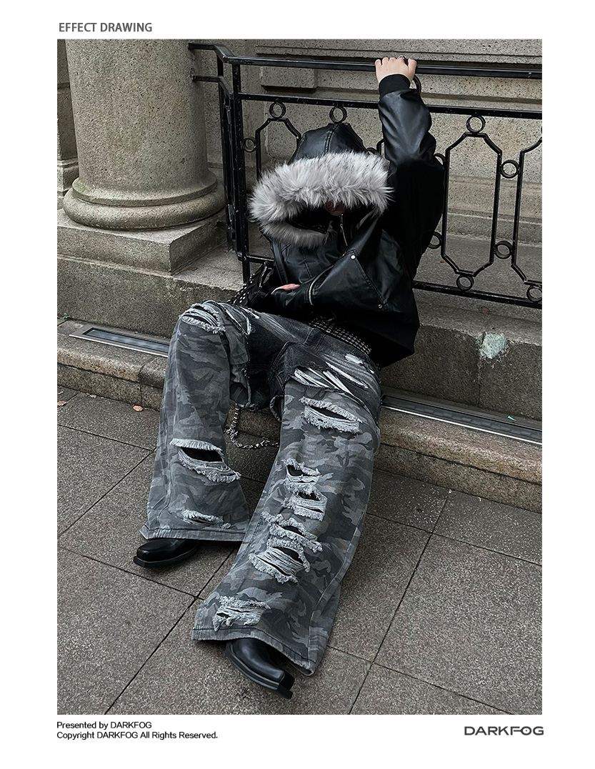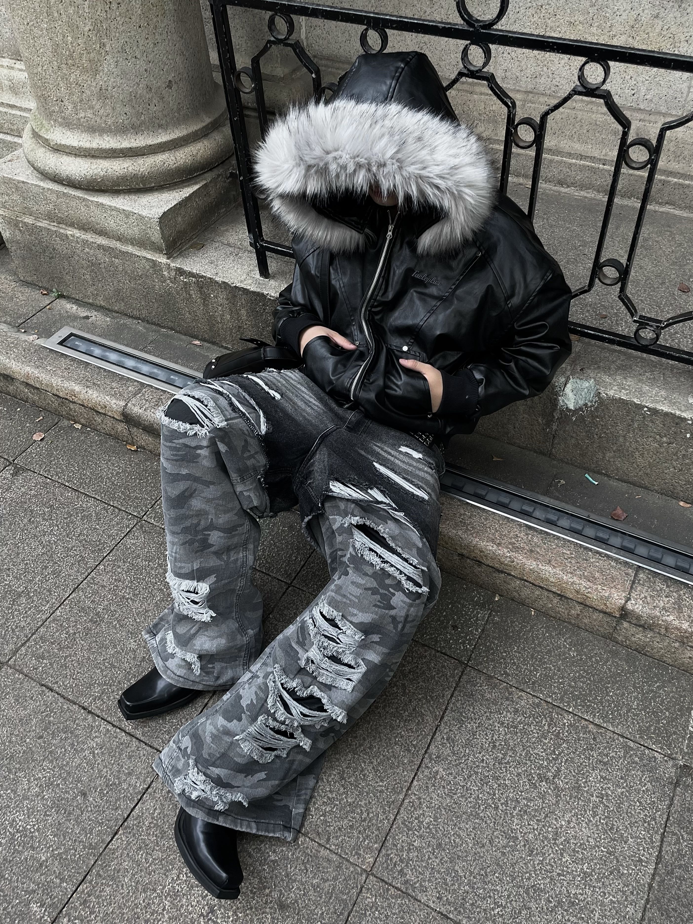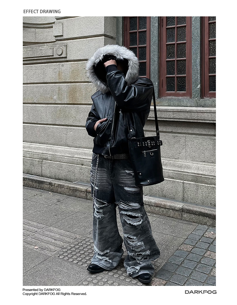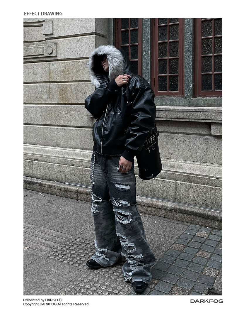 Detachable Fake Fur Collar Hooded PU Leather Short Jacket WN11757