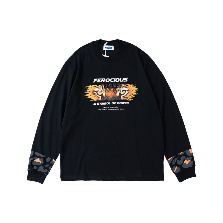 Tiger Print Oversize Drop-Shoulder Long Sleeve T-Shirt WN12517