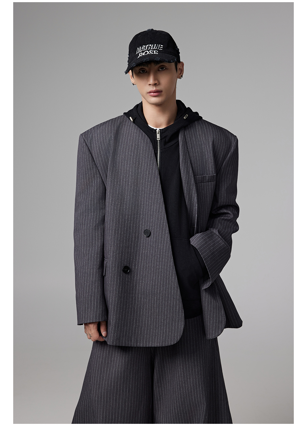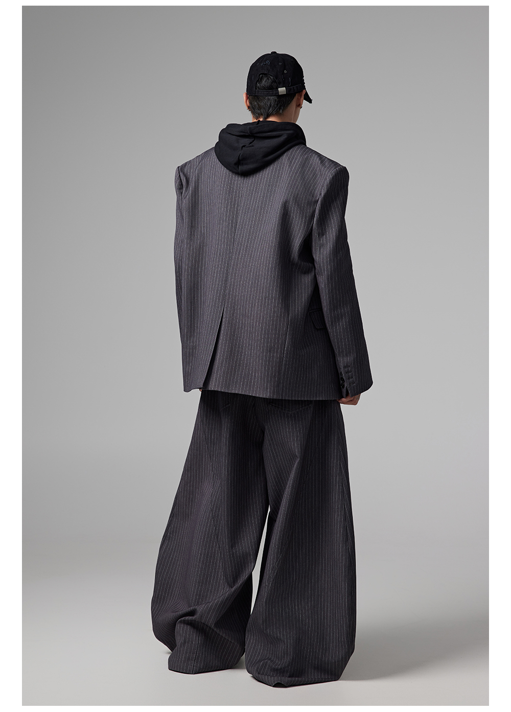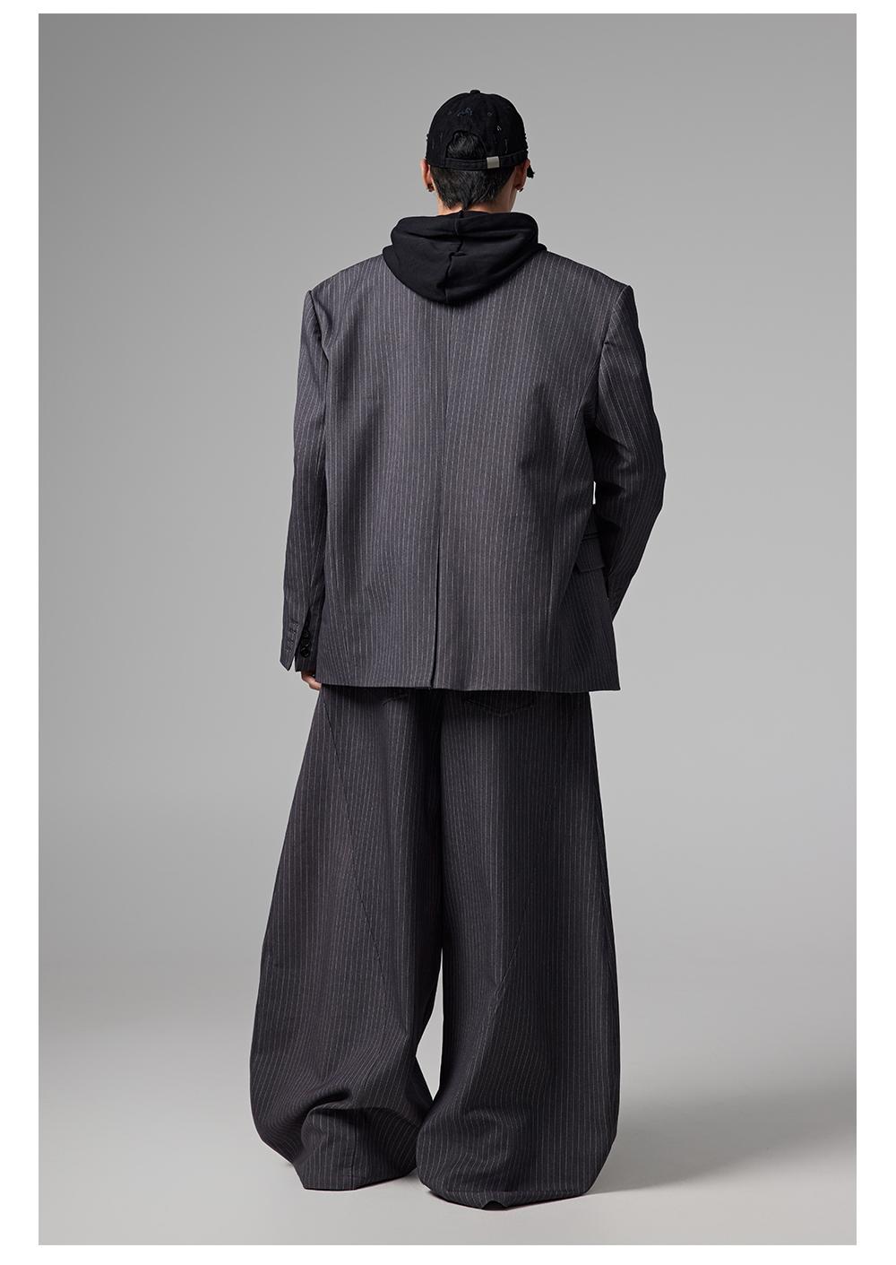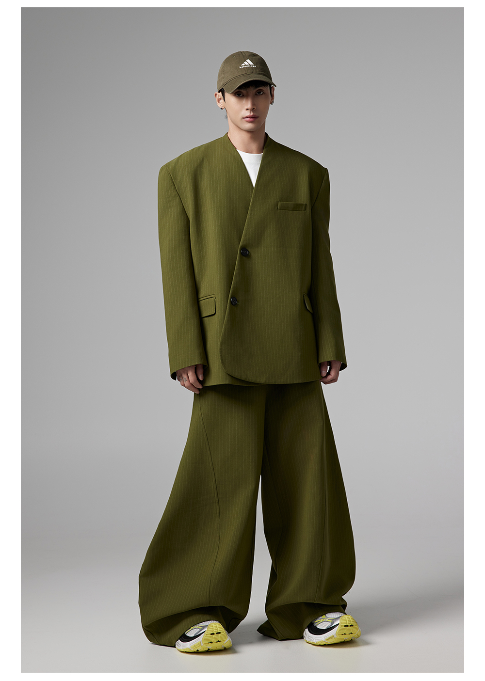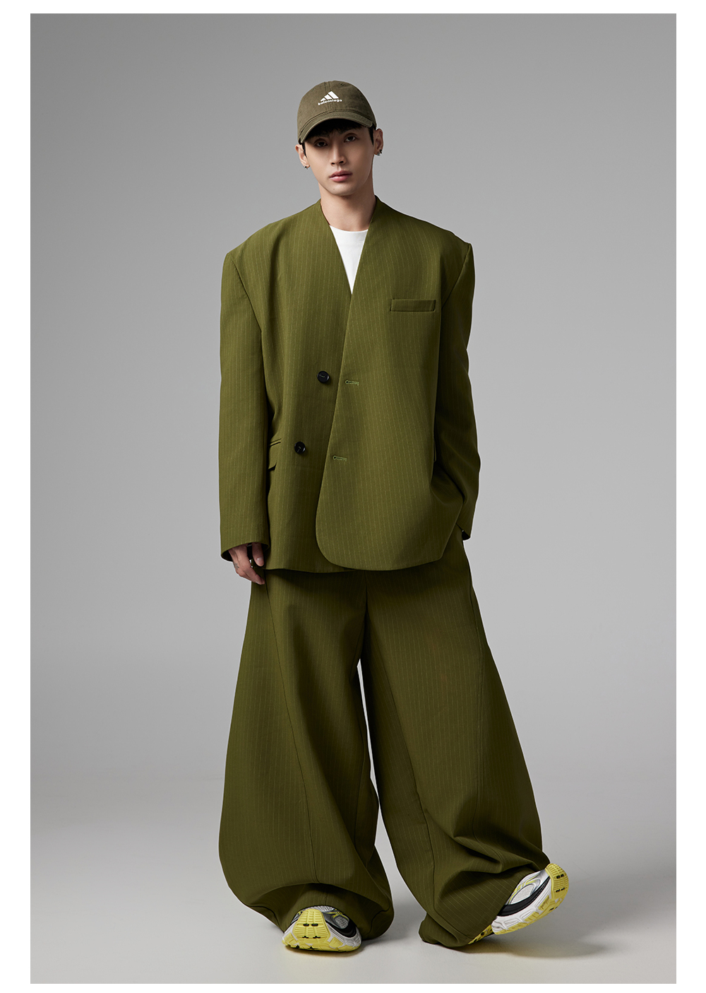 Collarless Stripe Oversize Tailored Jacket & Trousers Setup WN13299