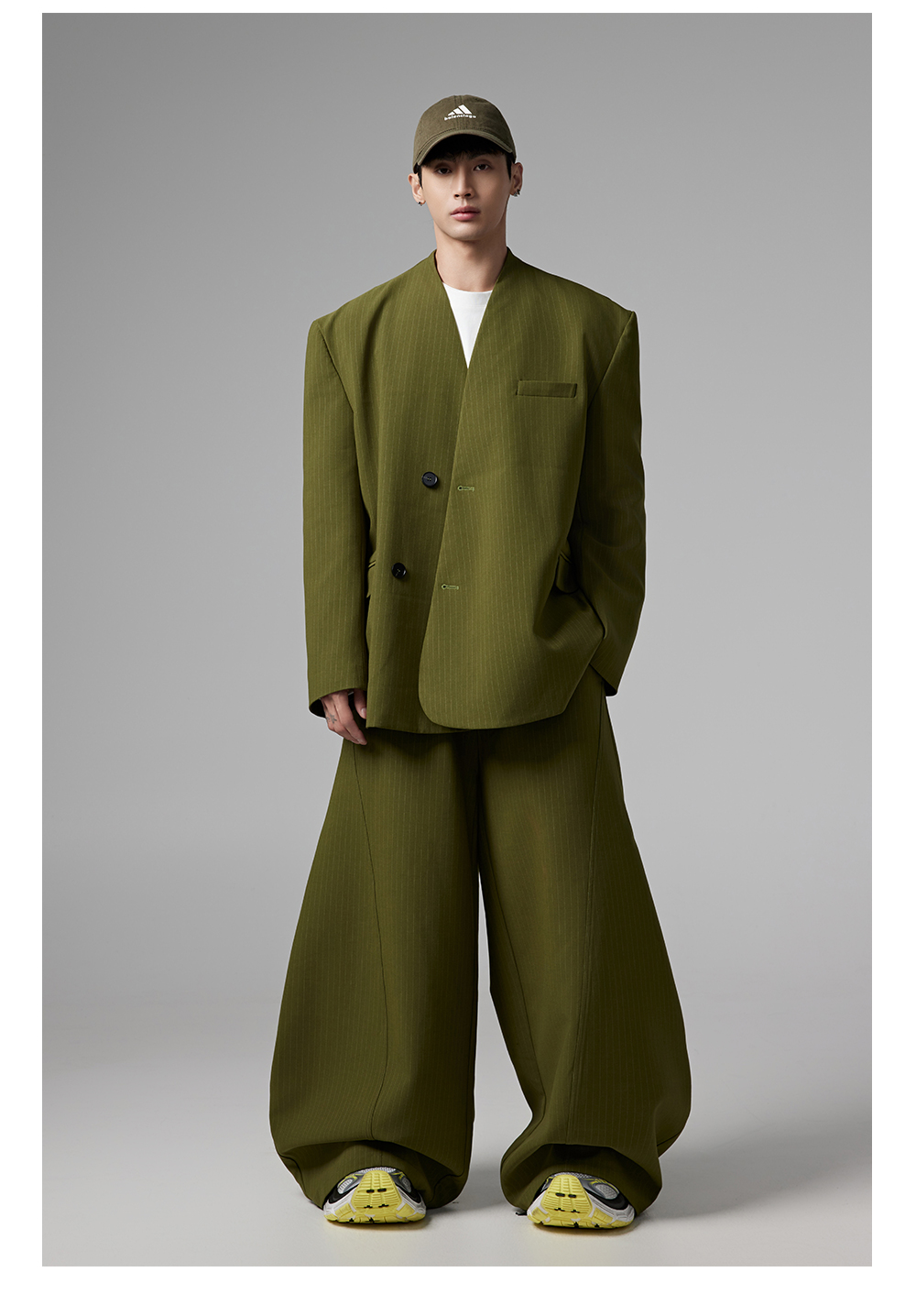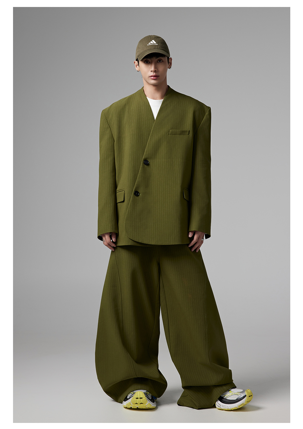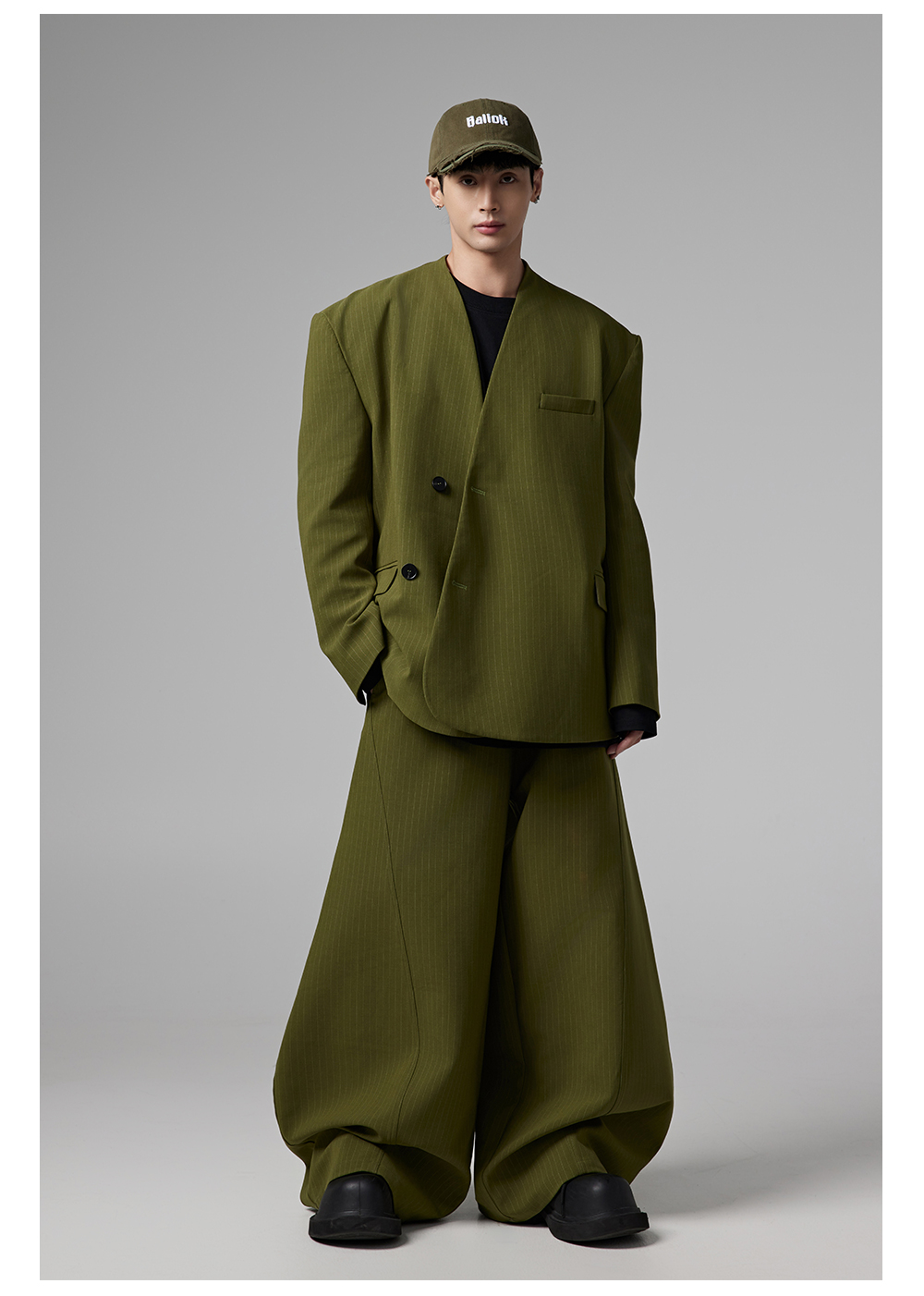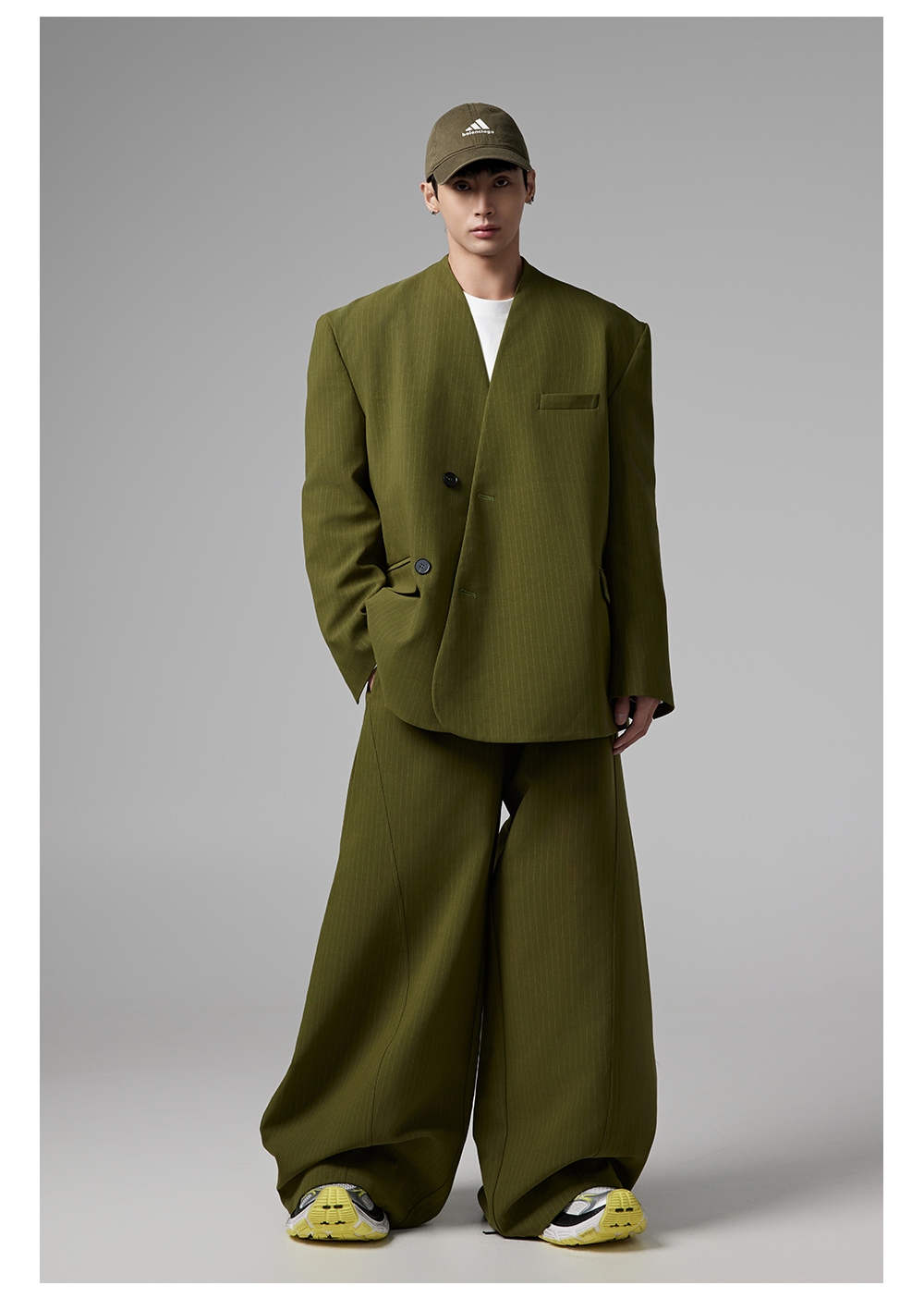 Collarless Stripe Oversize Tailored Jacket & Trousers Setup WN13299