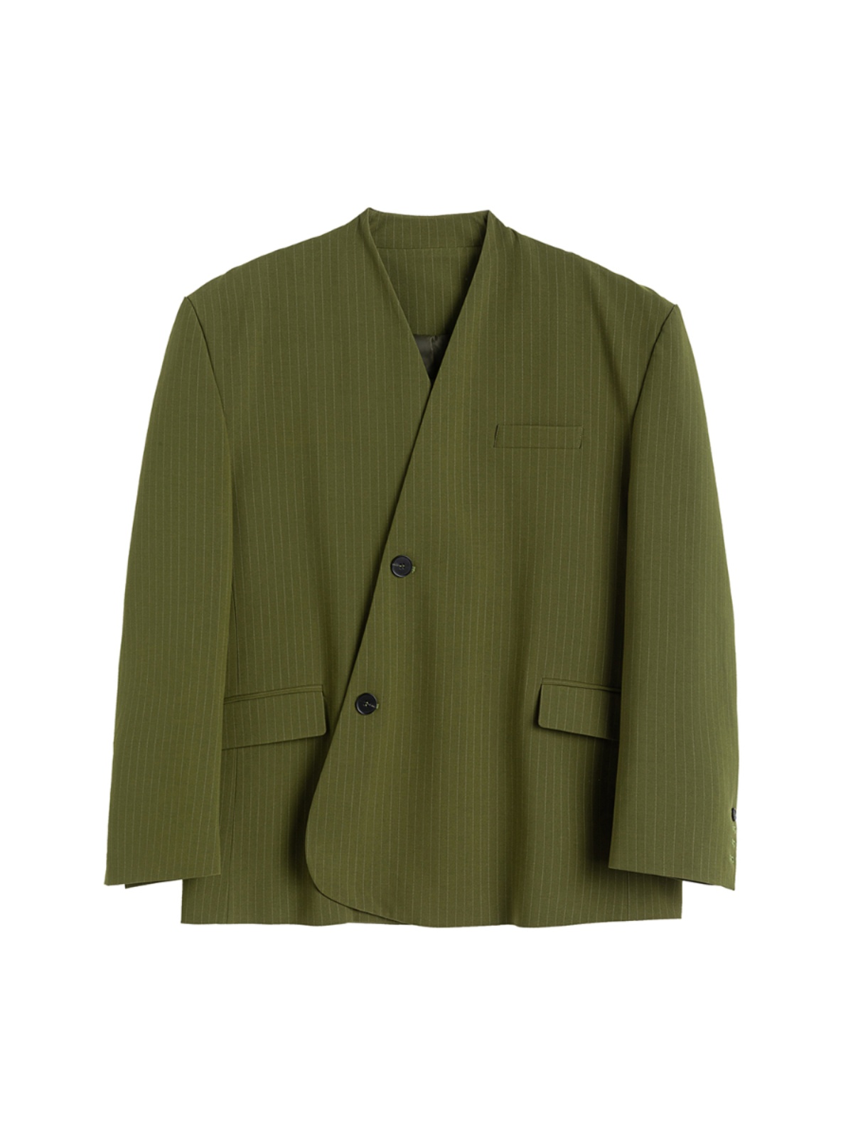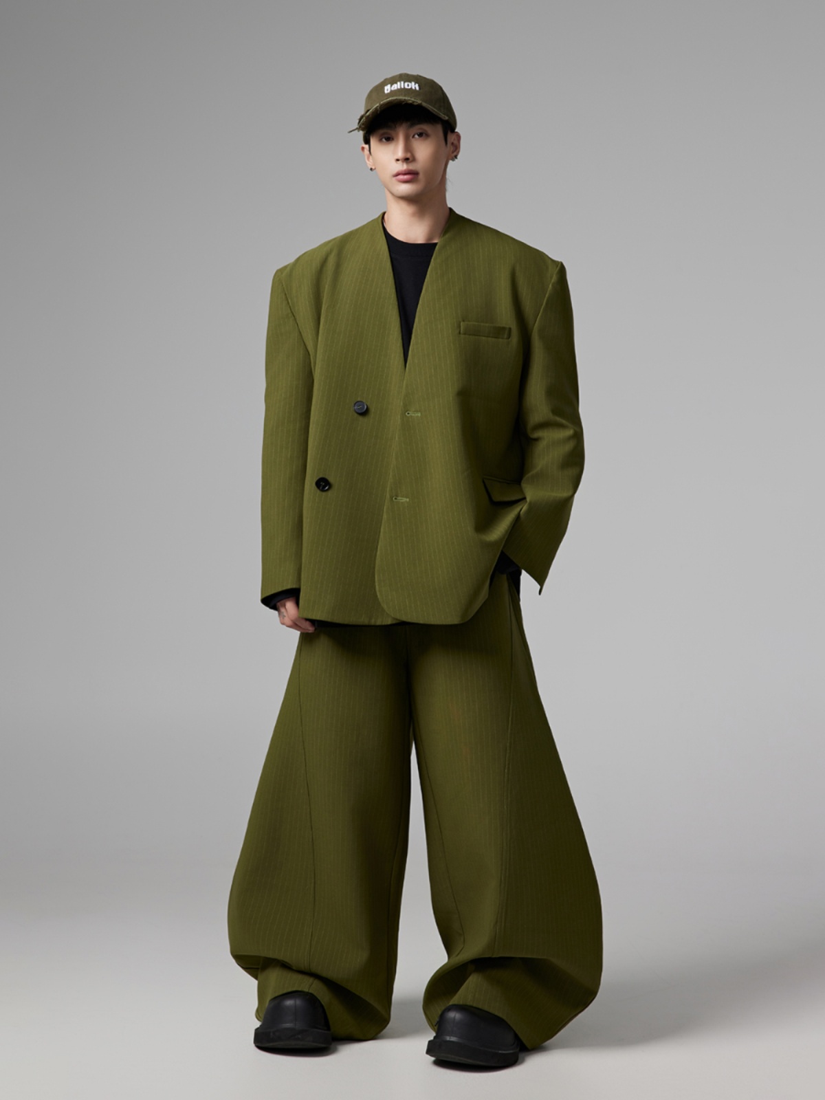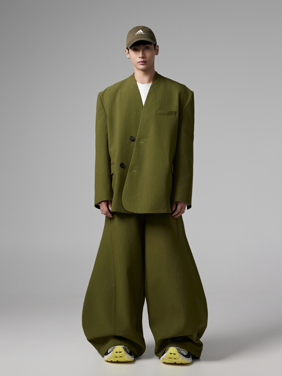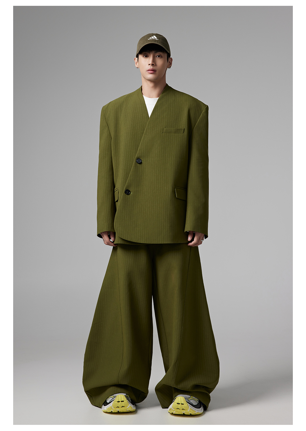 Collarless Stripe Oversize Tailored Jacket & Trousers Setup WN13299