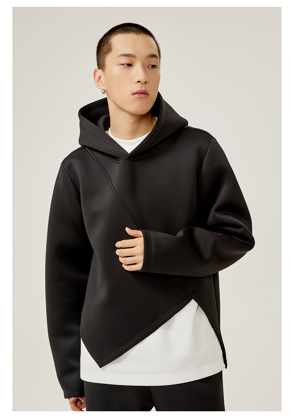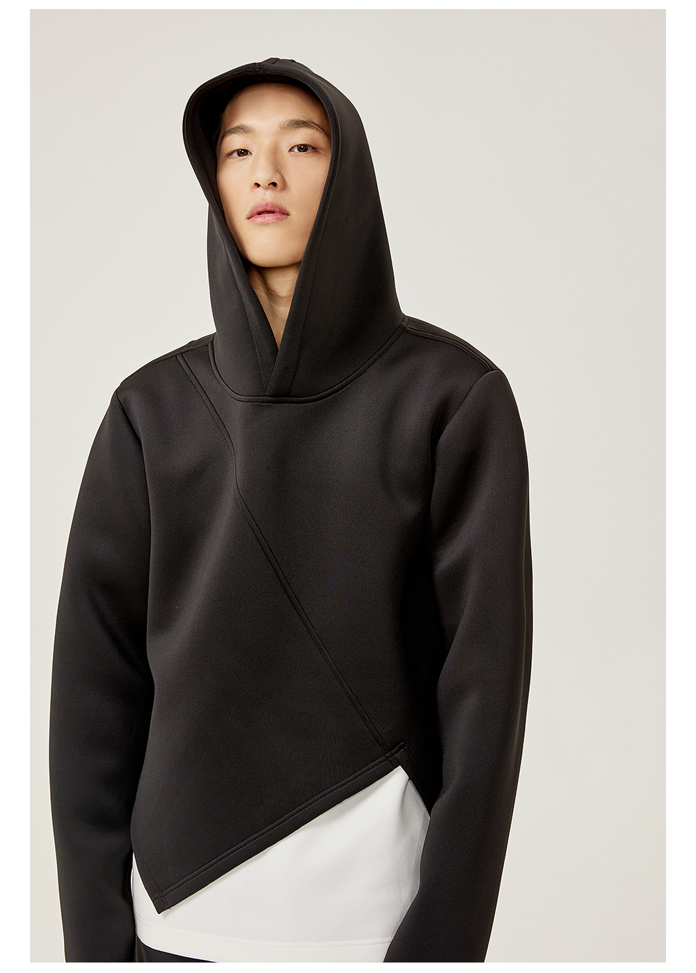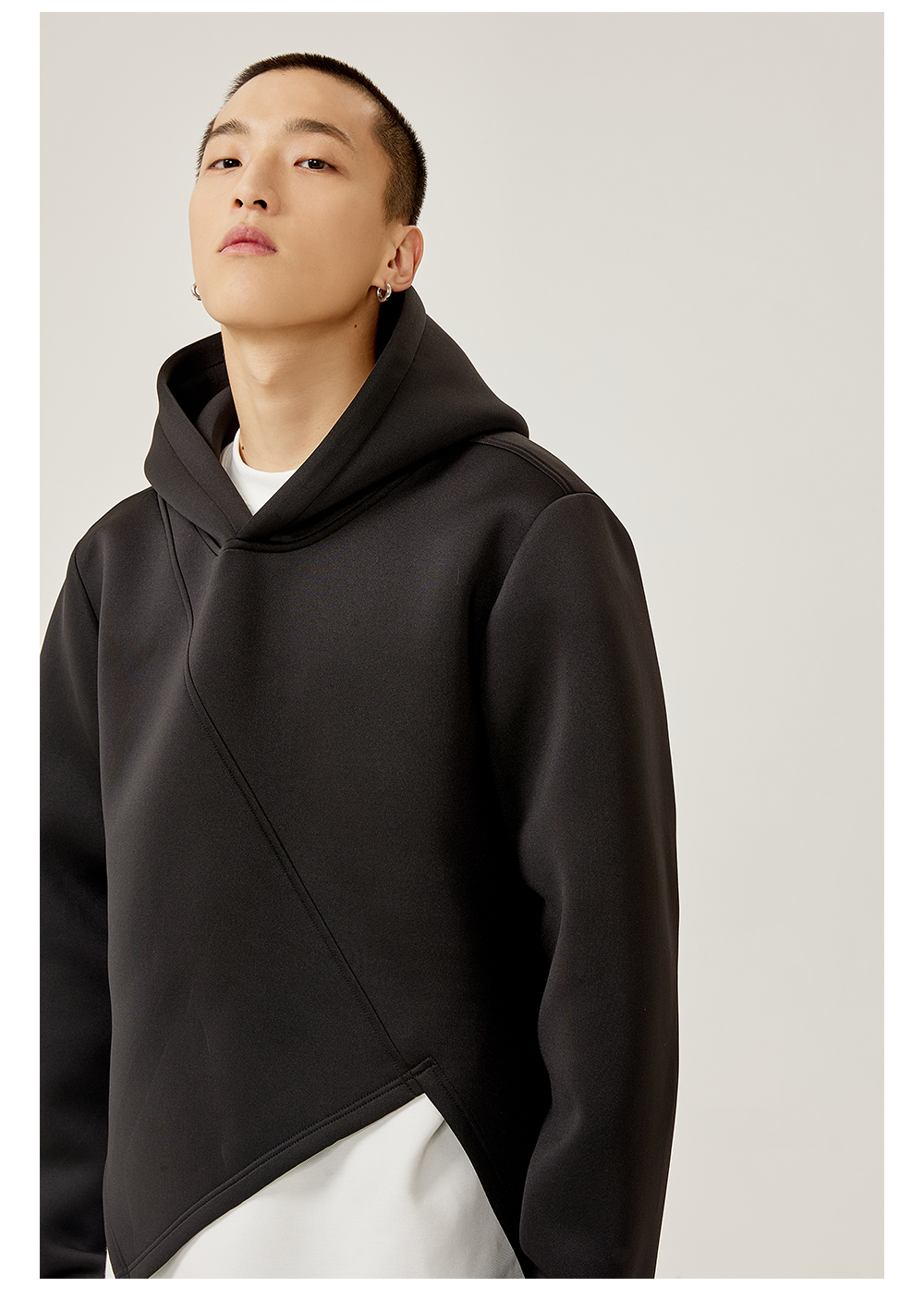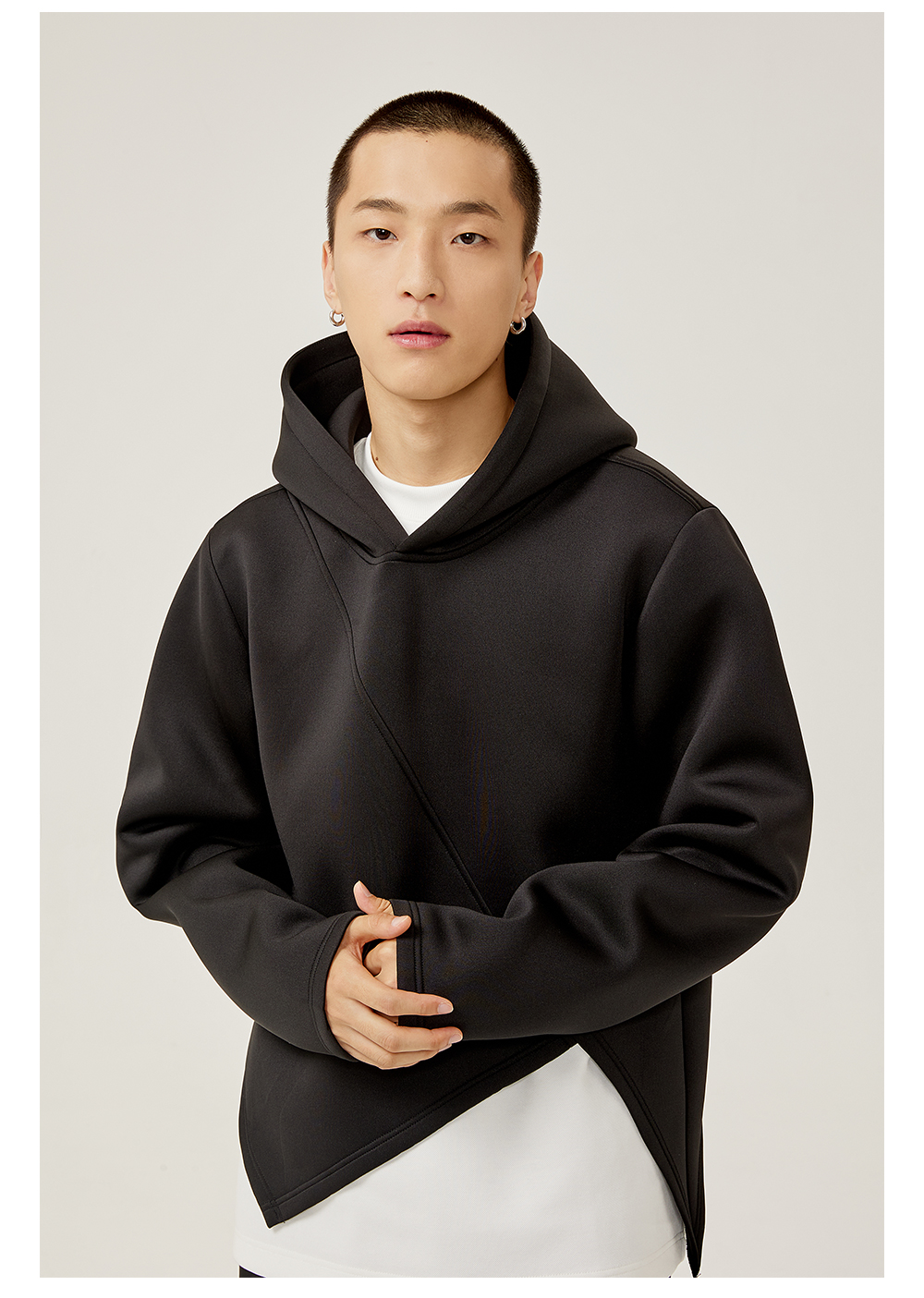 Asymmetric Oversize Black Pullover Hoodie WN13317