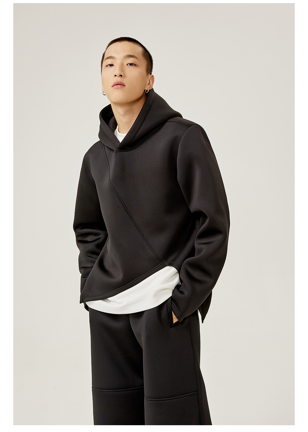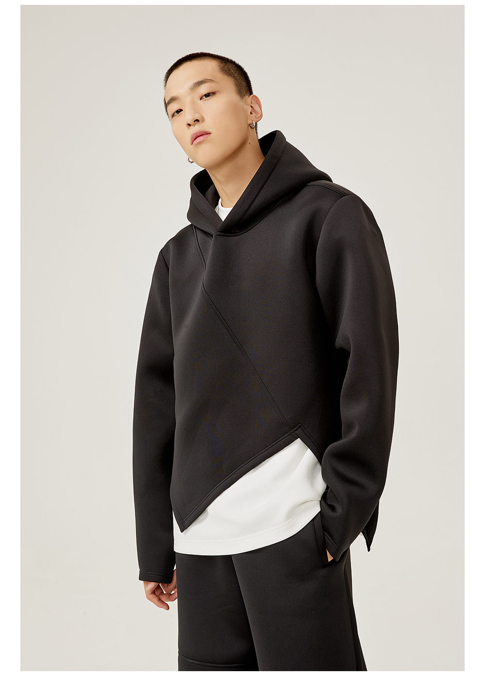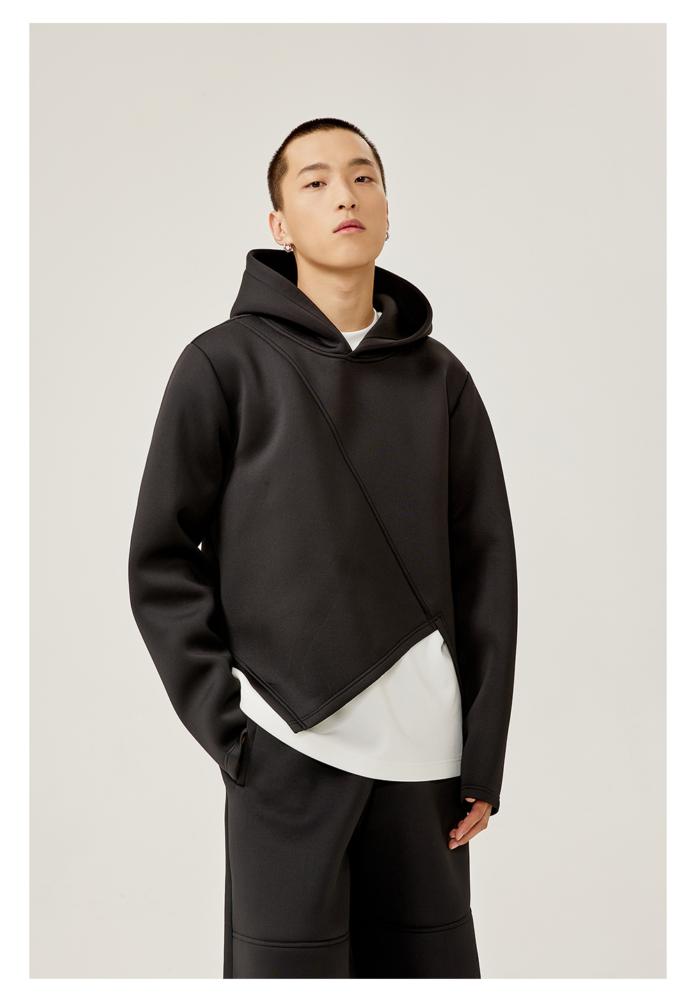 Asymmetric Oversize Black Pullover Hoodie WN13317