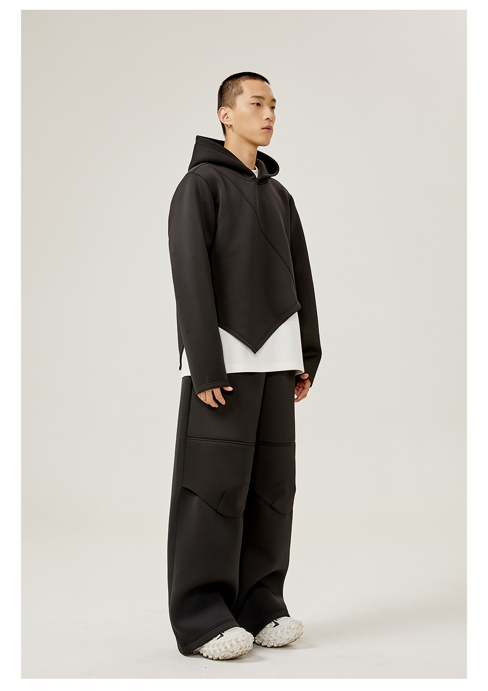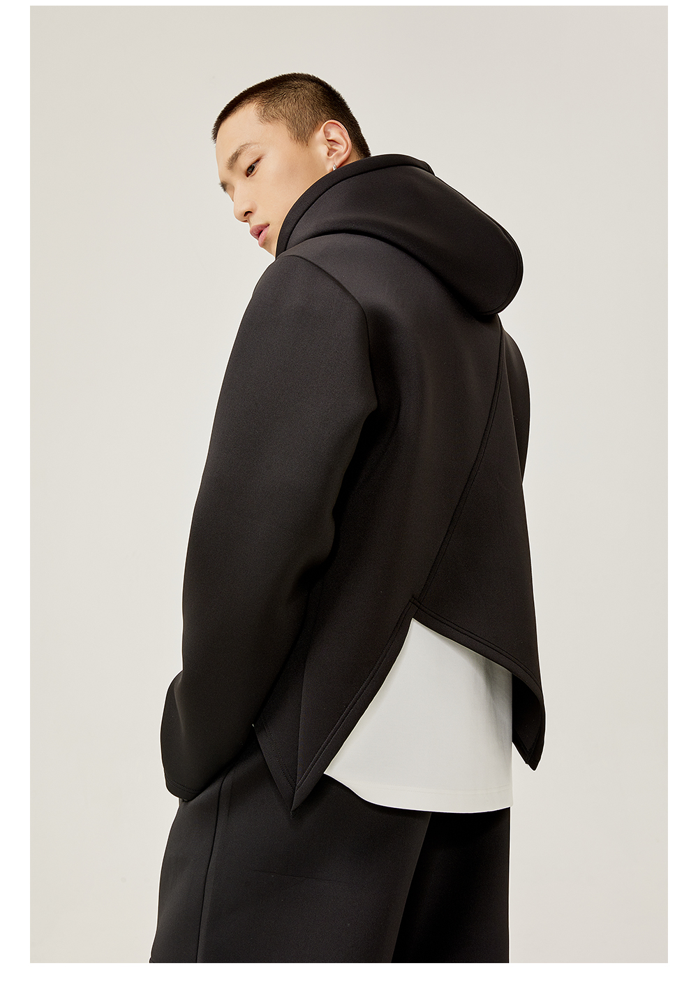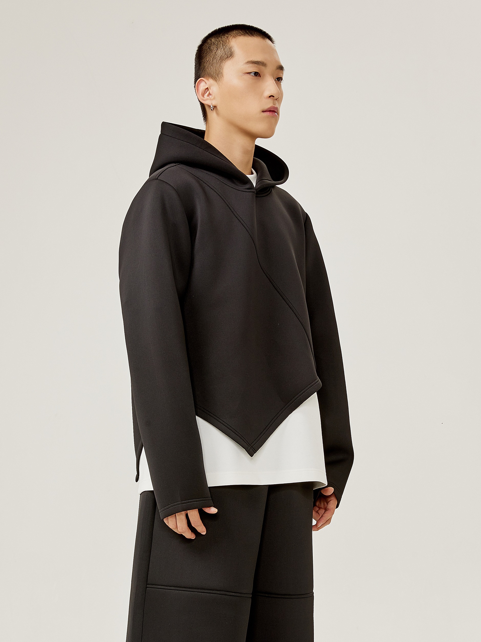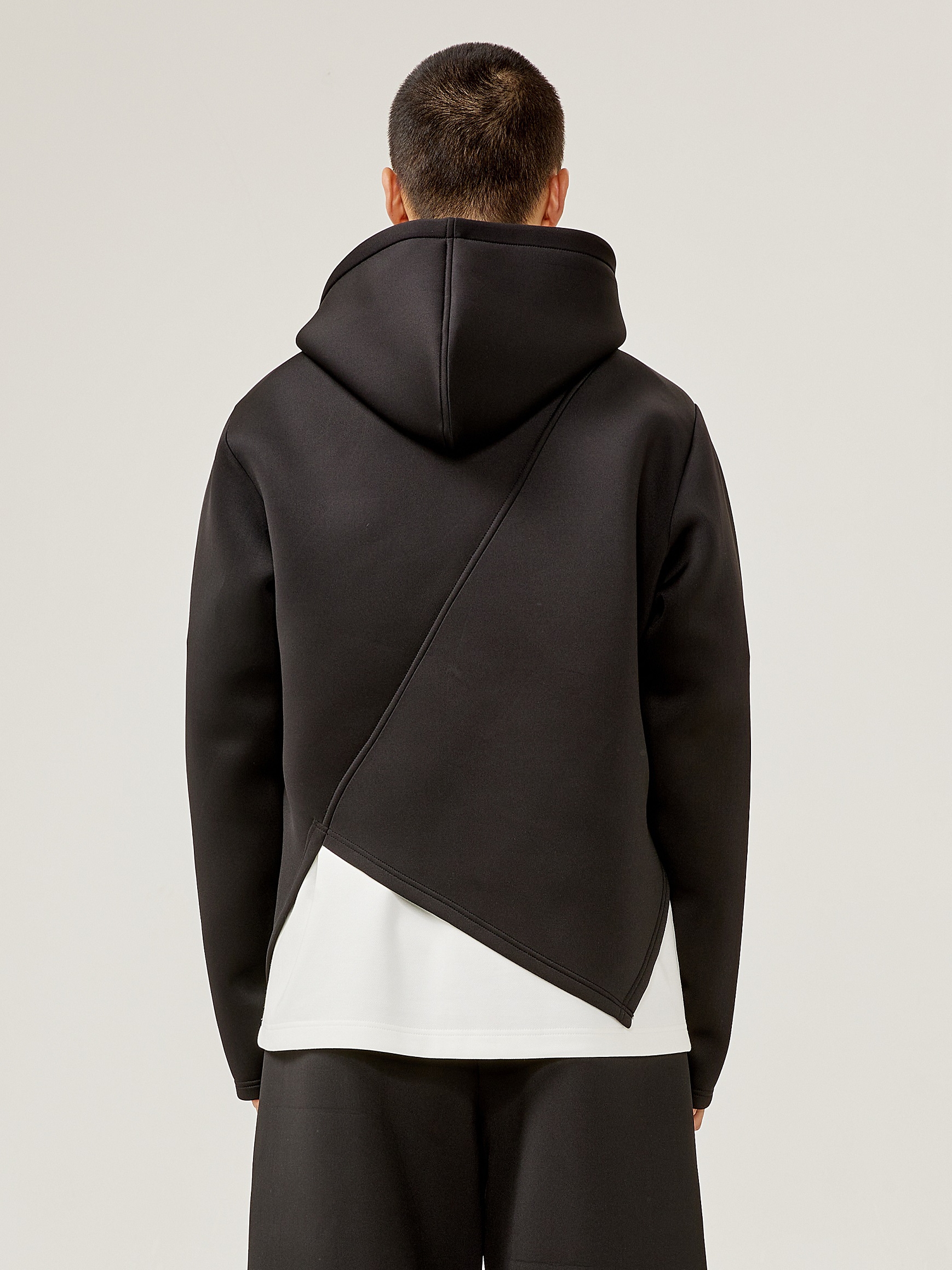 Asymmetric Oversize Black Pullover Hoodie WN13317