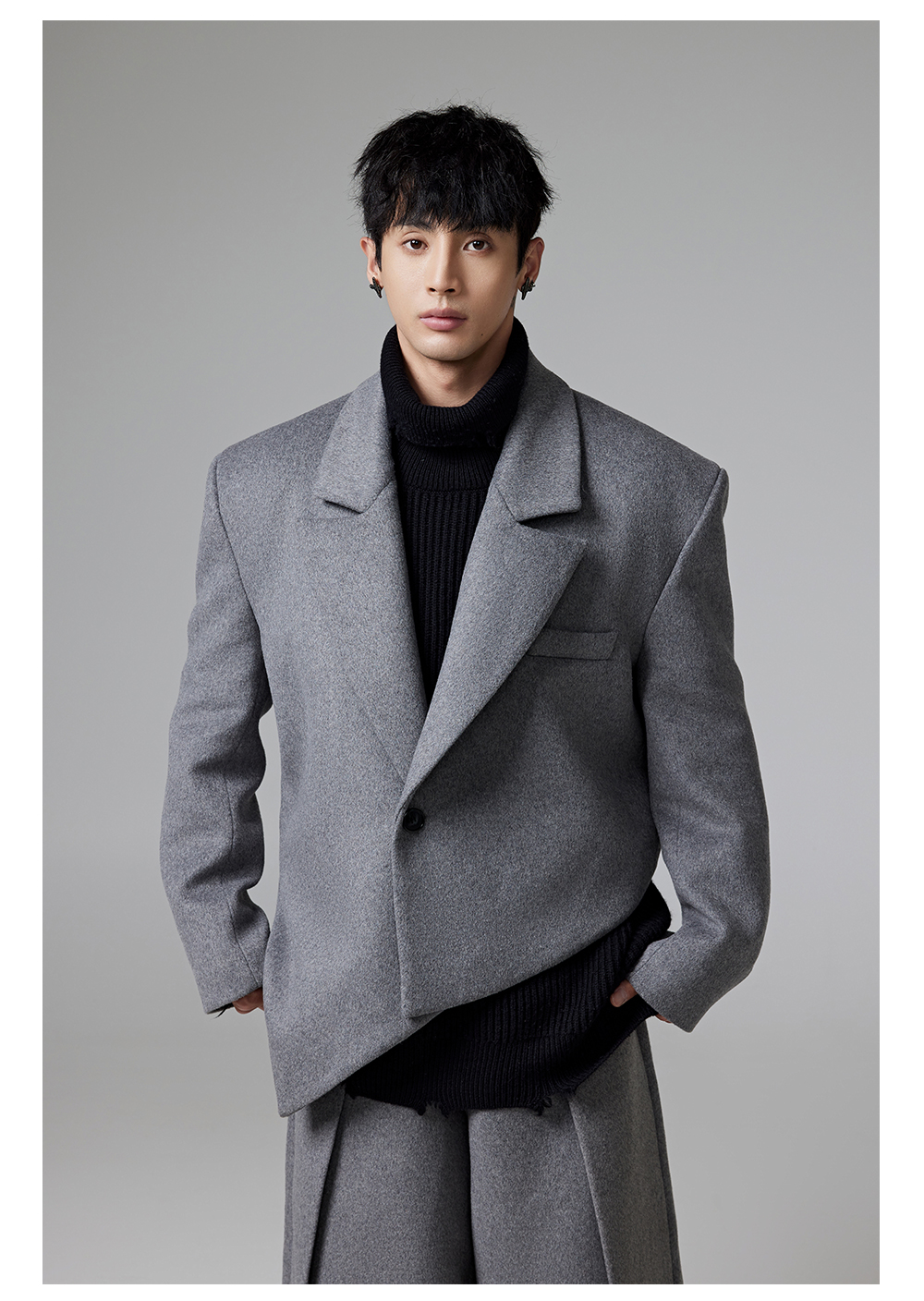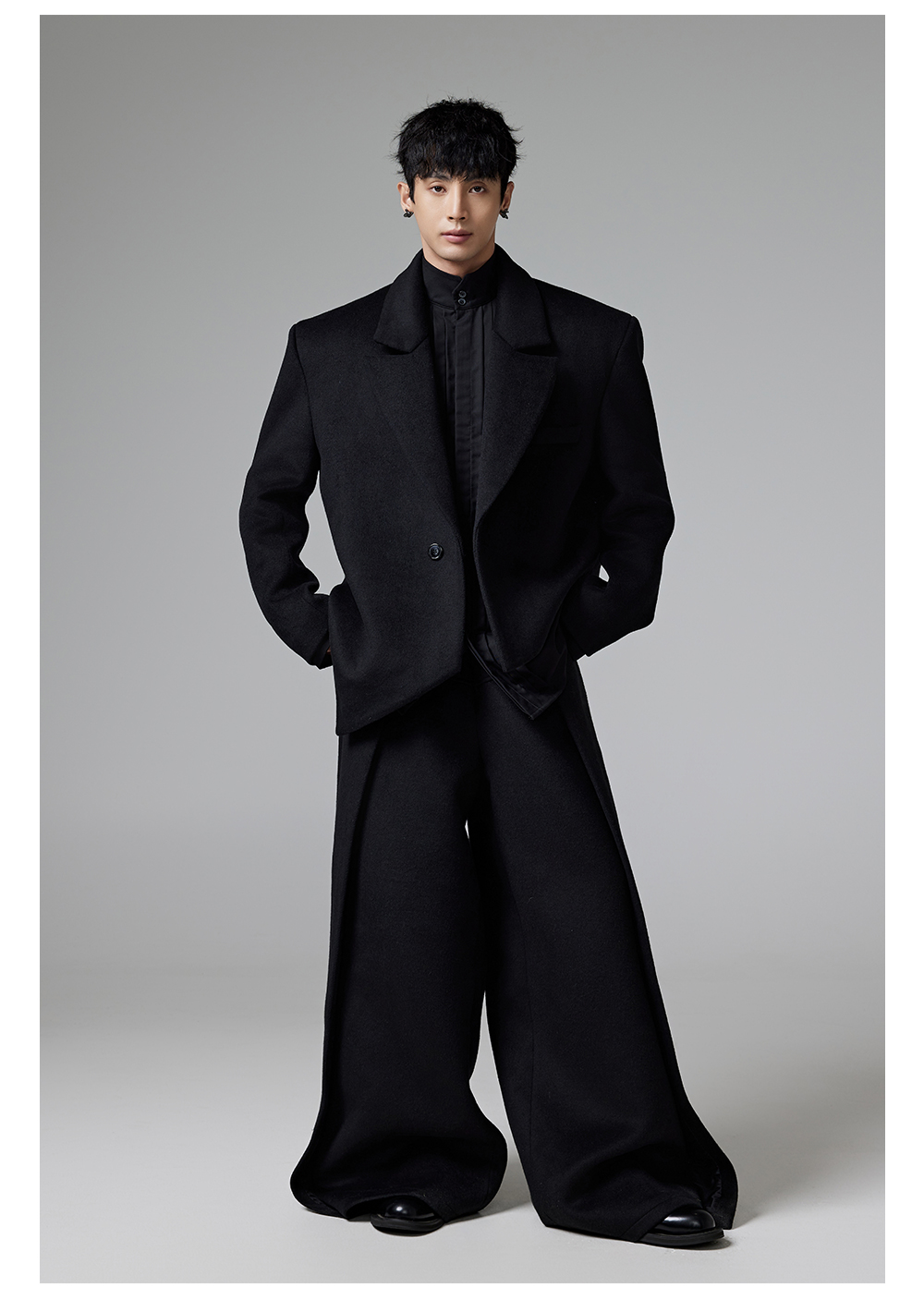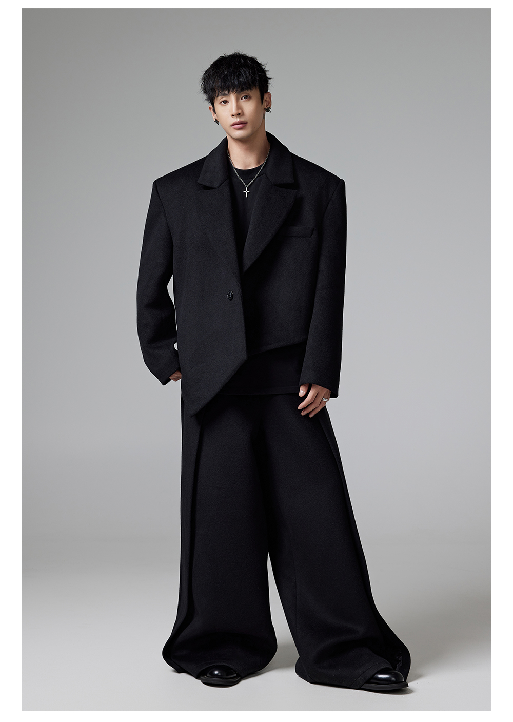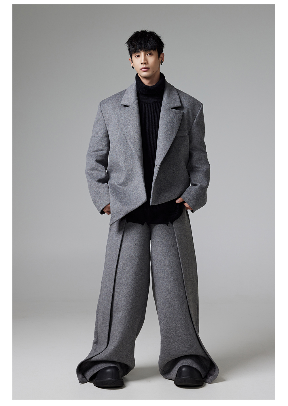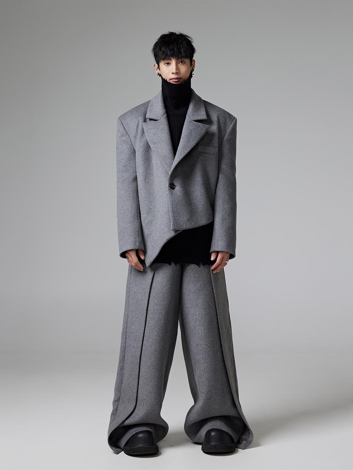 Asymmetric Oversize Tailored Jacket & Wide-leg Pleats Trousers Setup WN13326