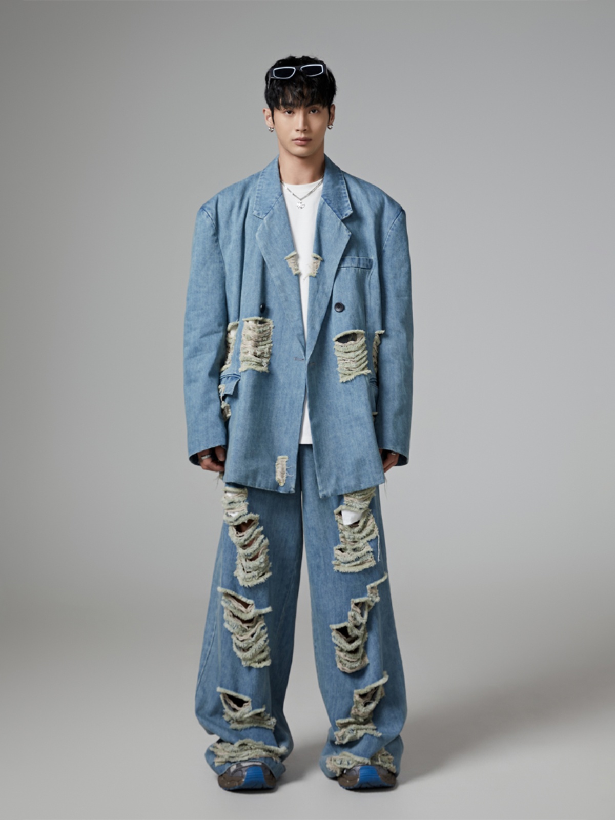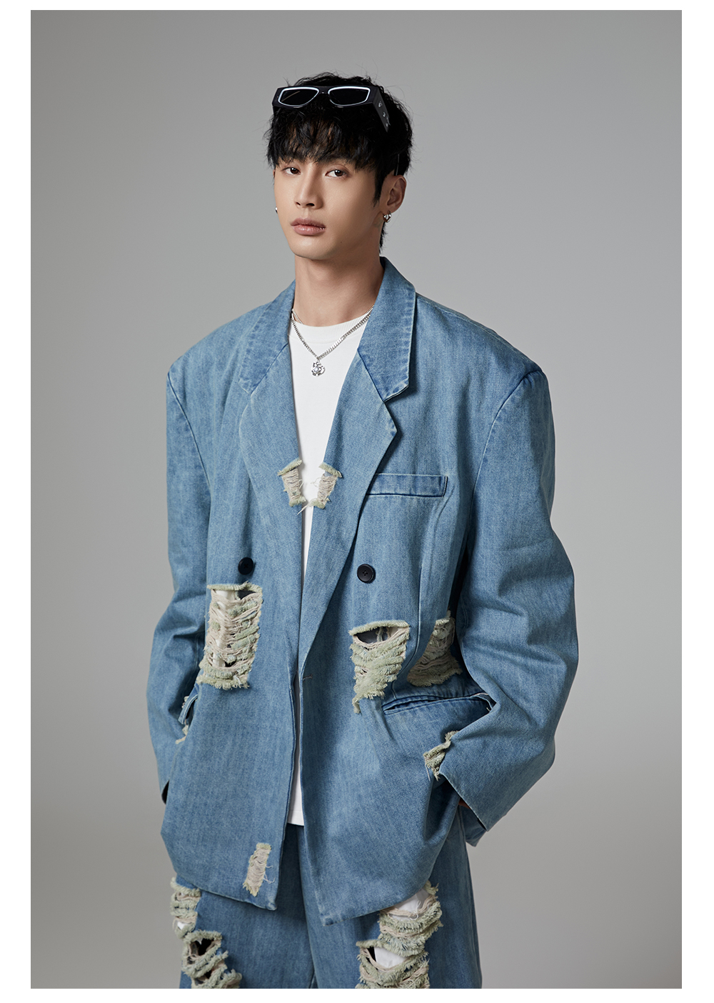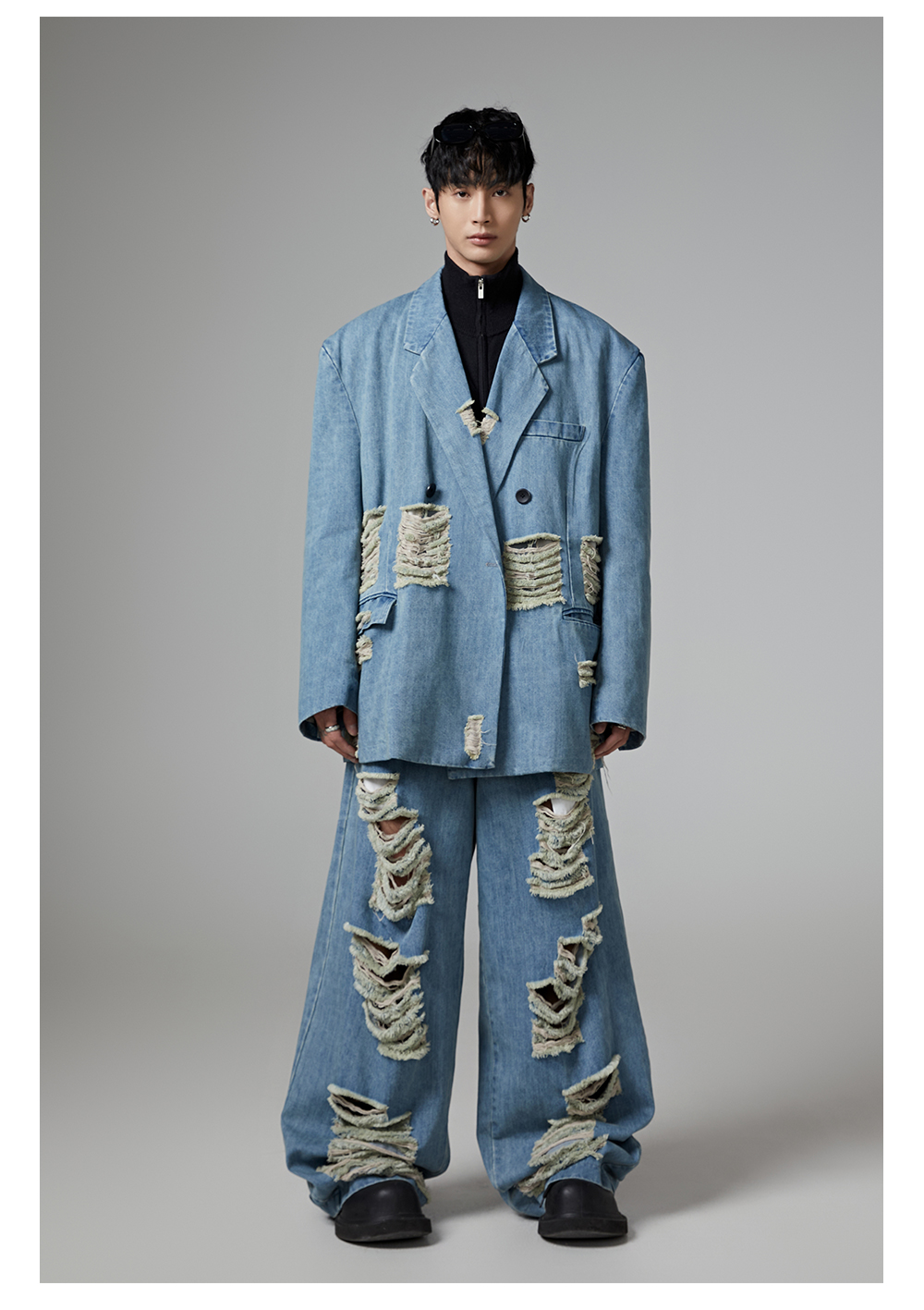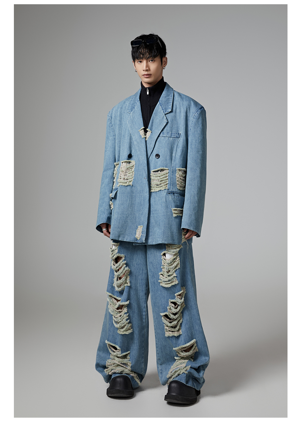 Oversize Damage Denim Tailored Jacket & Damage Denim Jeans Setup WN13331