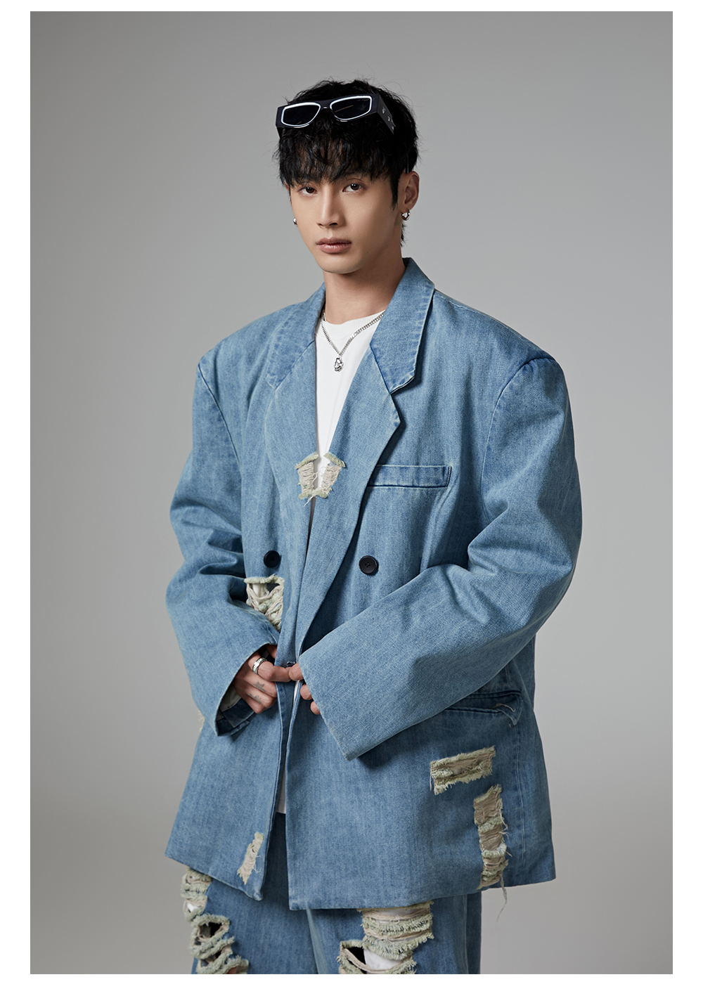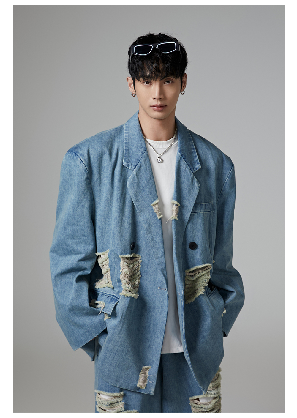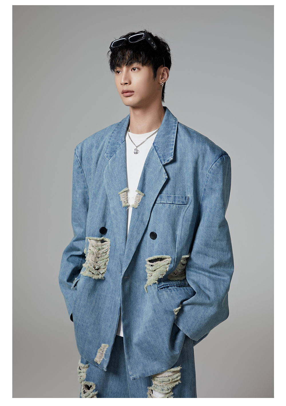 Oversize Damage Denim Tailored Jacket & Damage Denim Jeans Setup WN13331