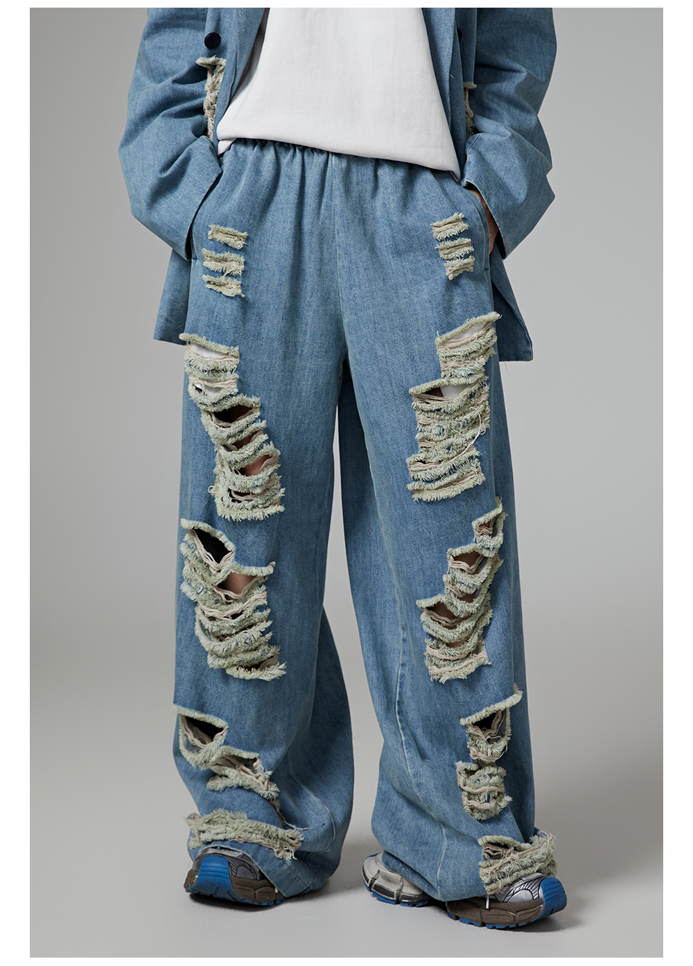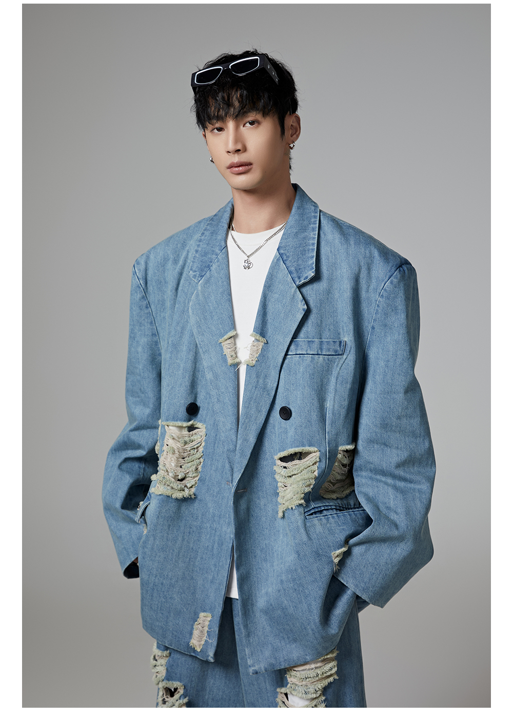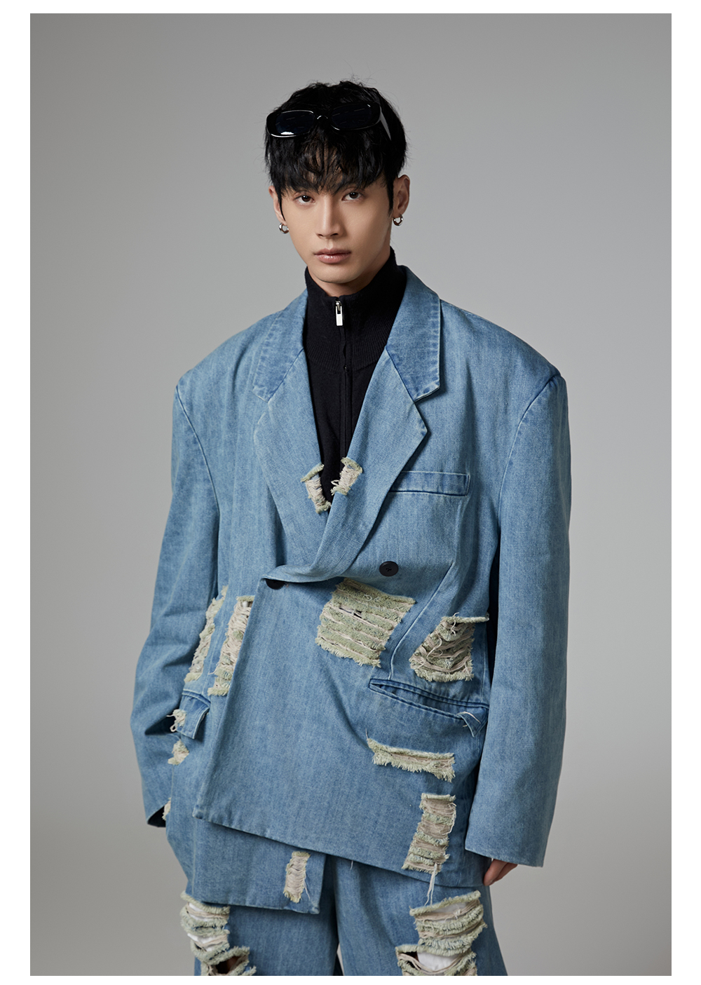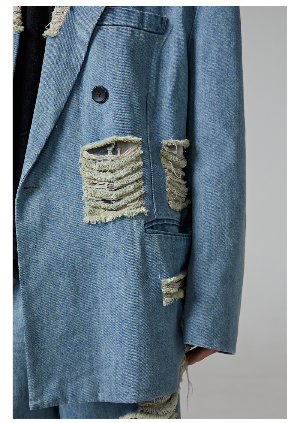 Oversize Damage Denim Tailored Jacket & Damage Denim Jeans Setup WN13331