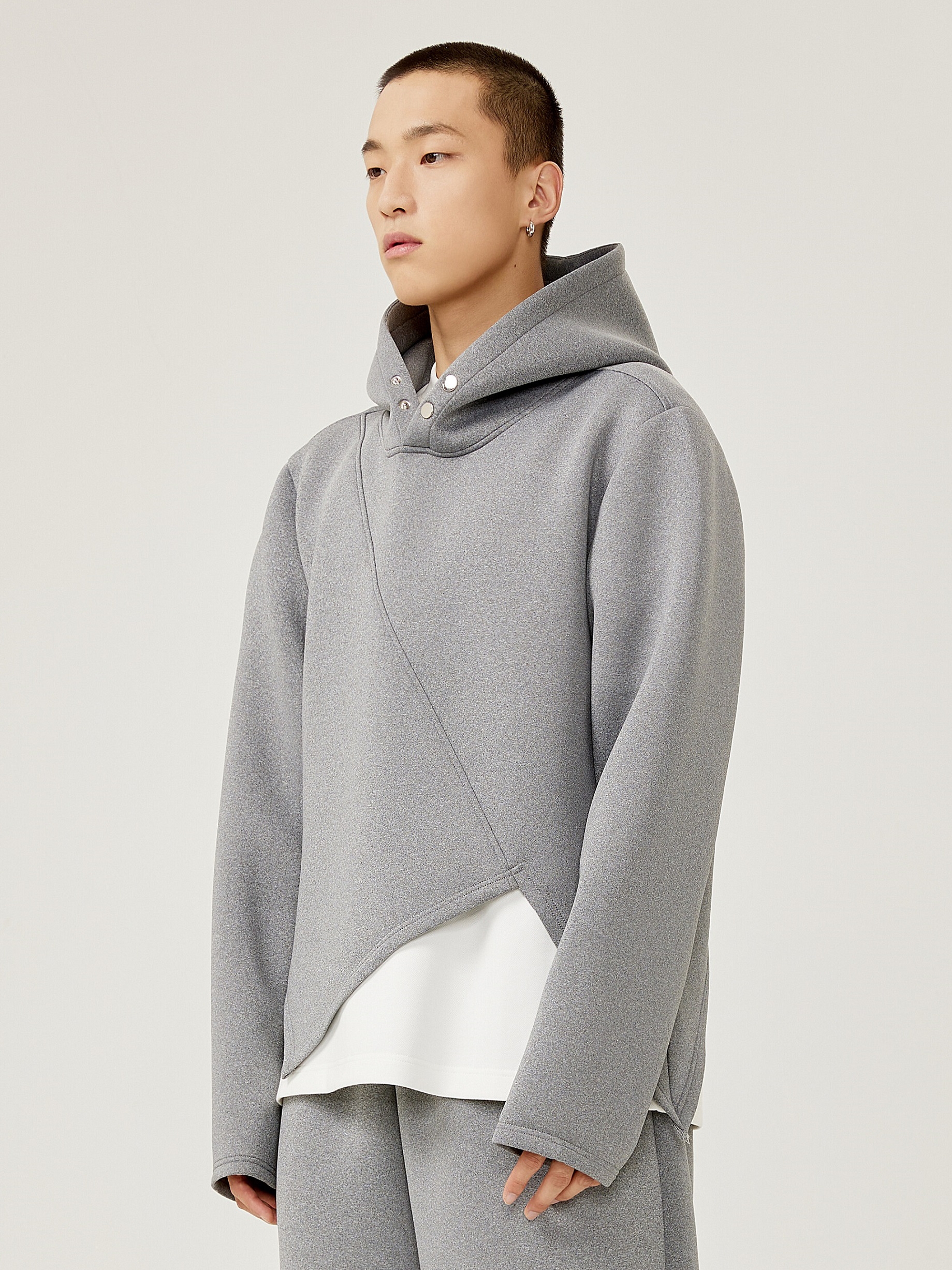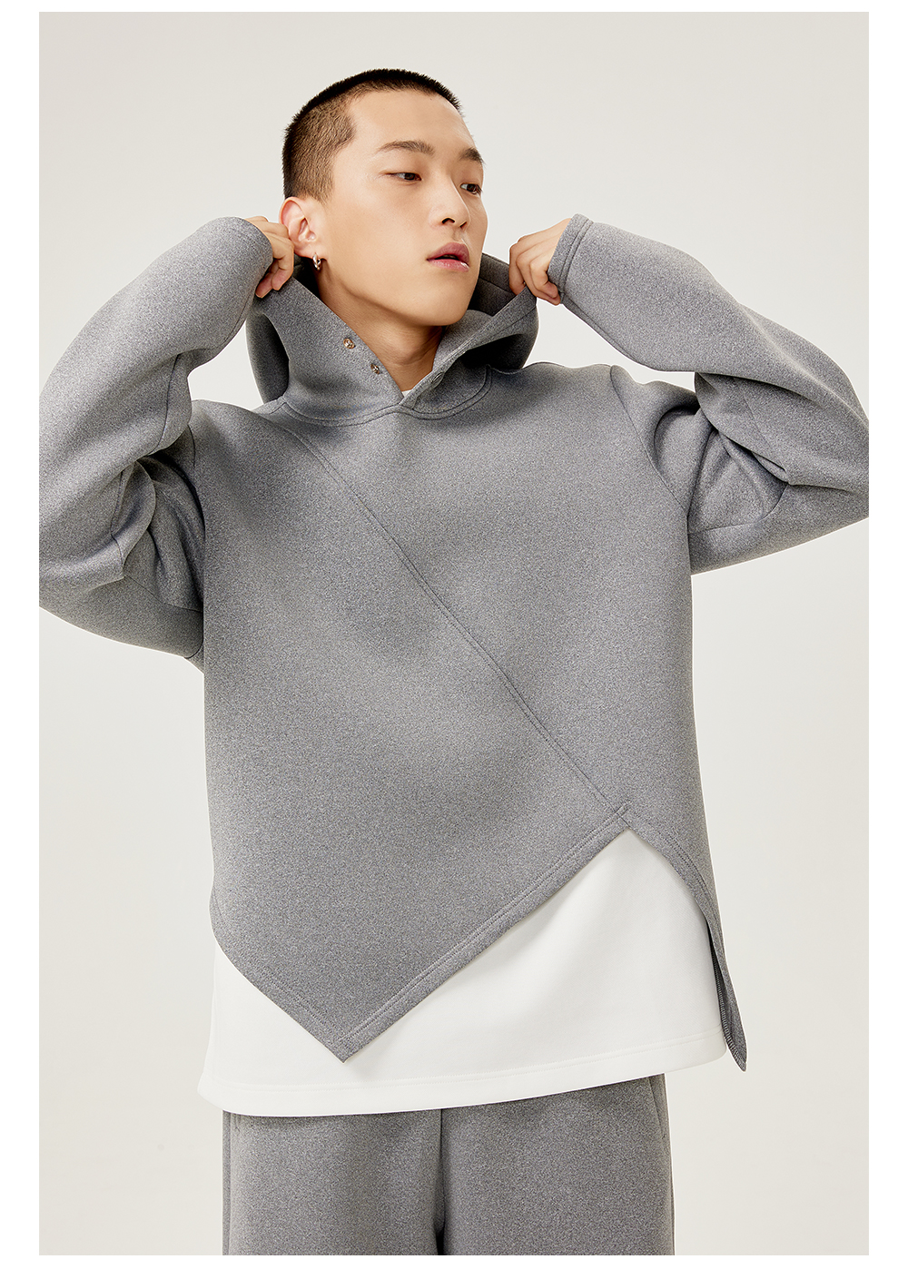 Asymmetric Oversize Gray Pullover Hoodie WN13333