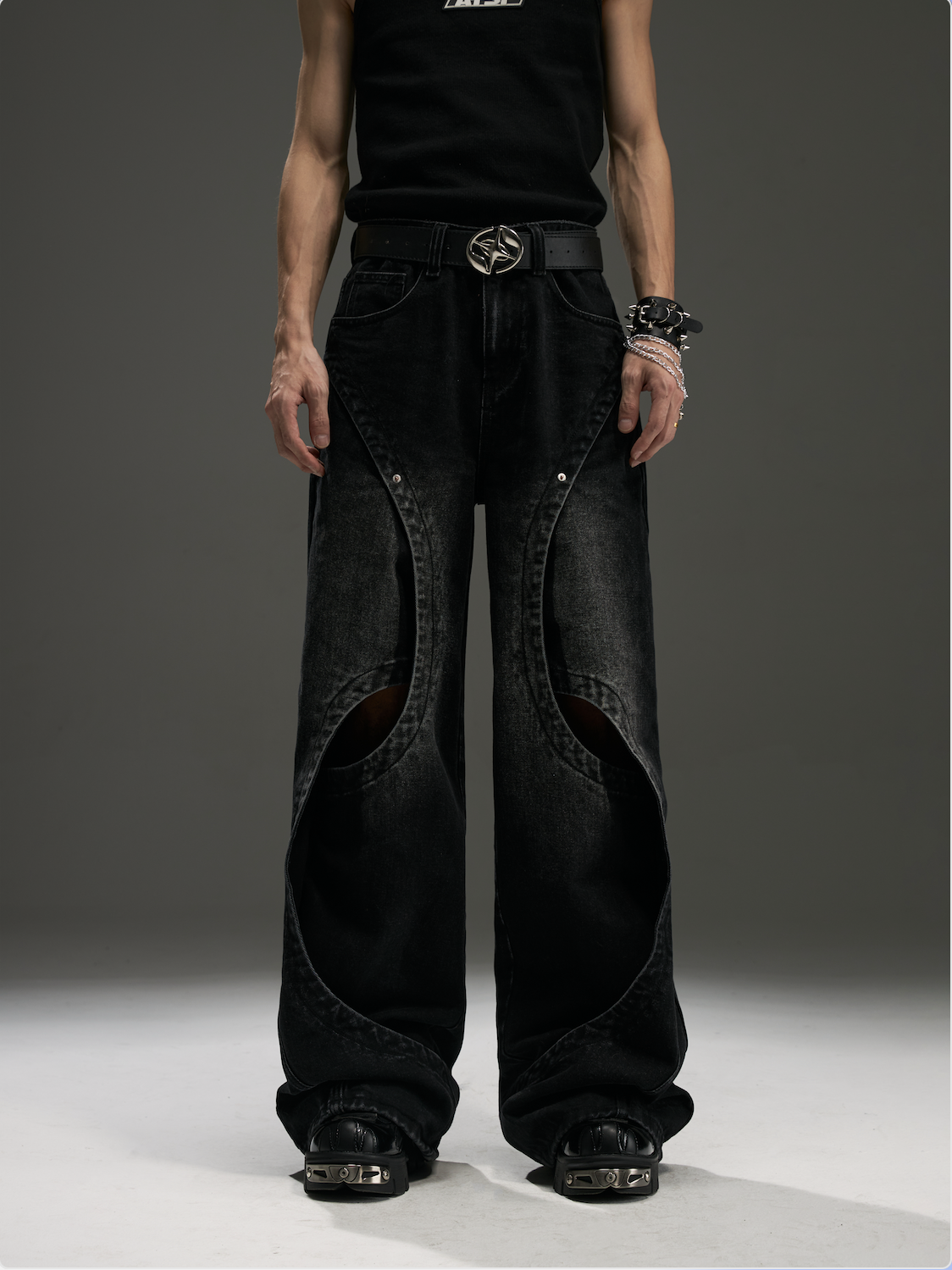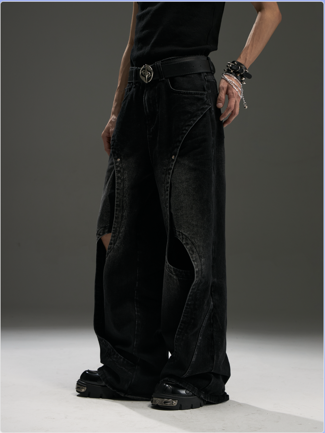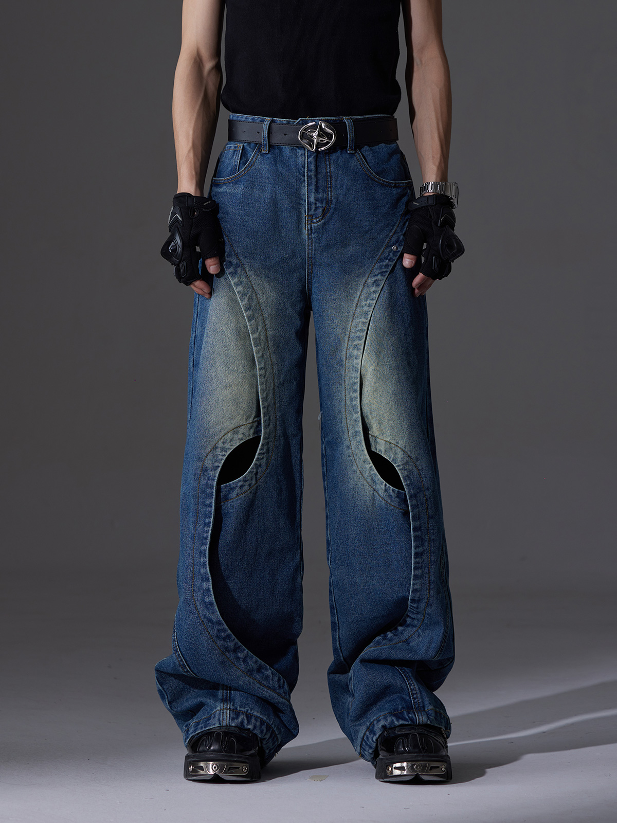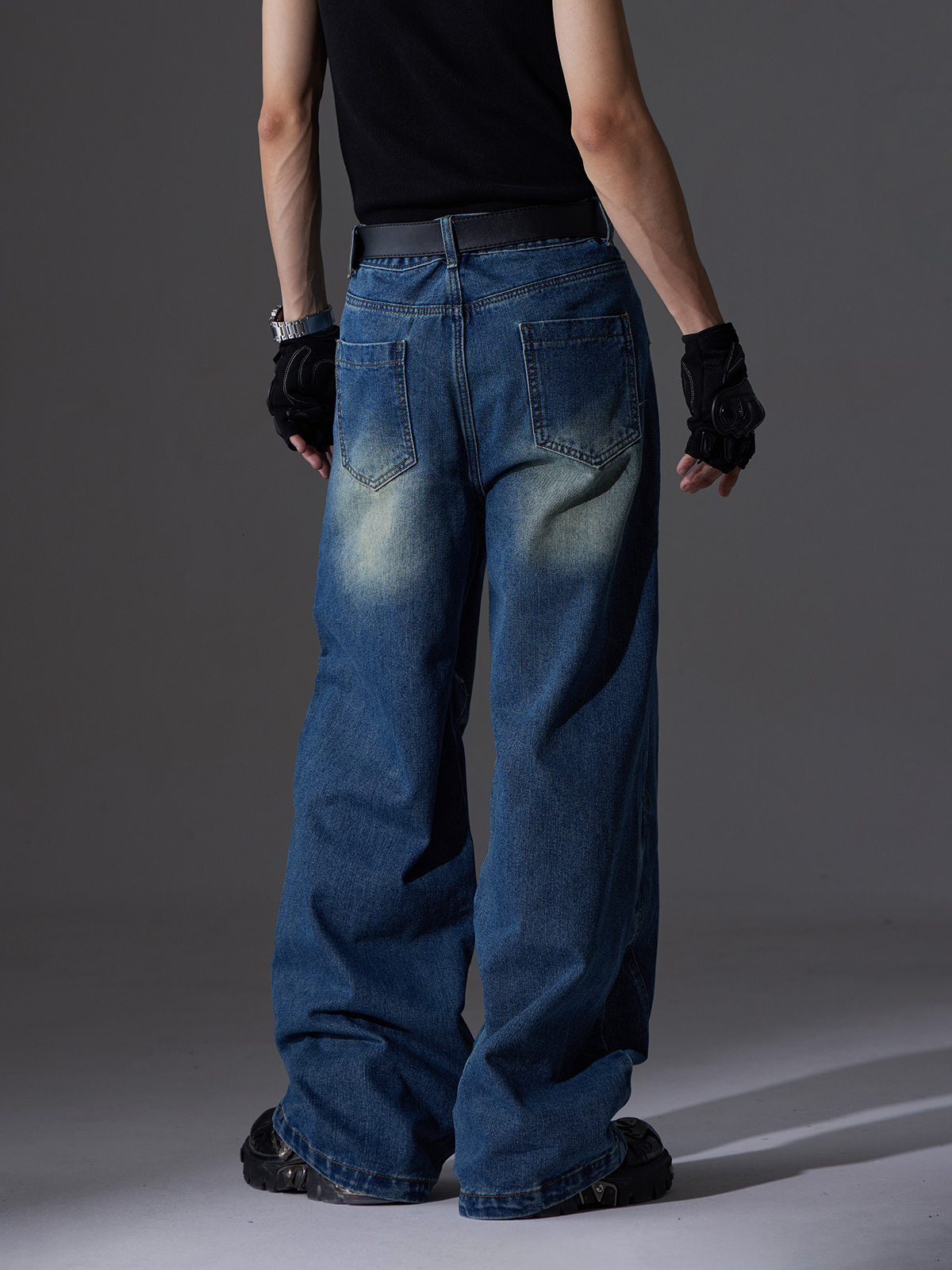 Ribbon Patchwork Washed Wide-leg Denim Jeans WN13432