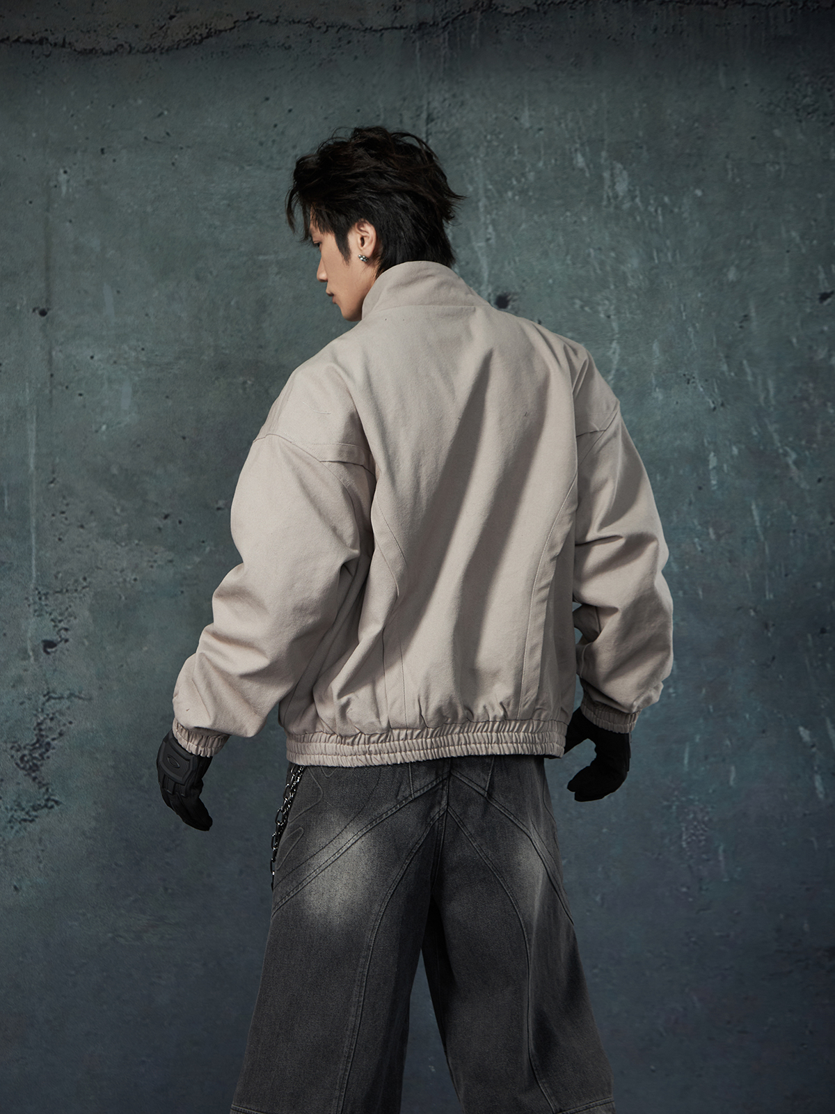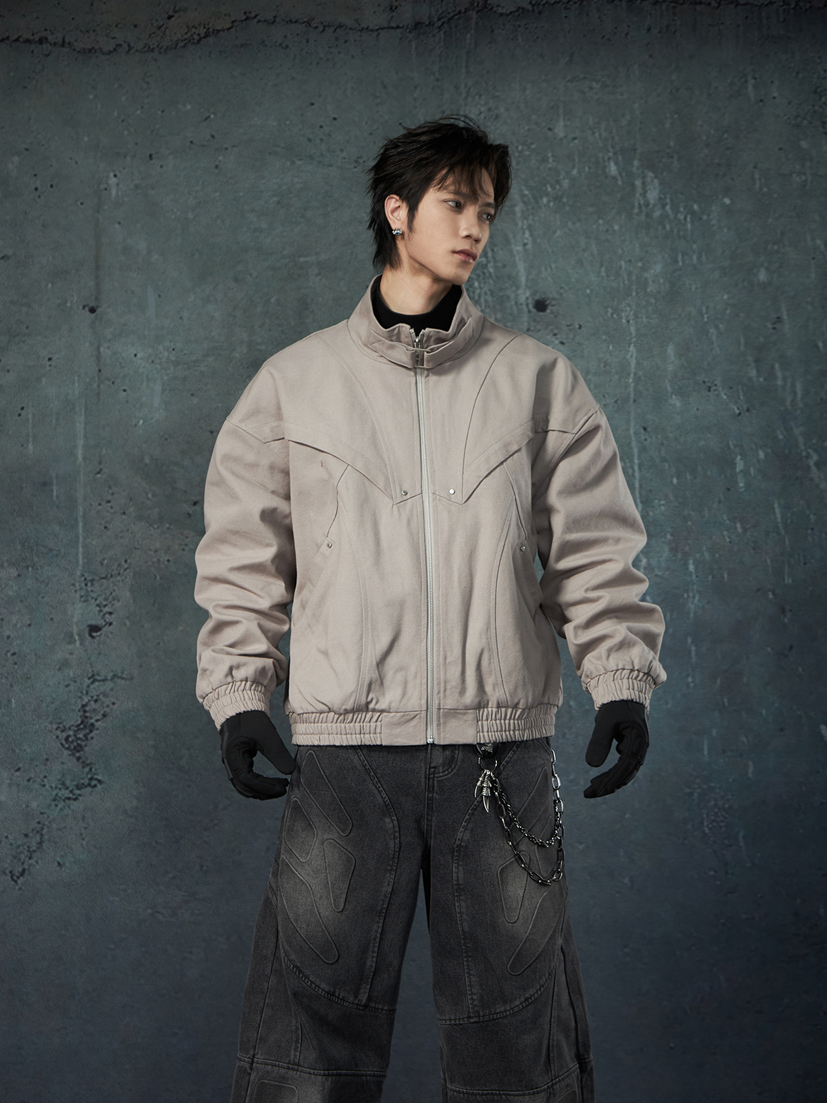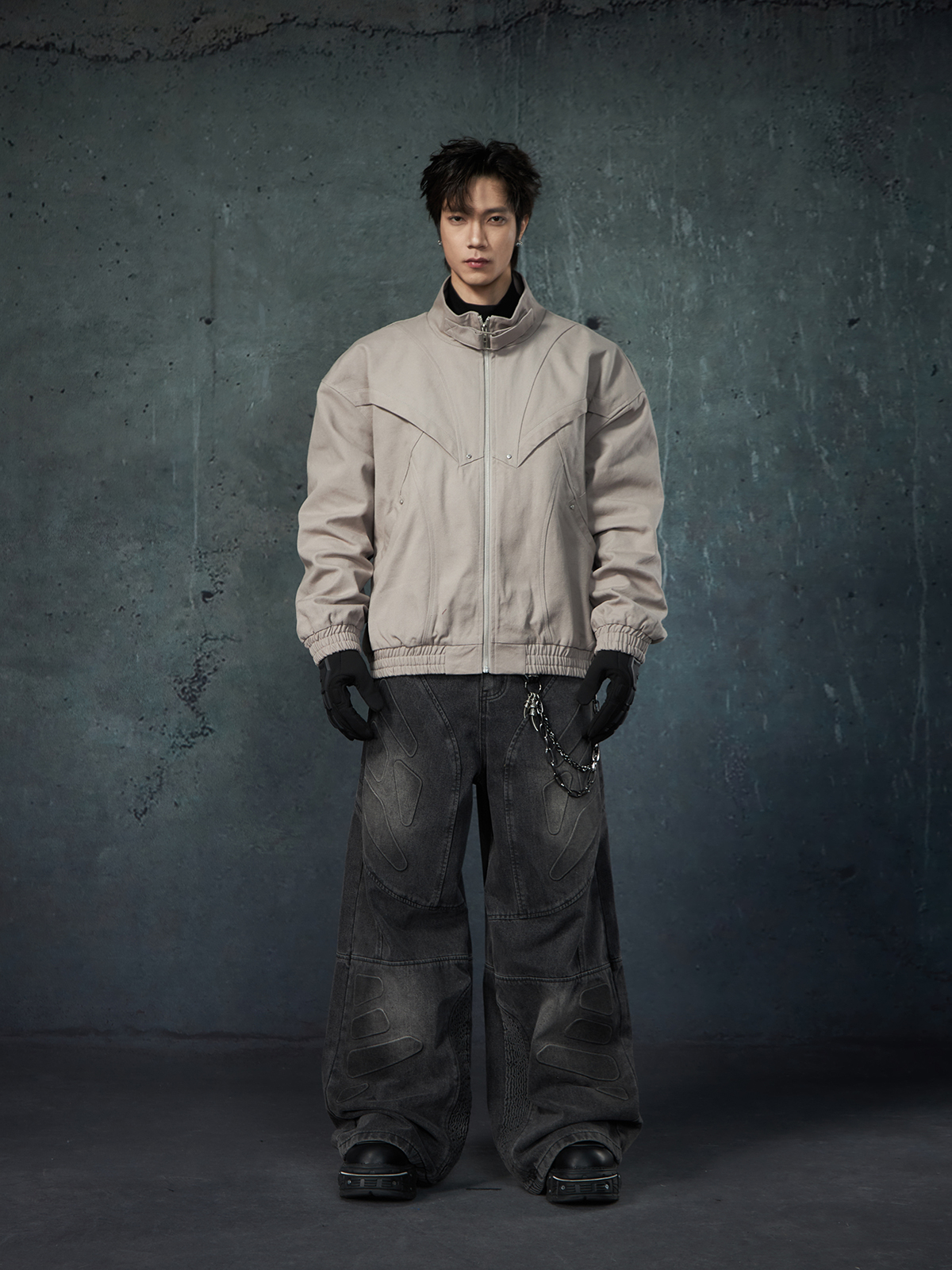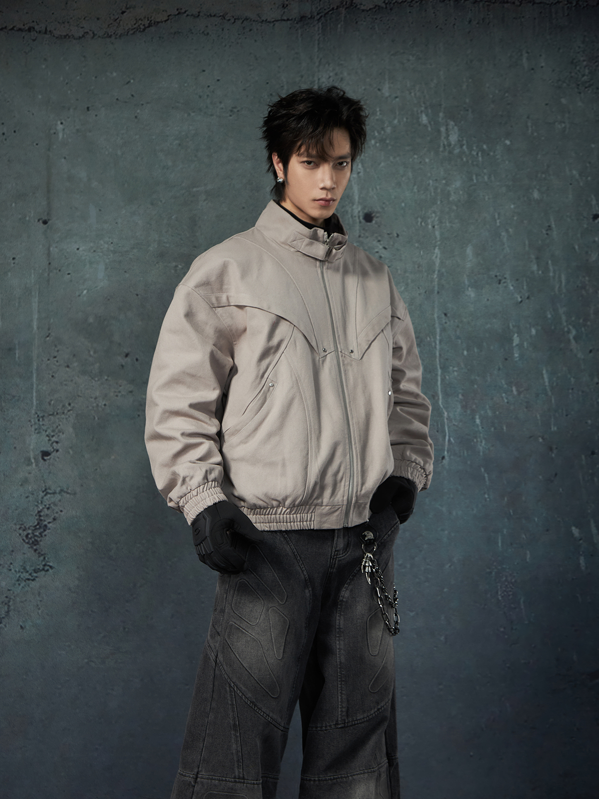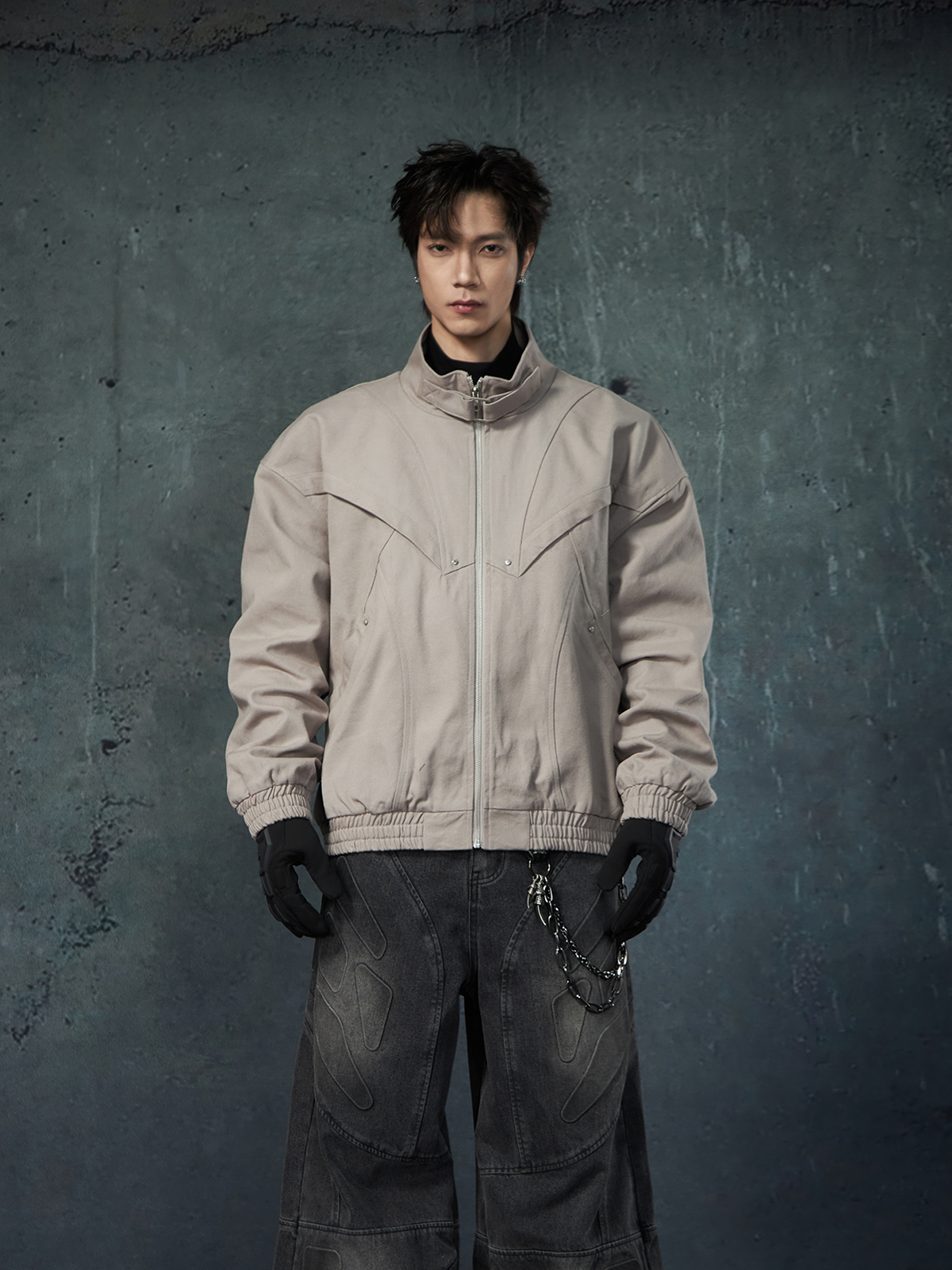 Deconstructed Layered Structured Stand Neck Ziper Jacket WN13448