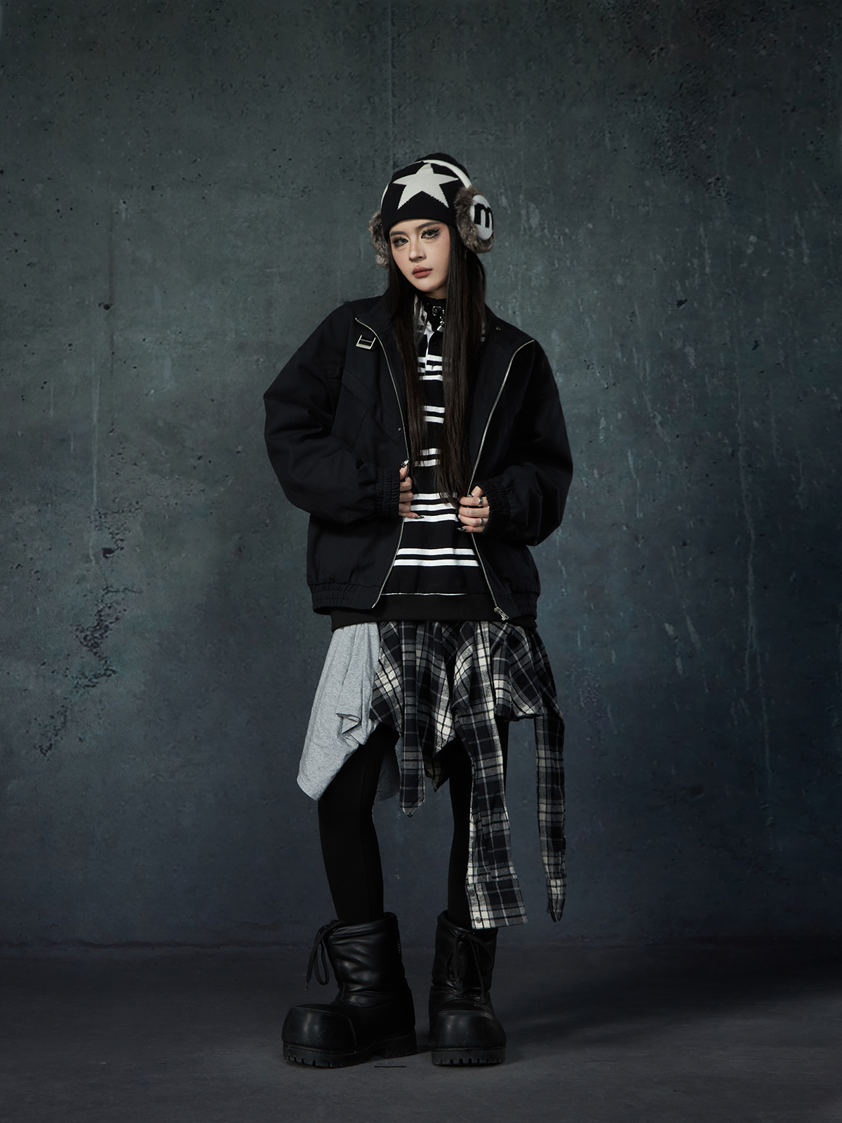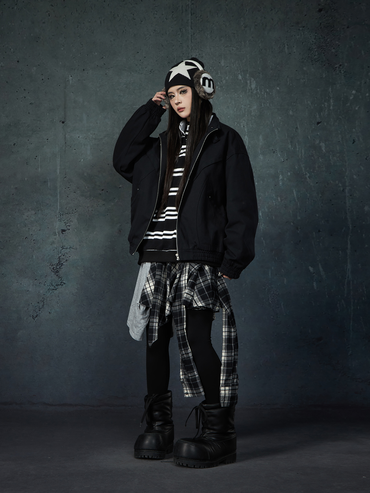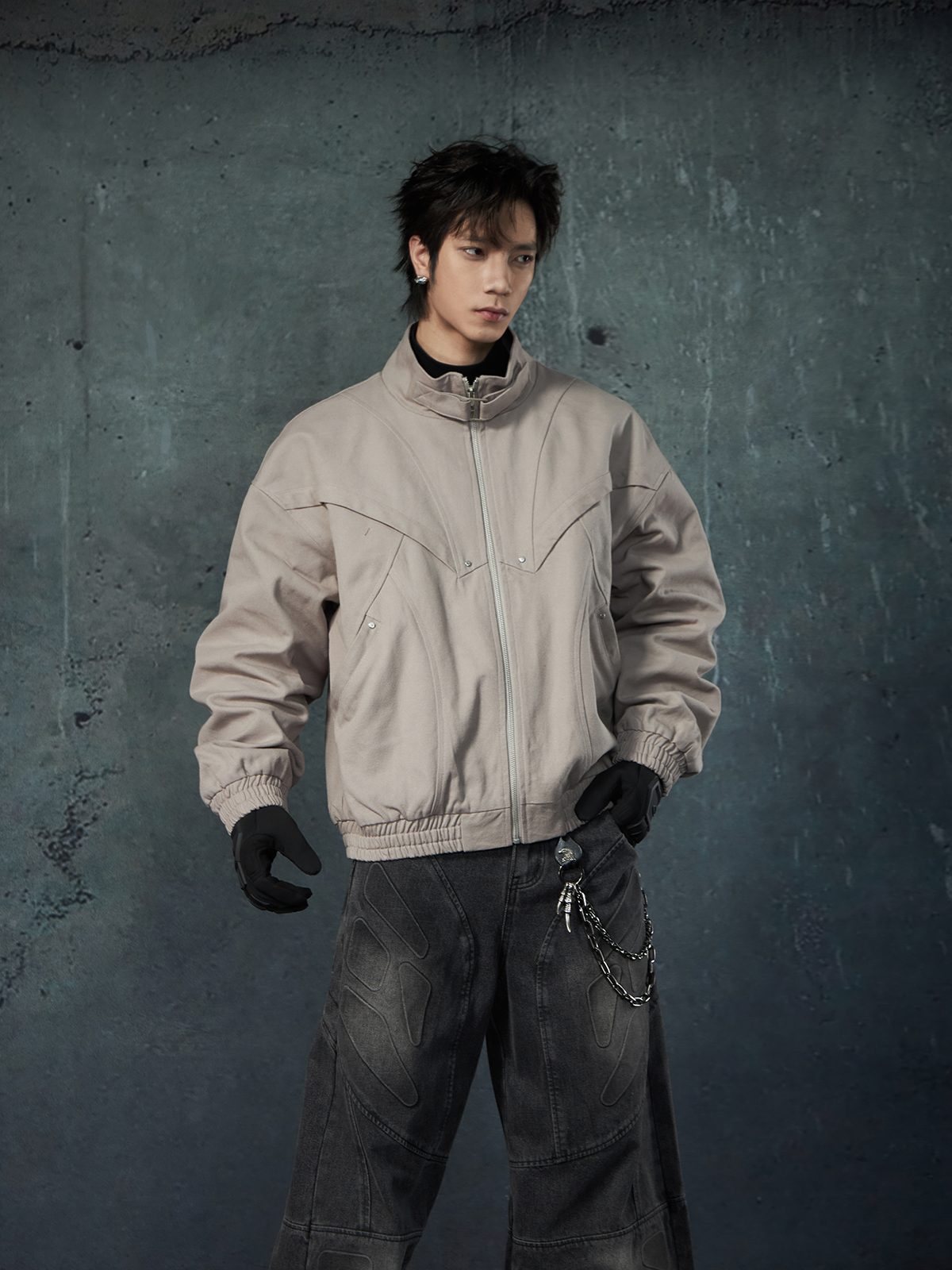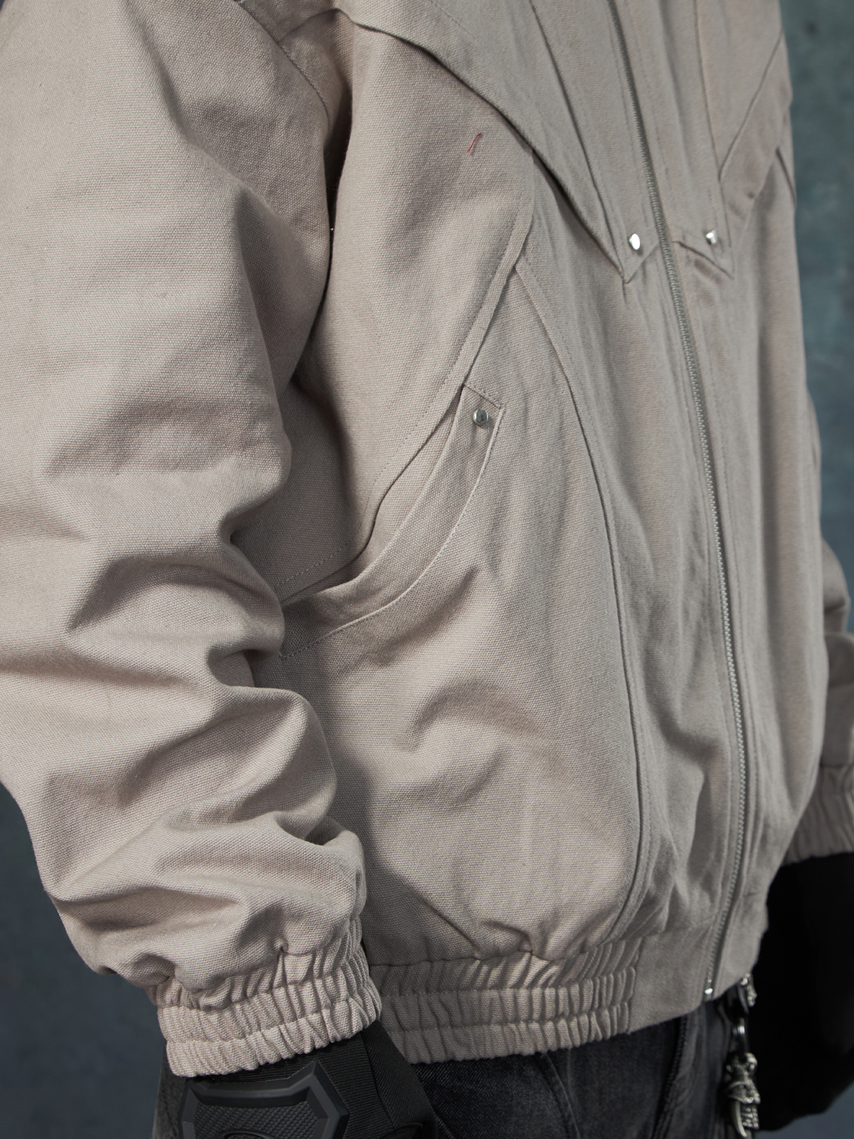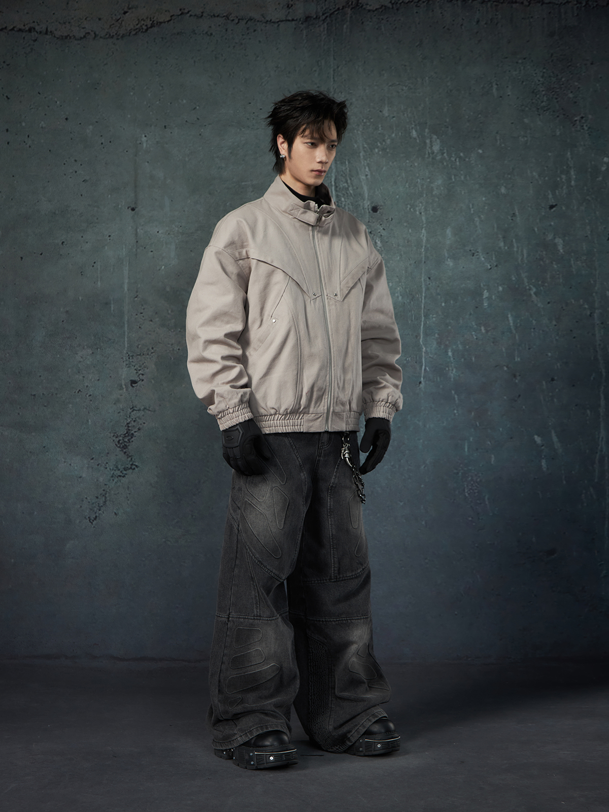 Deconstructed Layered Structured Stand Neck Ziper Jacket WN13448