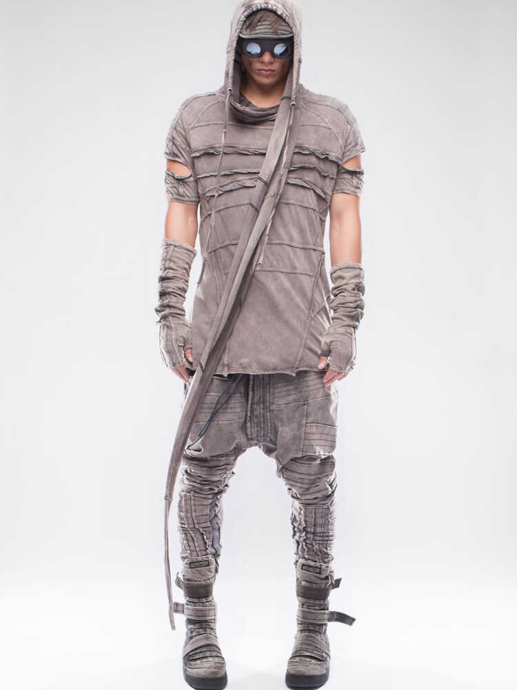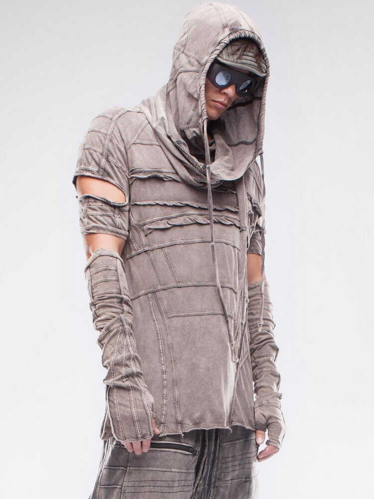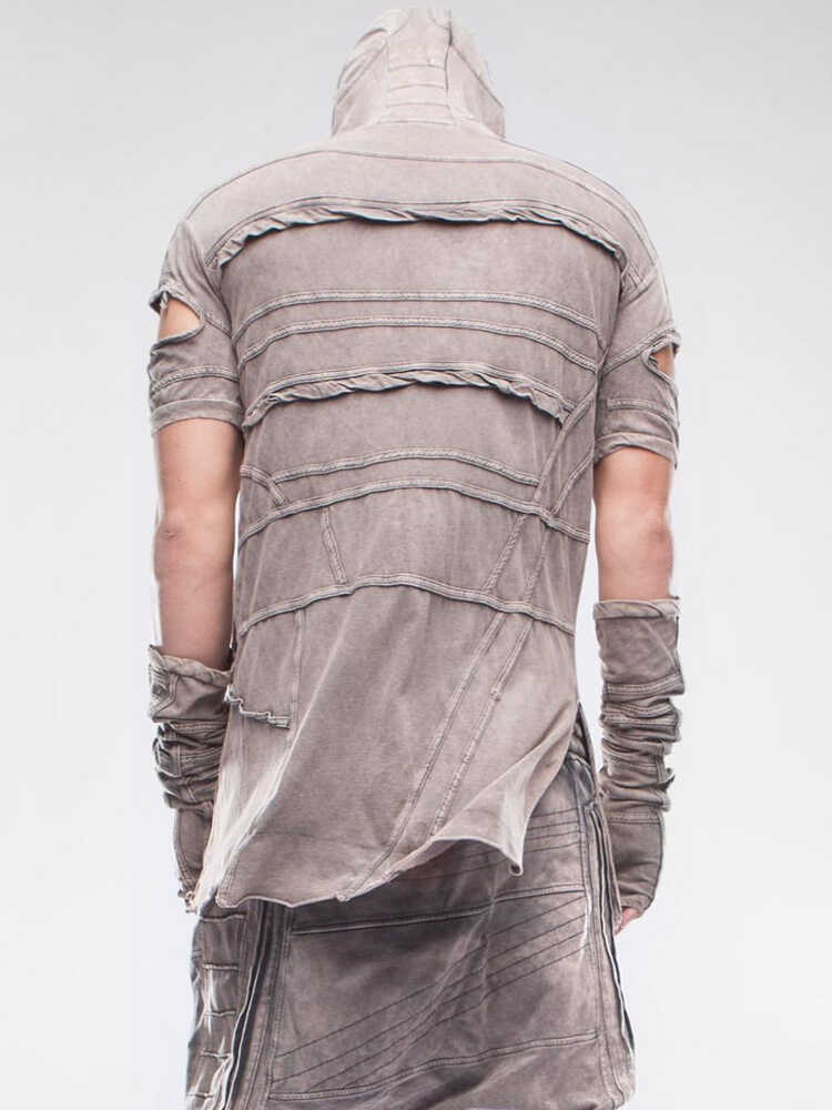 Hooded Wax-Dyed Washed Sleeve-Layered Short Sleeve T-Shirt WN13820