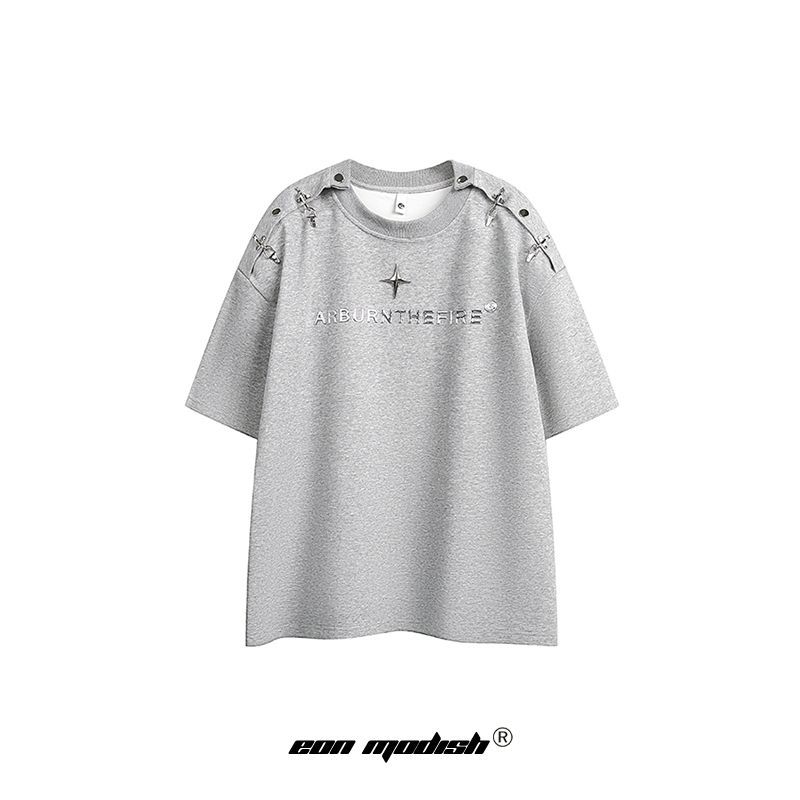 Metal Charm Design Oversize Short Sleeve T-Shirt WN14075