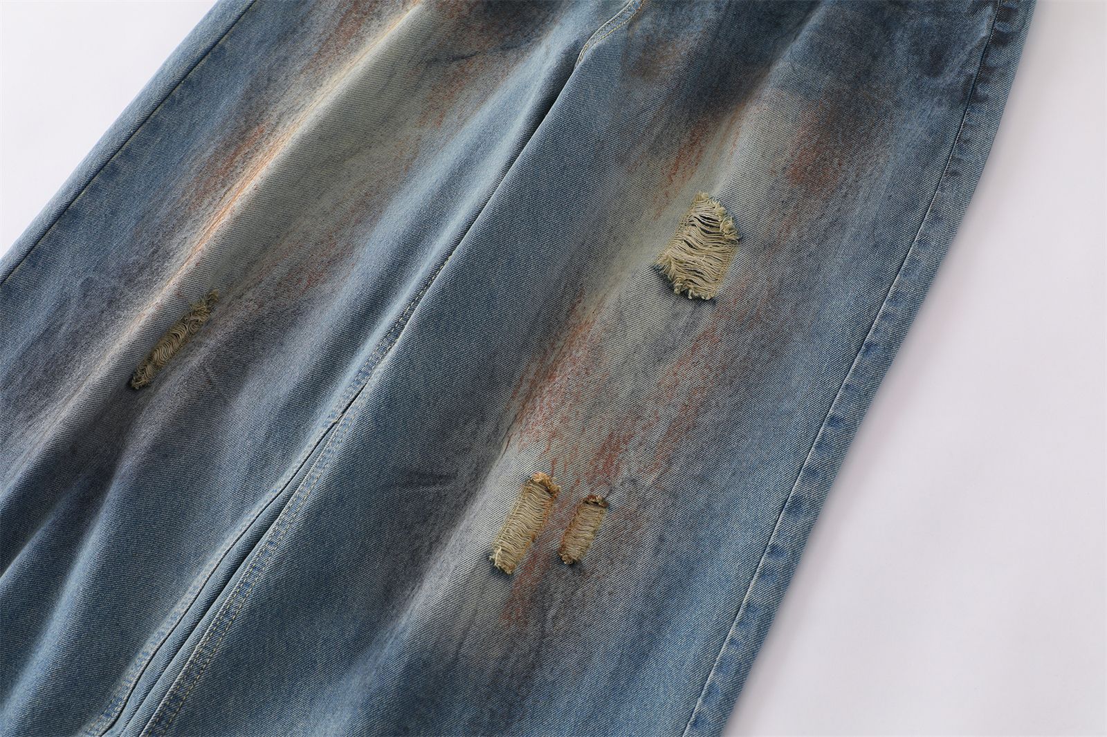 Dirty Dye Damage Design Wide-Leg Denim Jeans WN15087