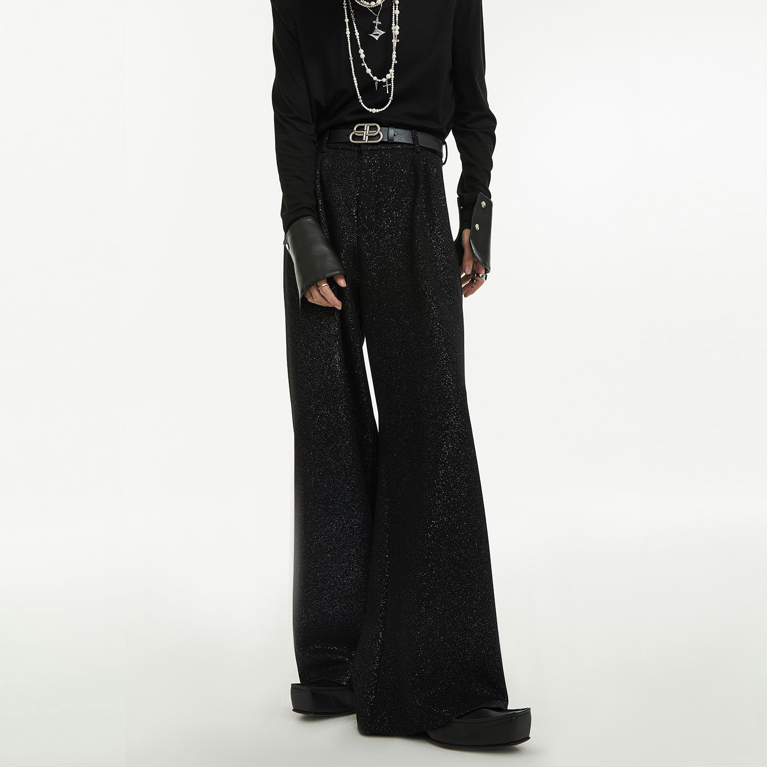 Sequin Shoulder-Pad Tailored Jacket & Wide-Leg Trousers Setup WN15438