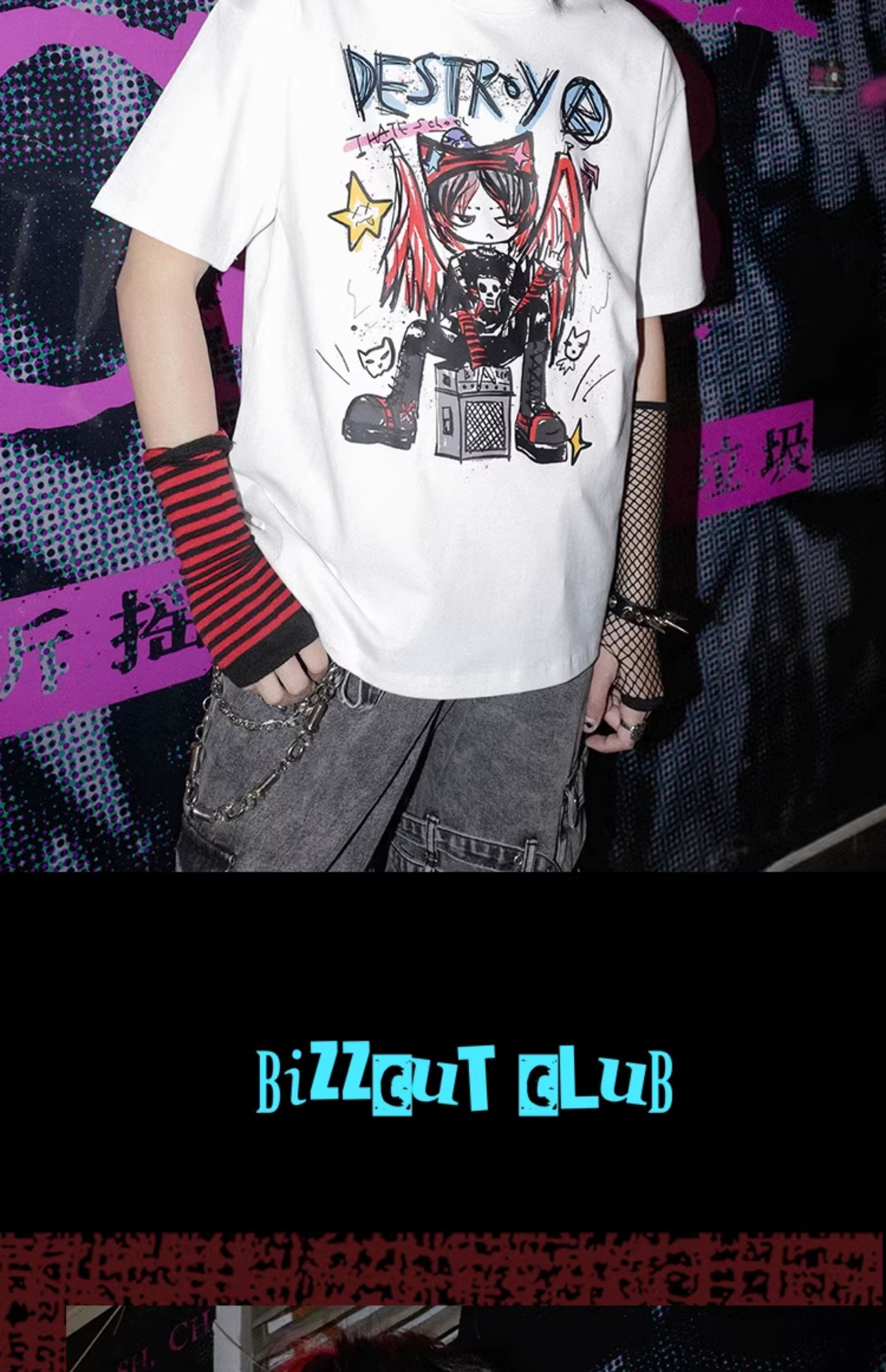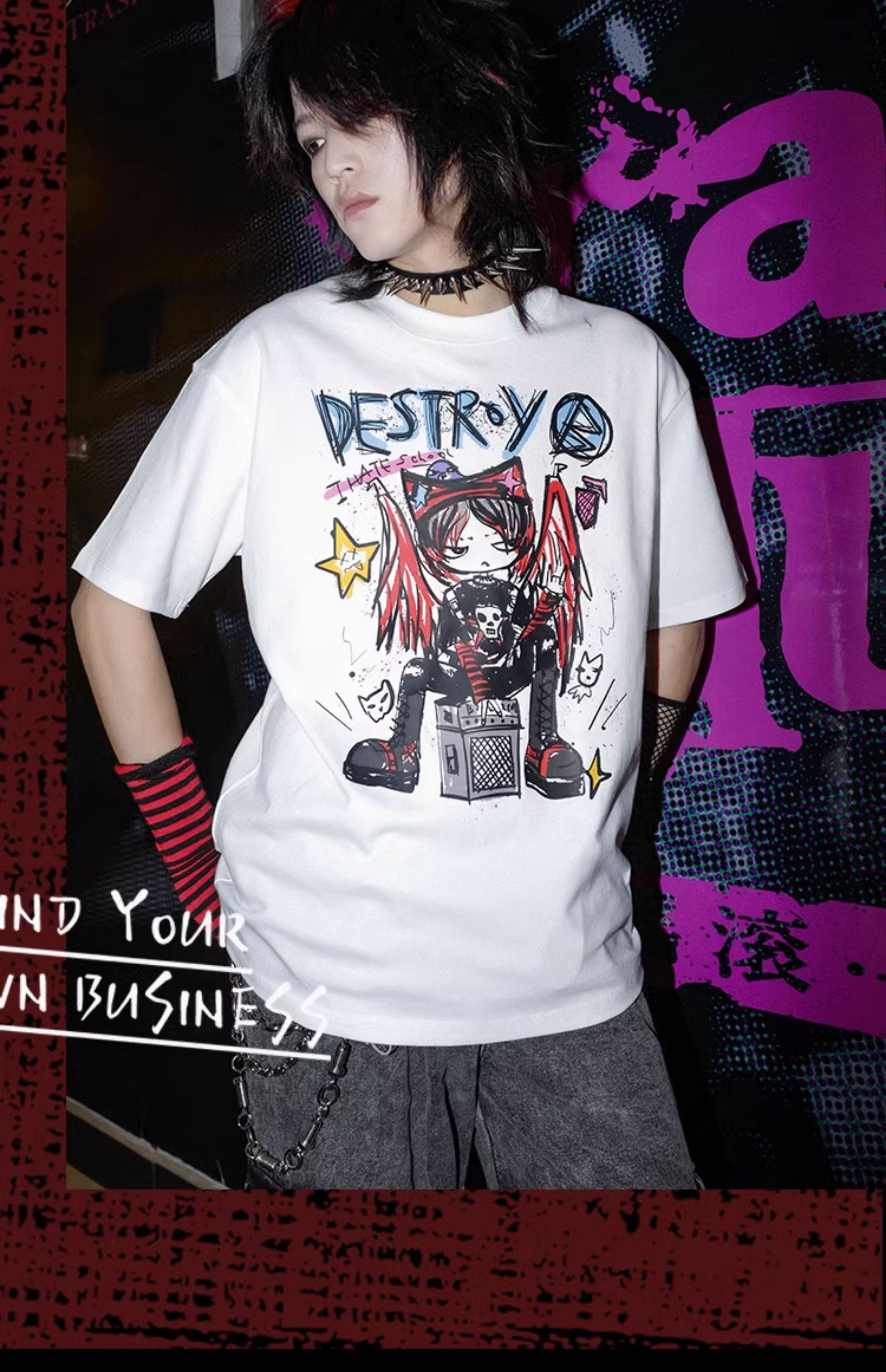 Graffiti Print Oversize Short Sleeve T-Shirt WN16019