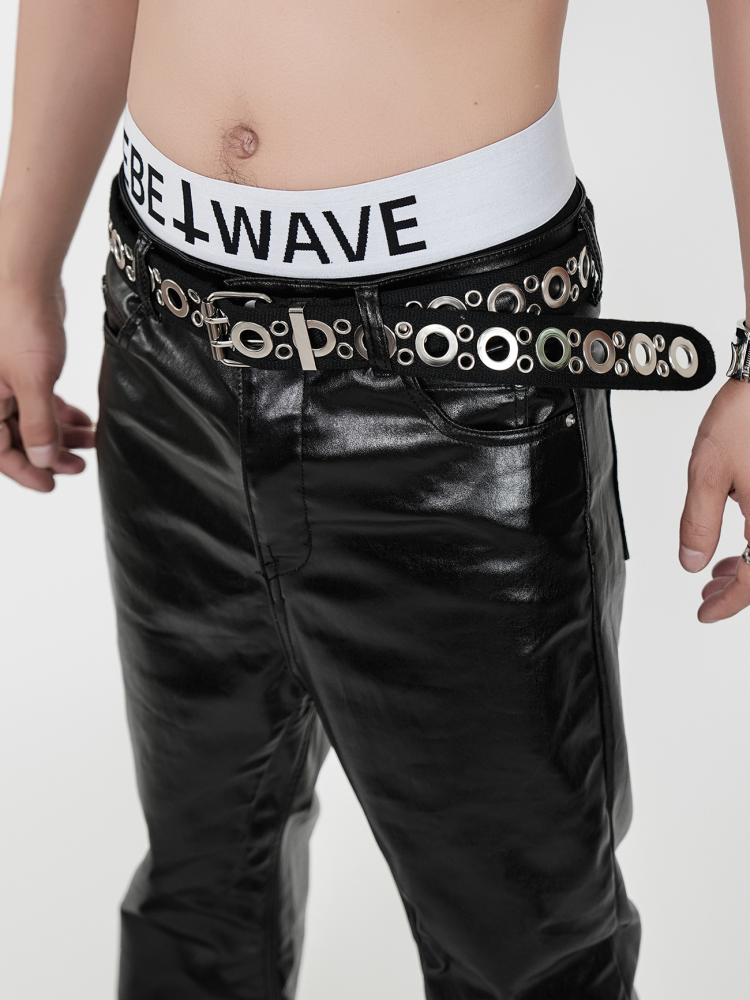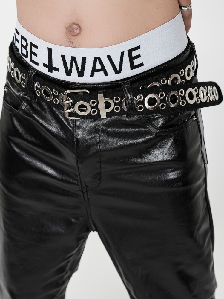 Double Stitch Metal Eyelet Canvas PU Leather Belt WN17331
