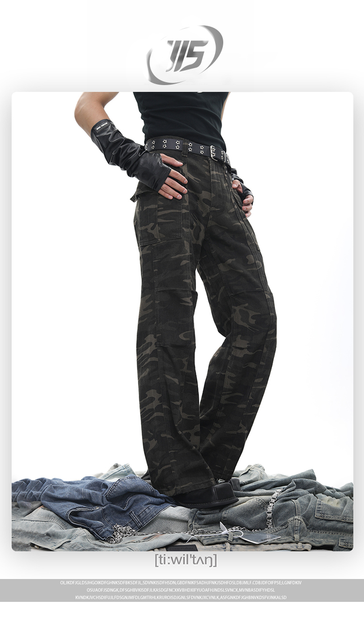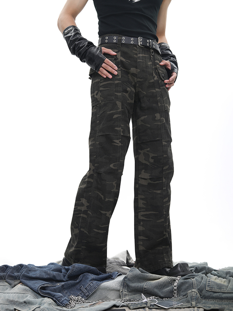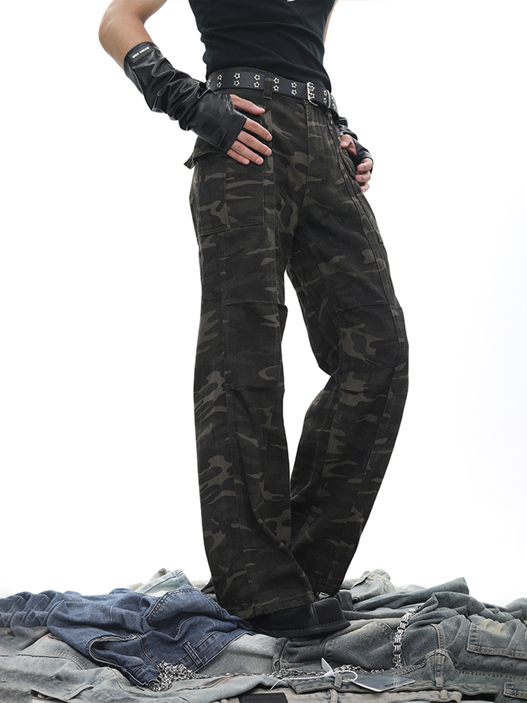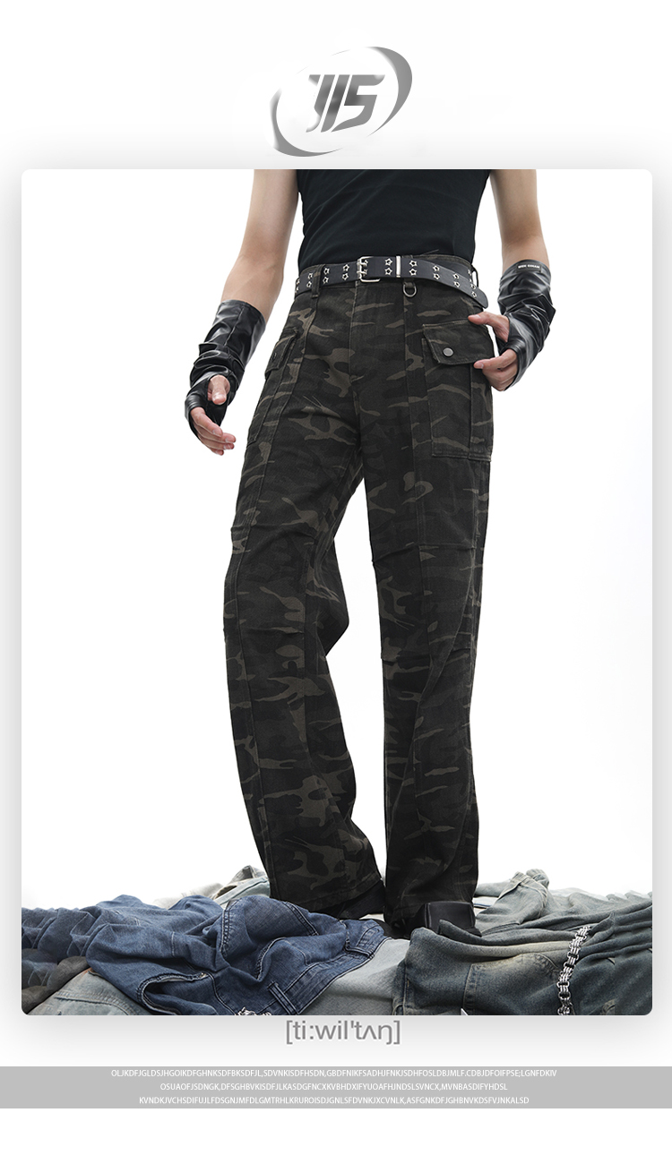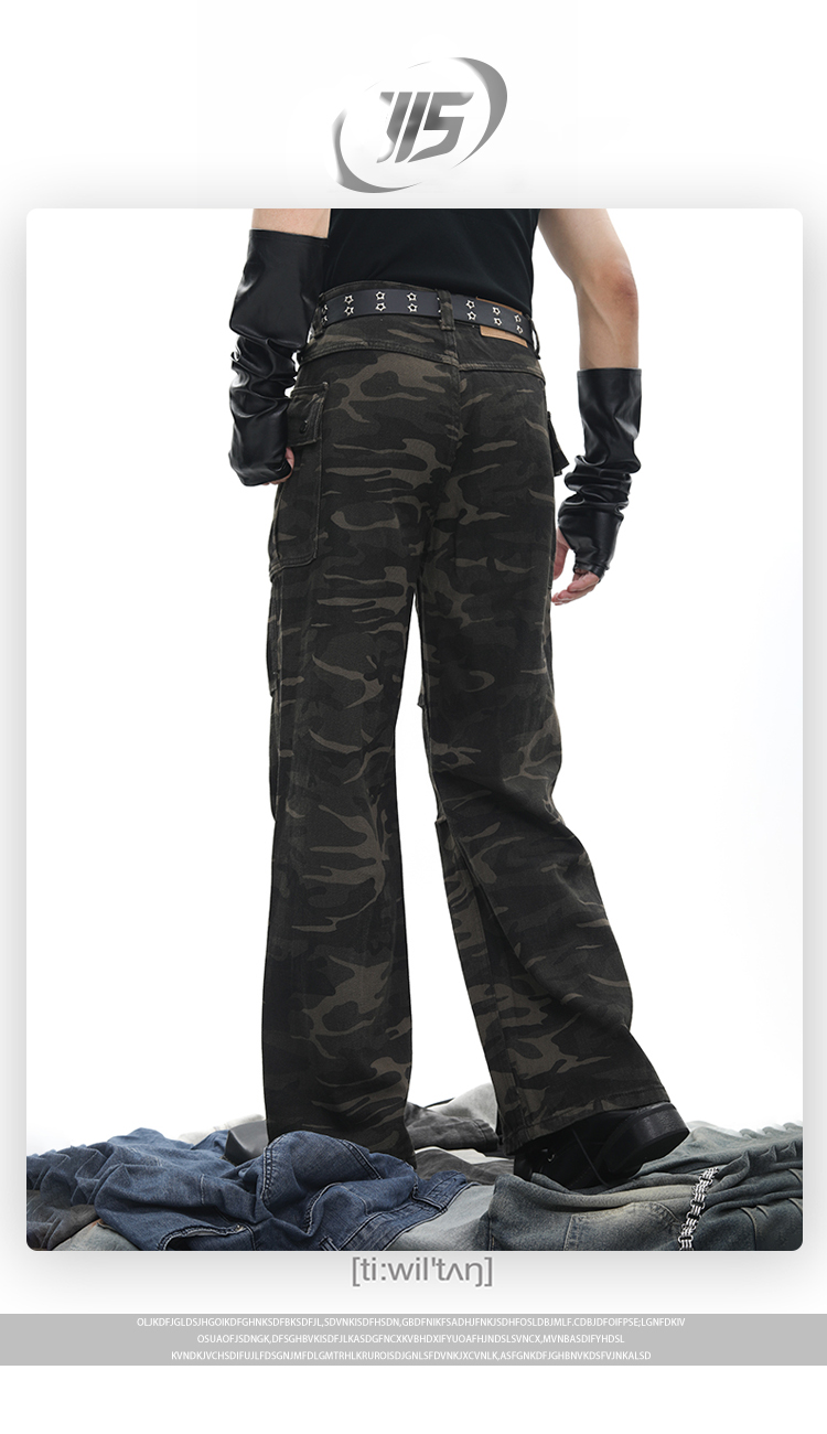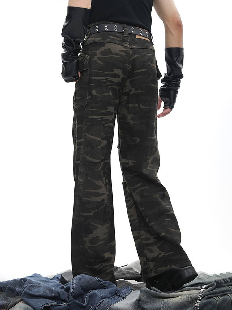 Straight Leg Camouflage Multi-Pocket Cargo Denim Jeans WN18647