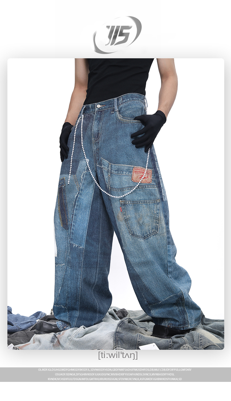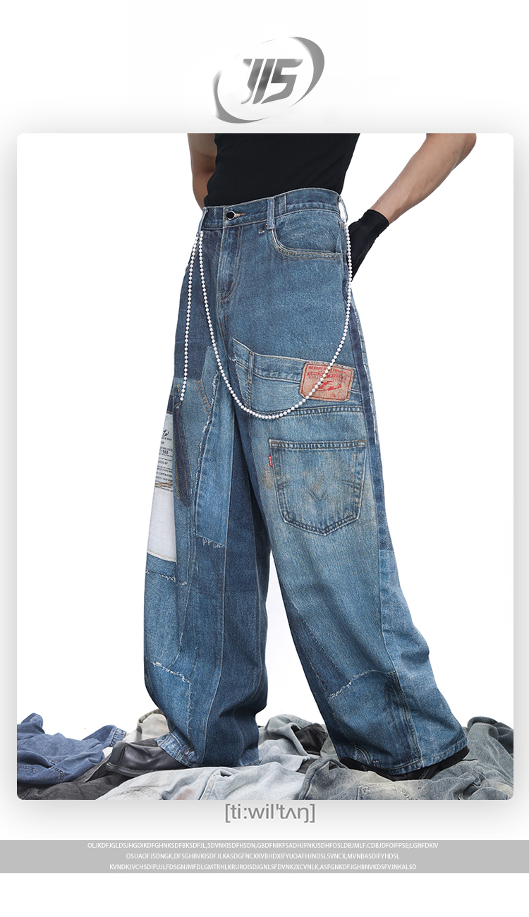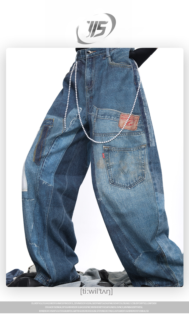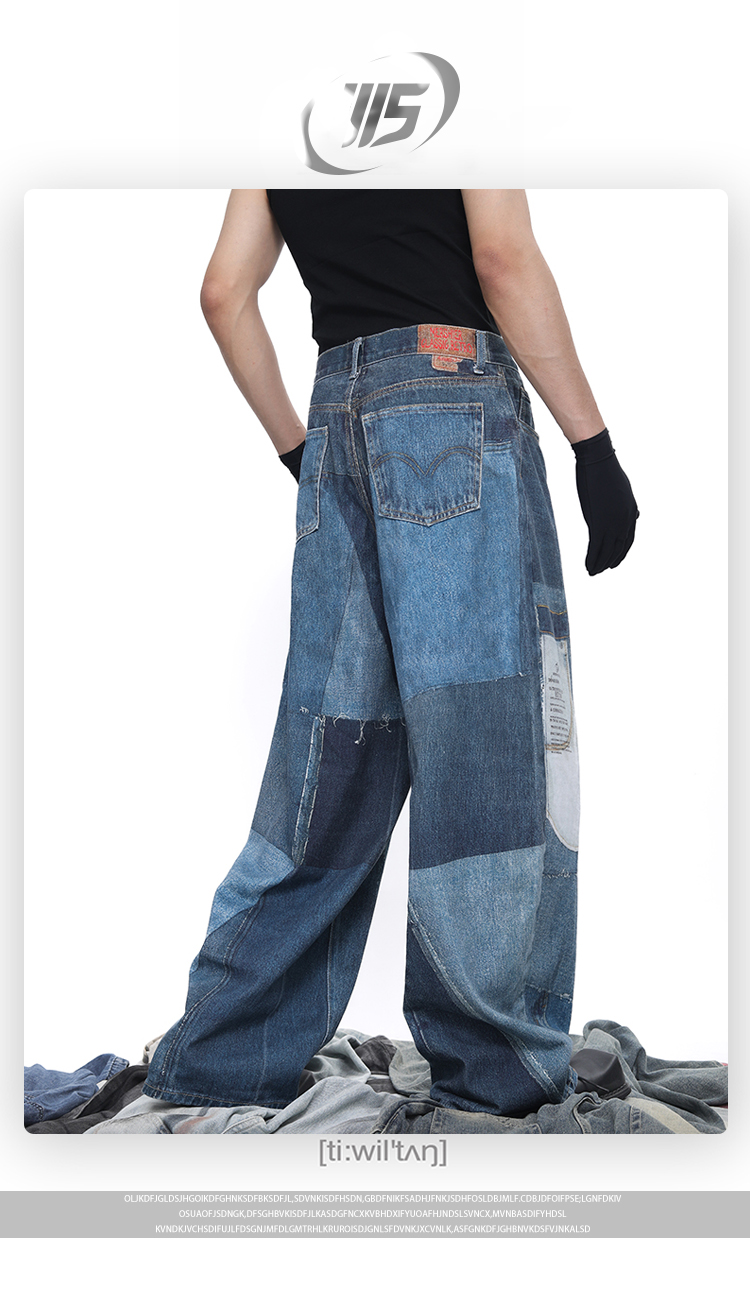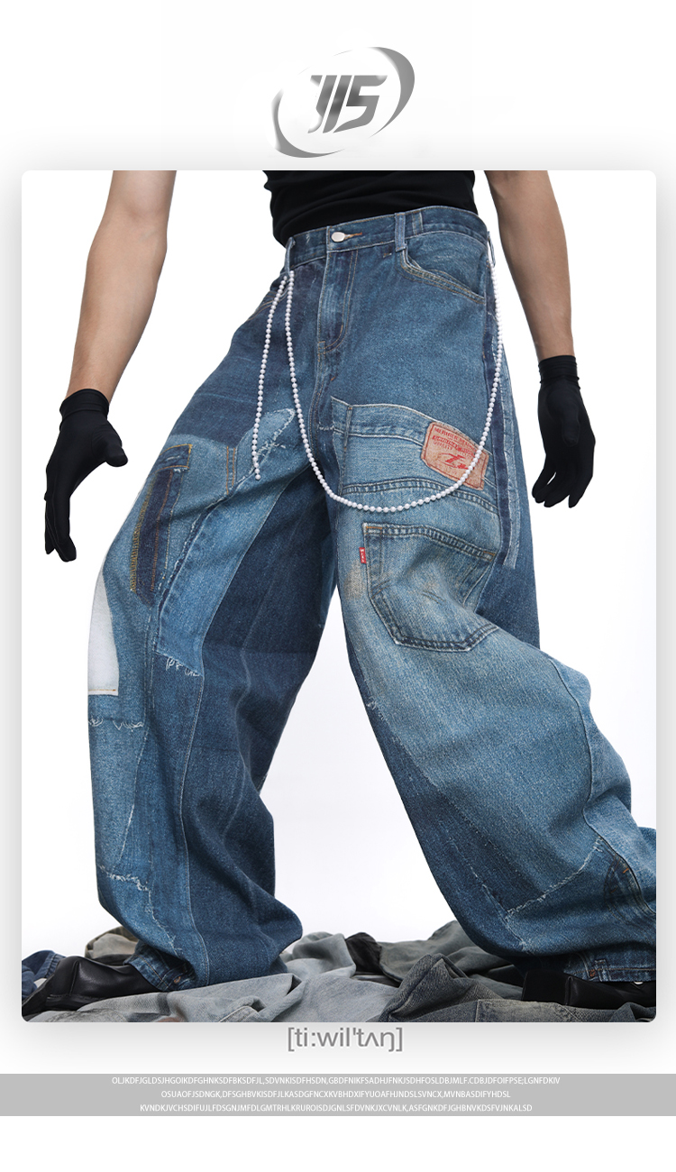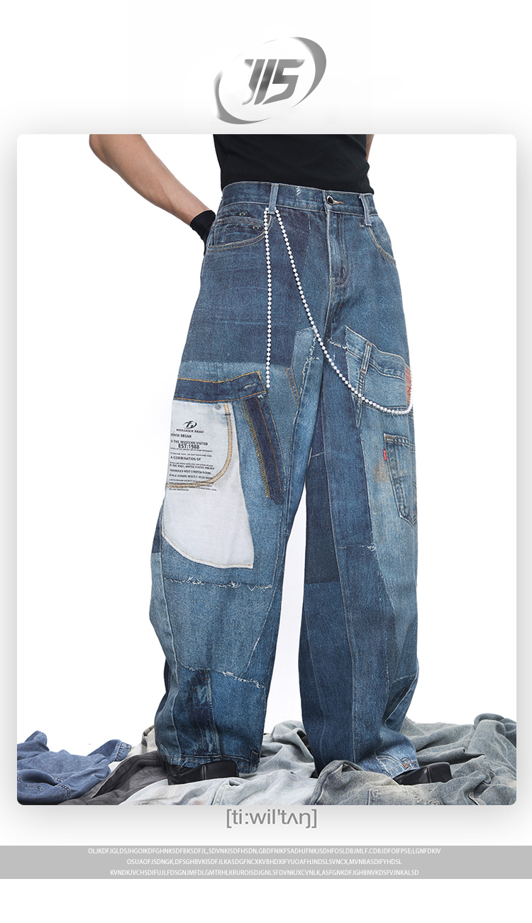 Patch 3D Print Color Block Wide Leg Denim Jeans WN18683