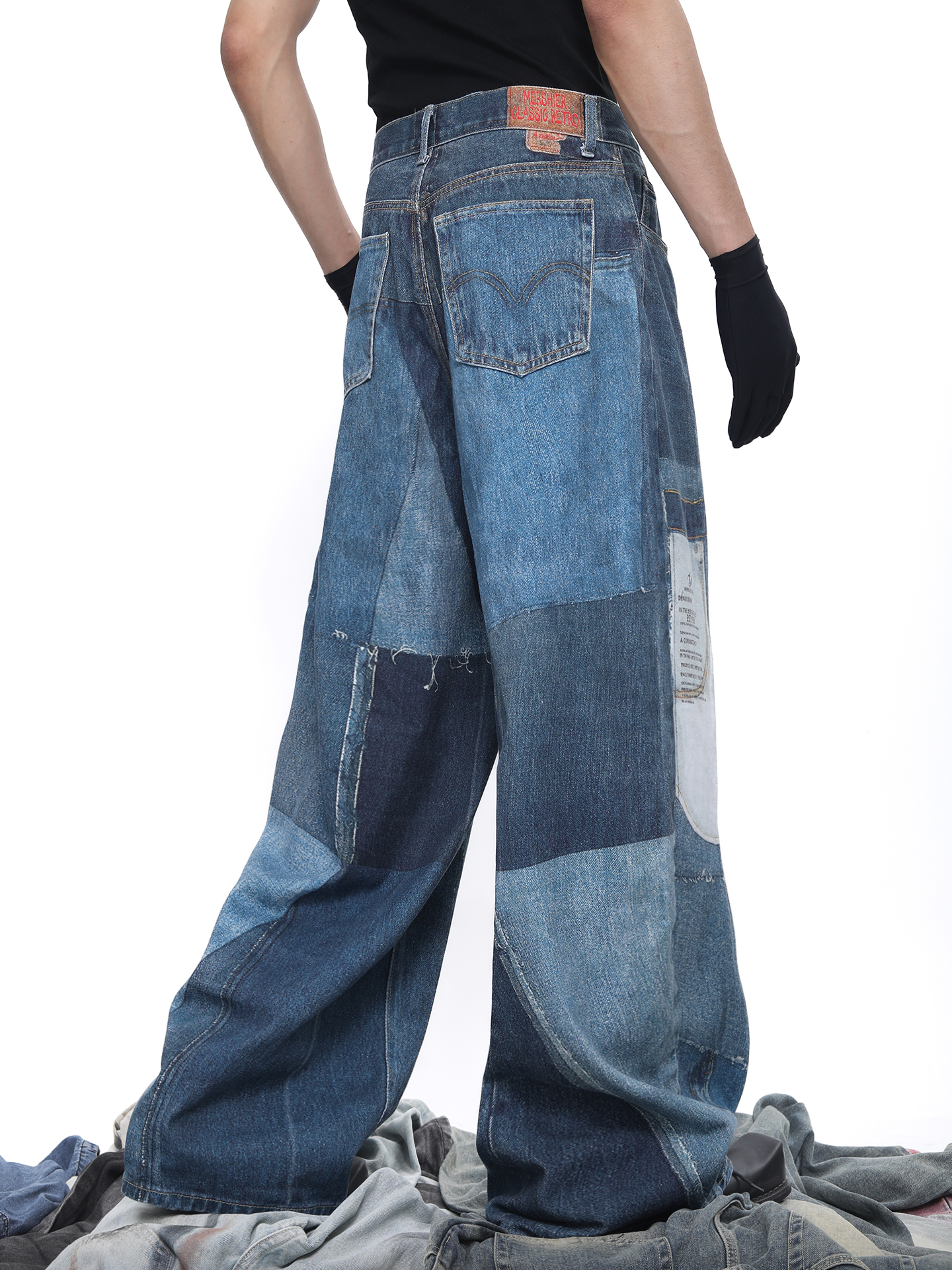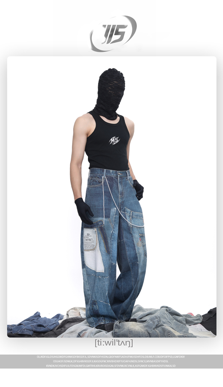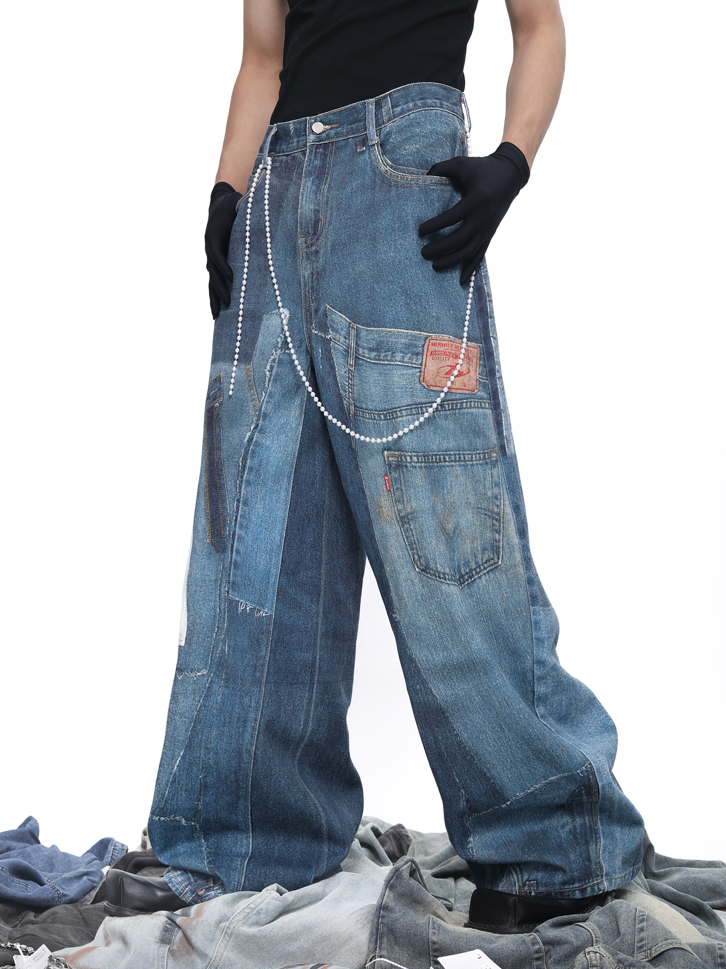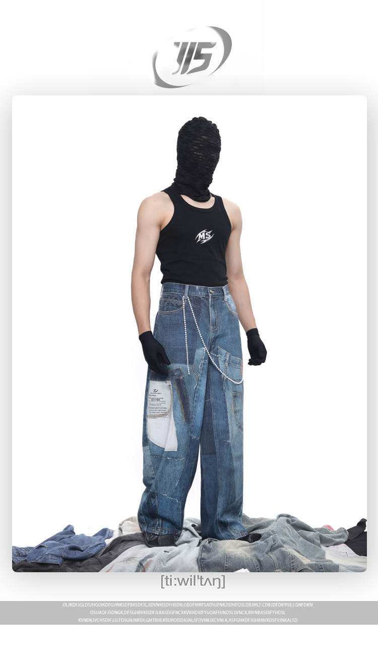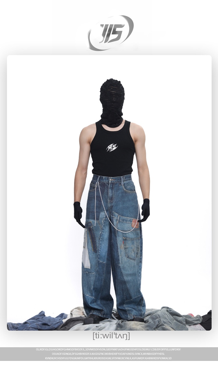 Patch 3D Print Color Block Wide Leg Denim Jeans WN18683