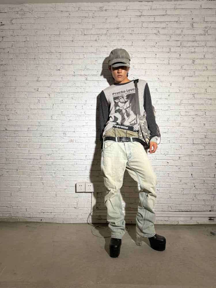 Graphic Print Stripe Long Sleeve T-Shirt WN19068