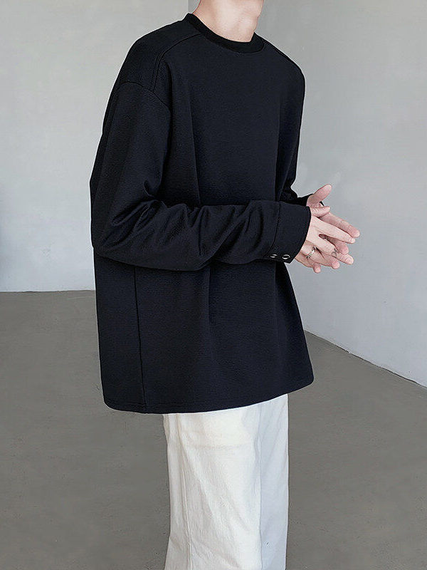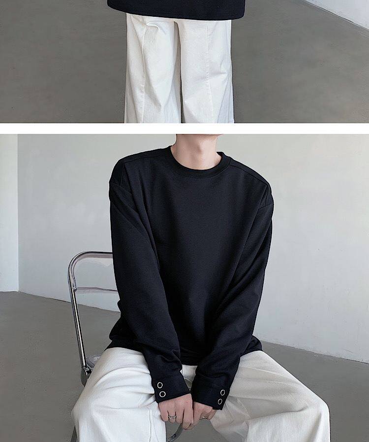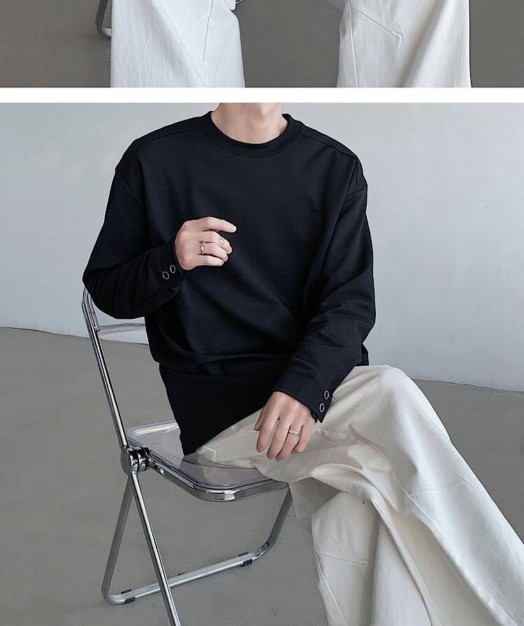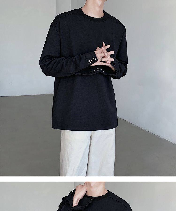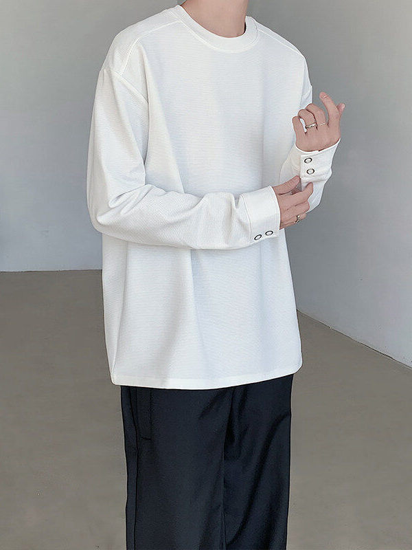 Button Cuff Design Long Sleeve T-Shirt WN19287