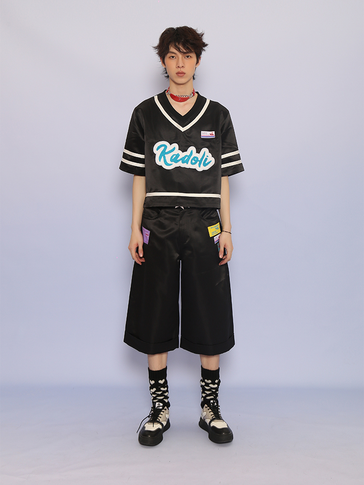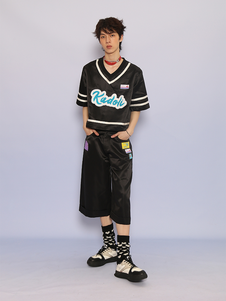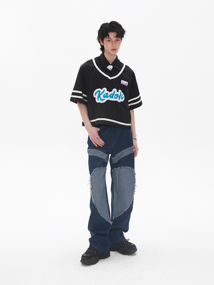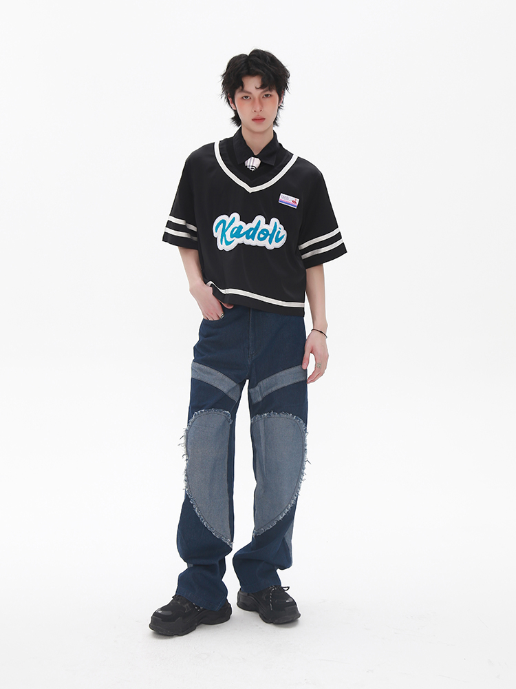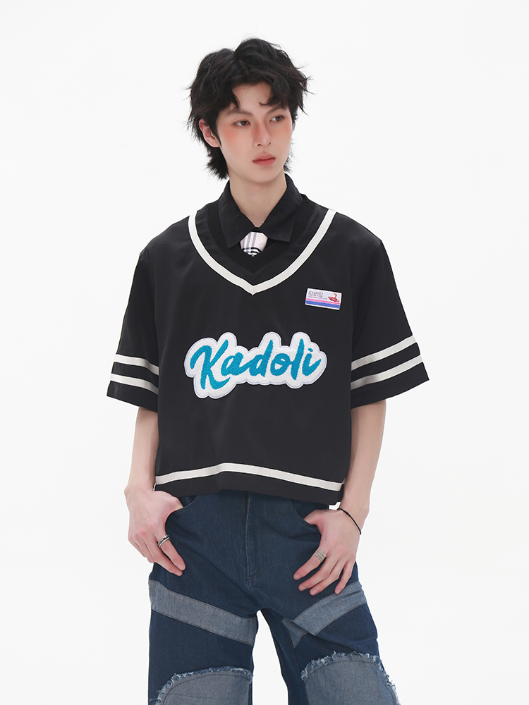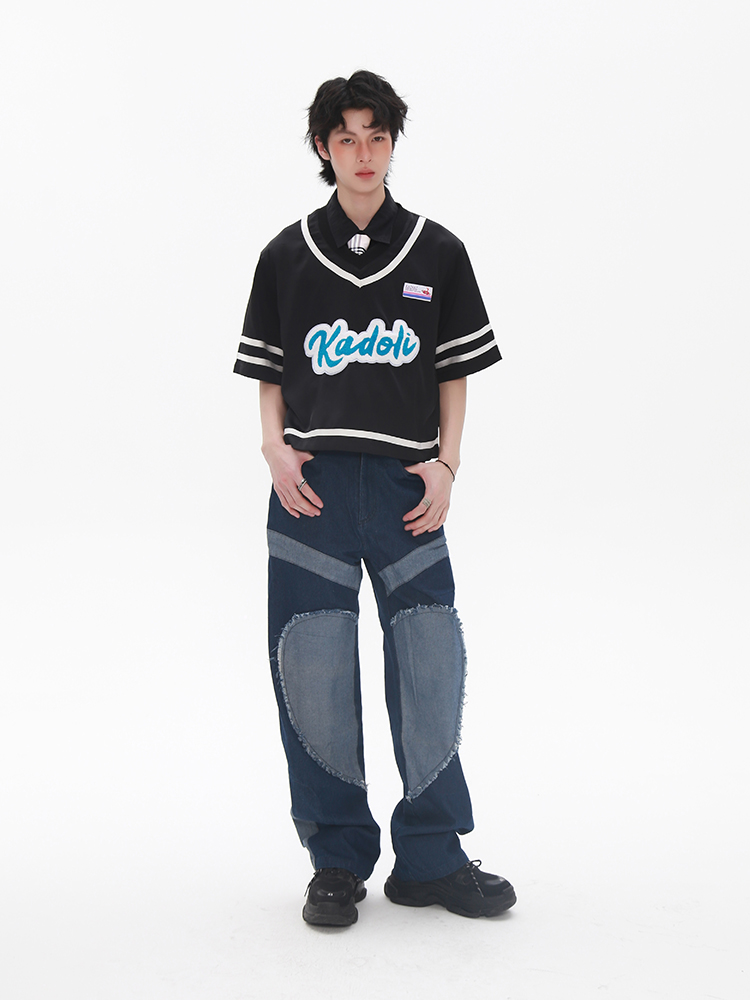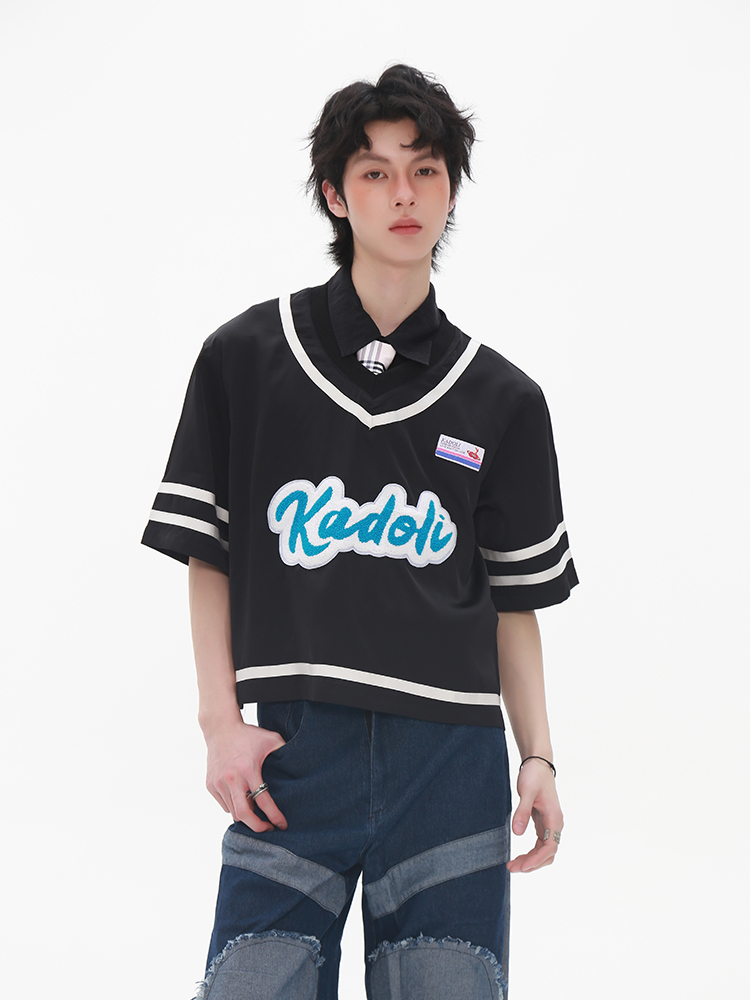 Patchwork Multi-Label V-Neck Short Sleeve T-Shirt WN20217