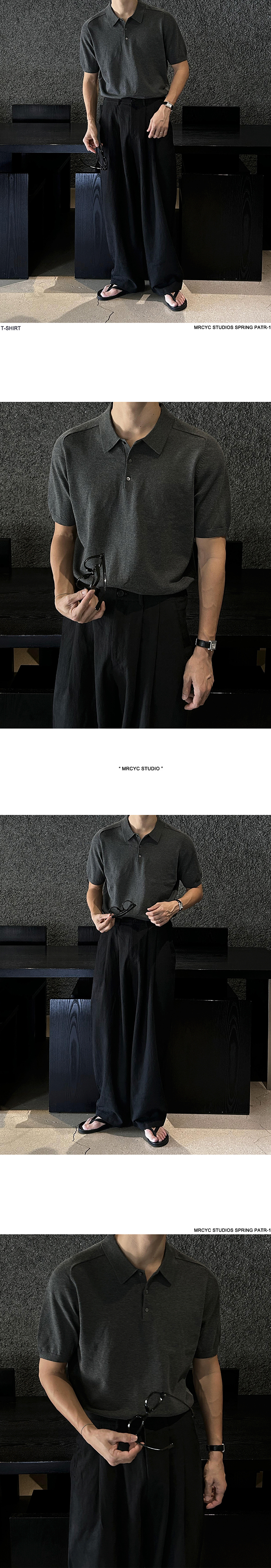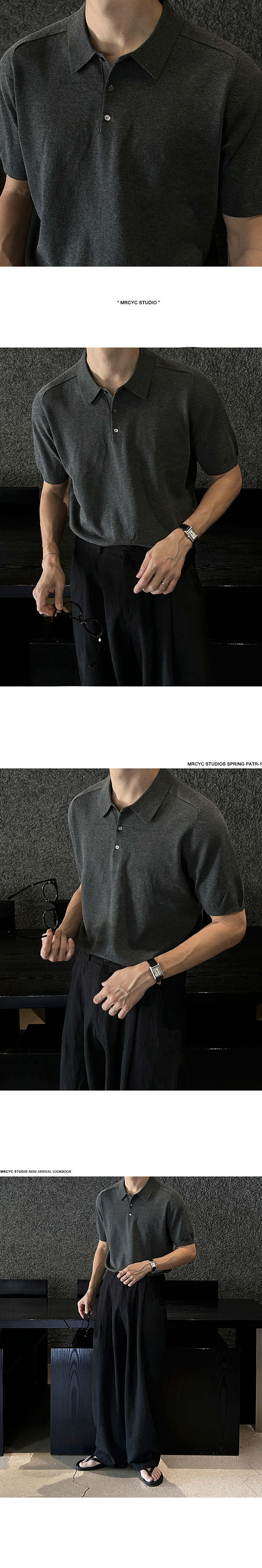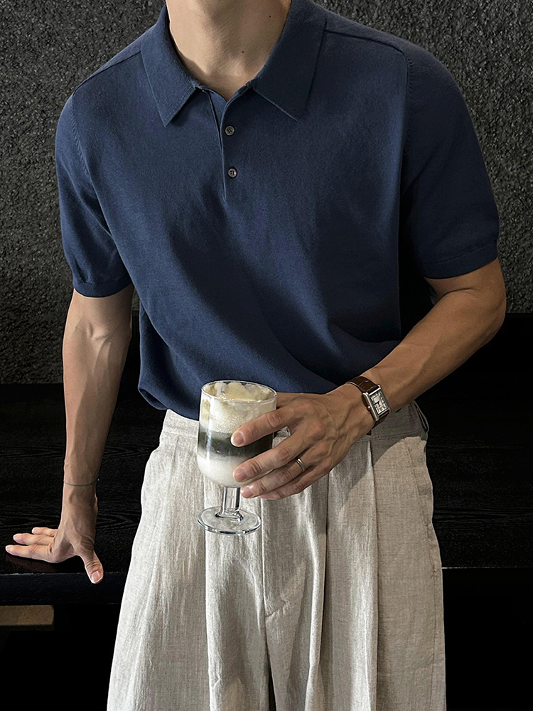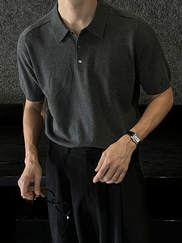 Solid Collar Knit Short Sleeve Polo Shirt WN20304
