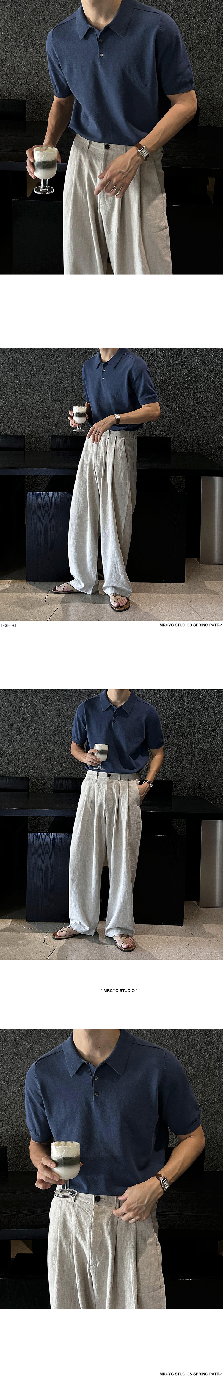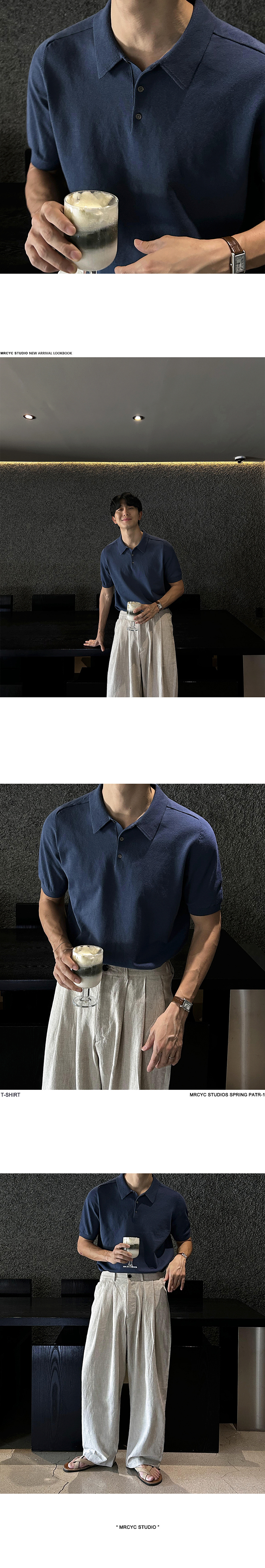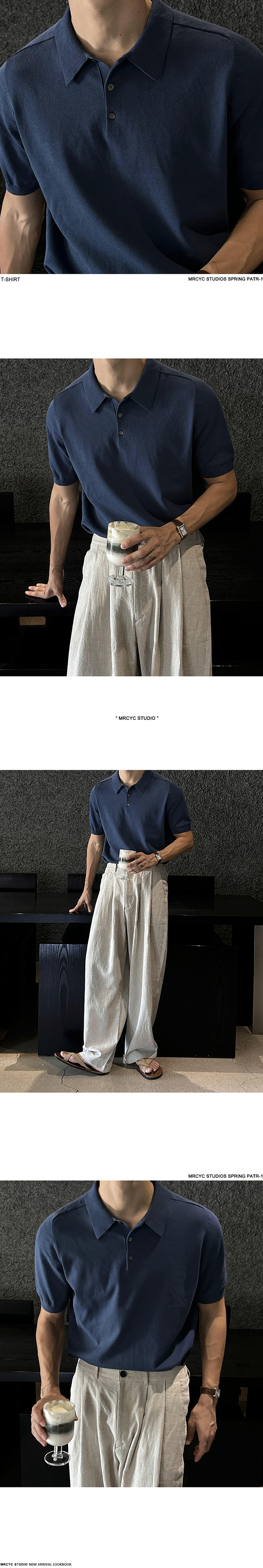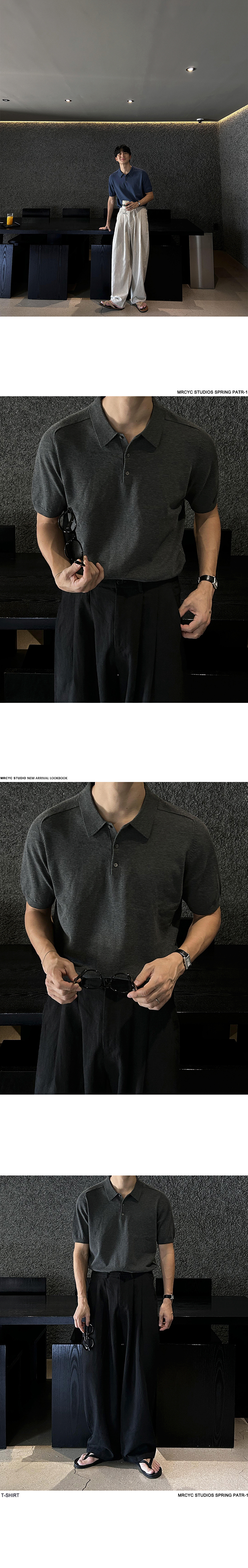 Solid Collar Knit Short Sleeve Polo Shirt WN20304