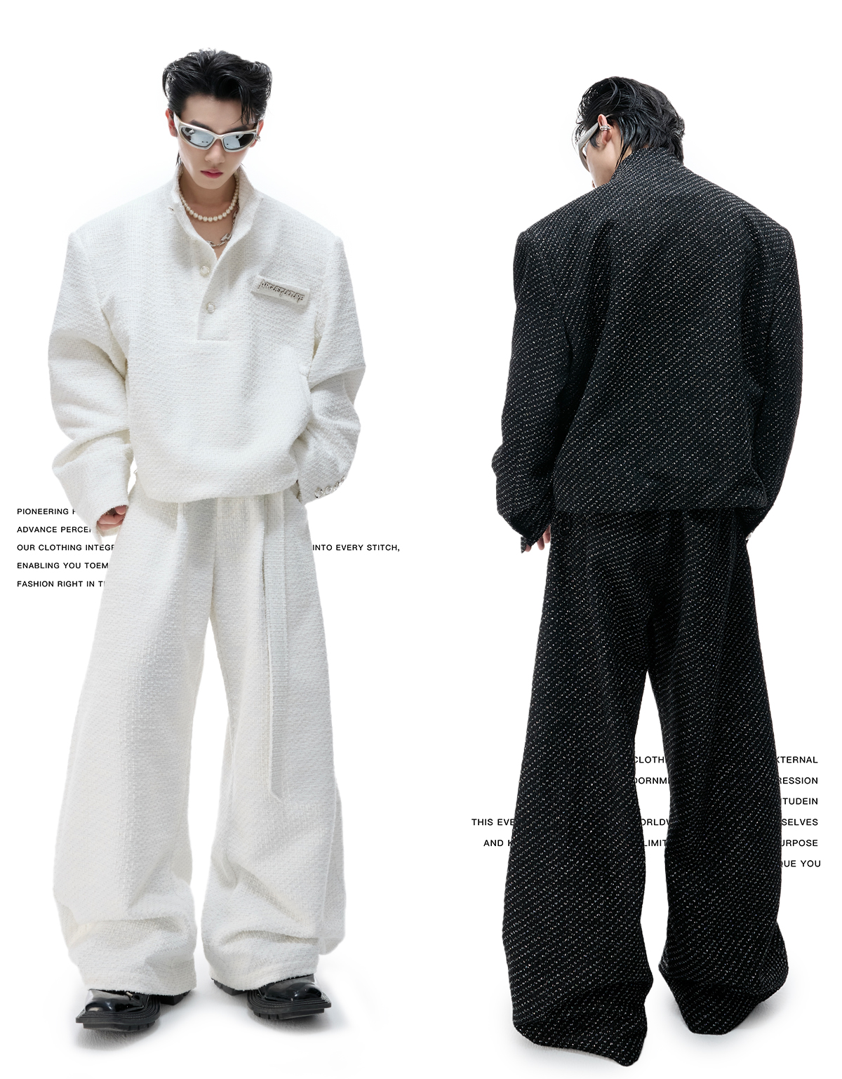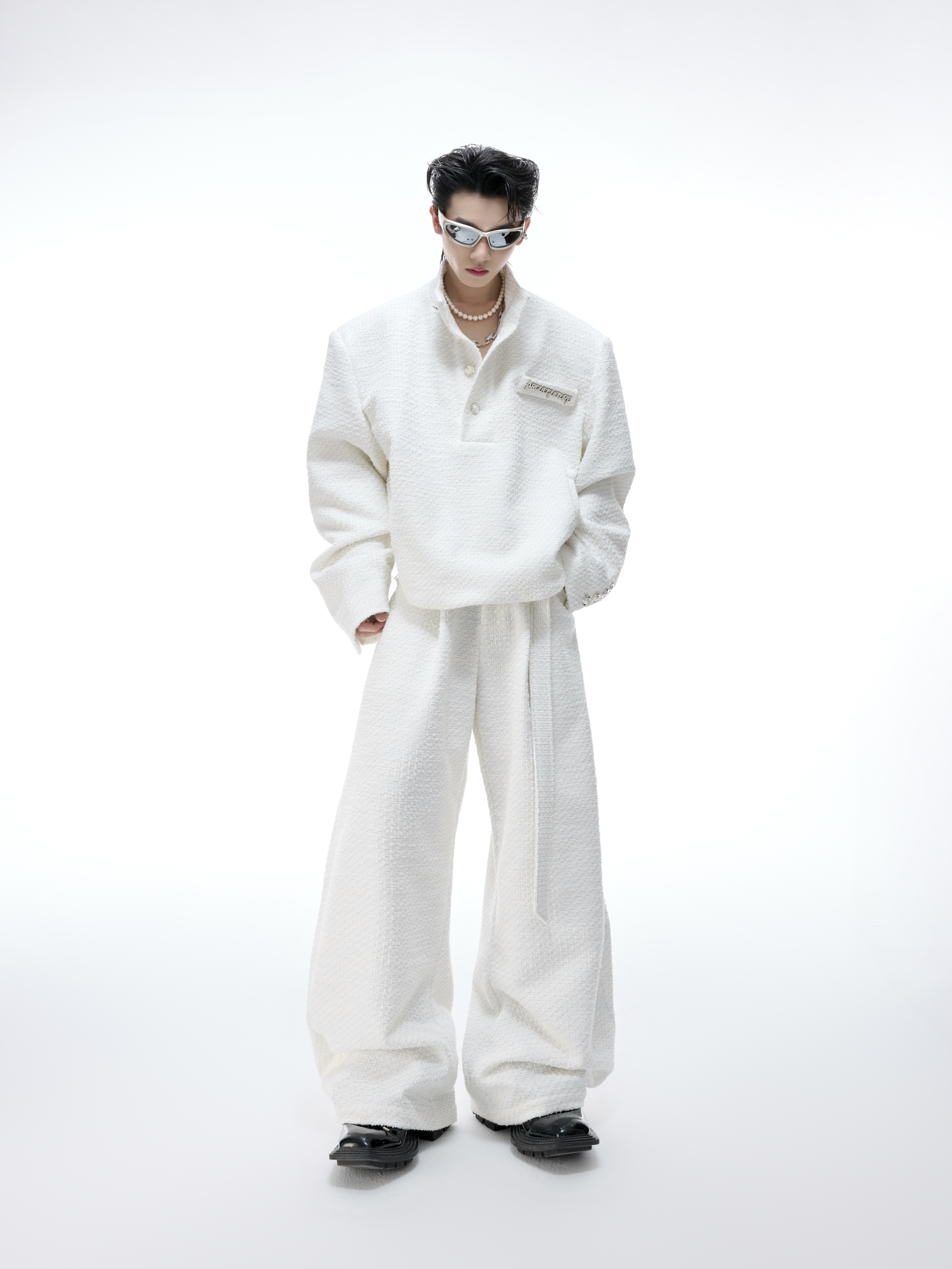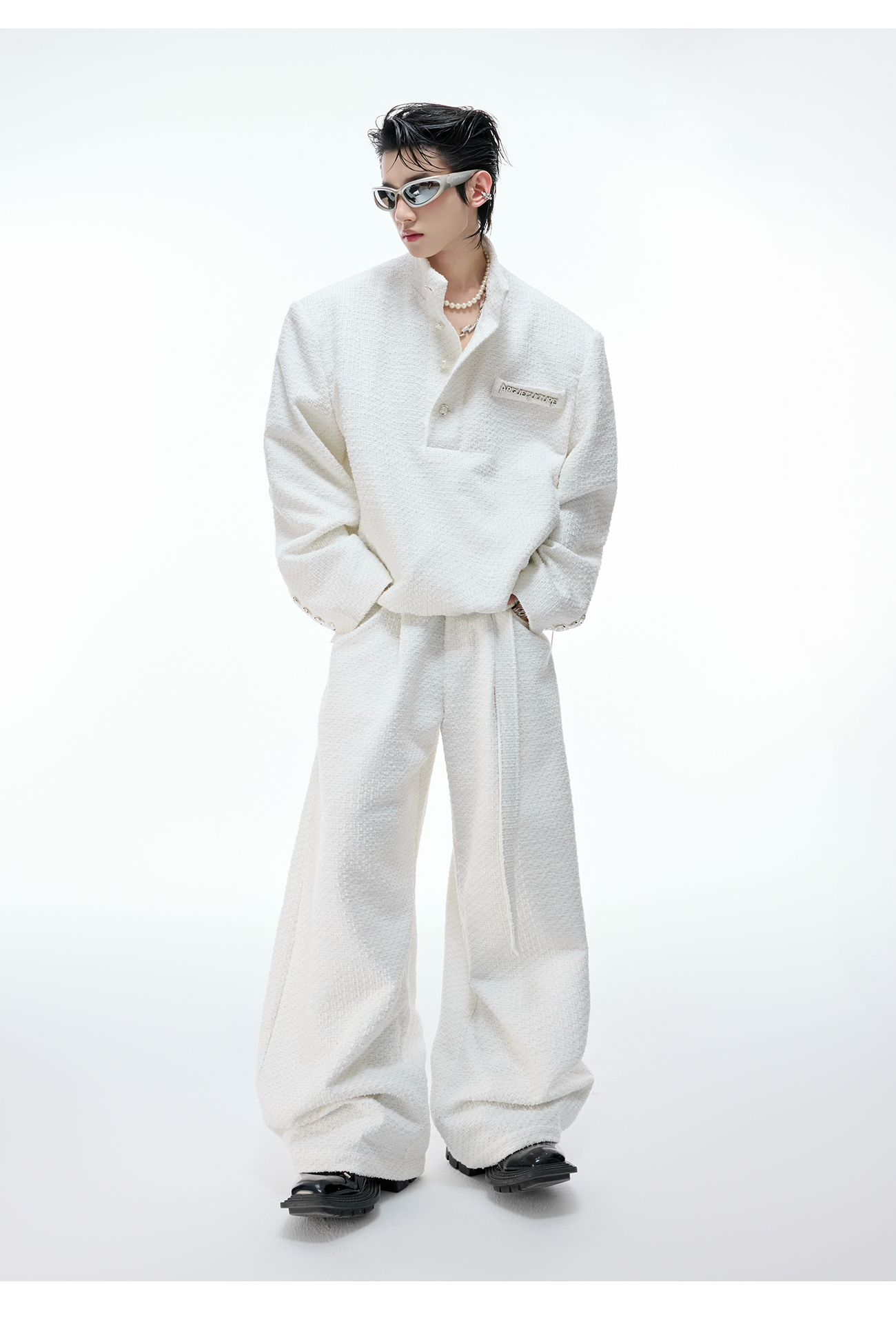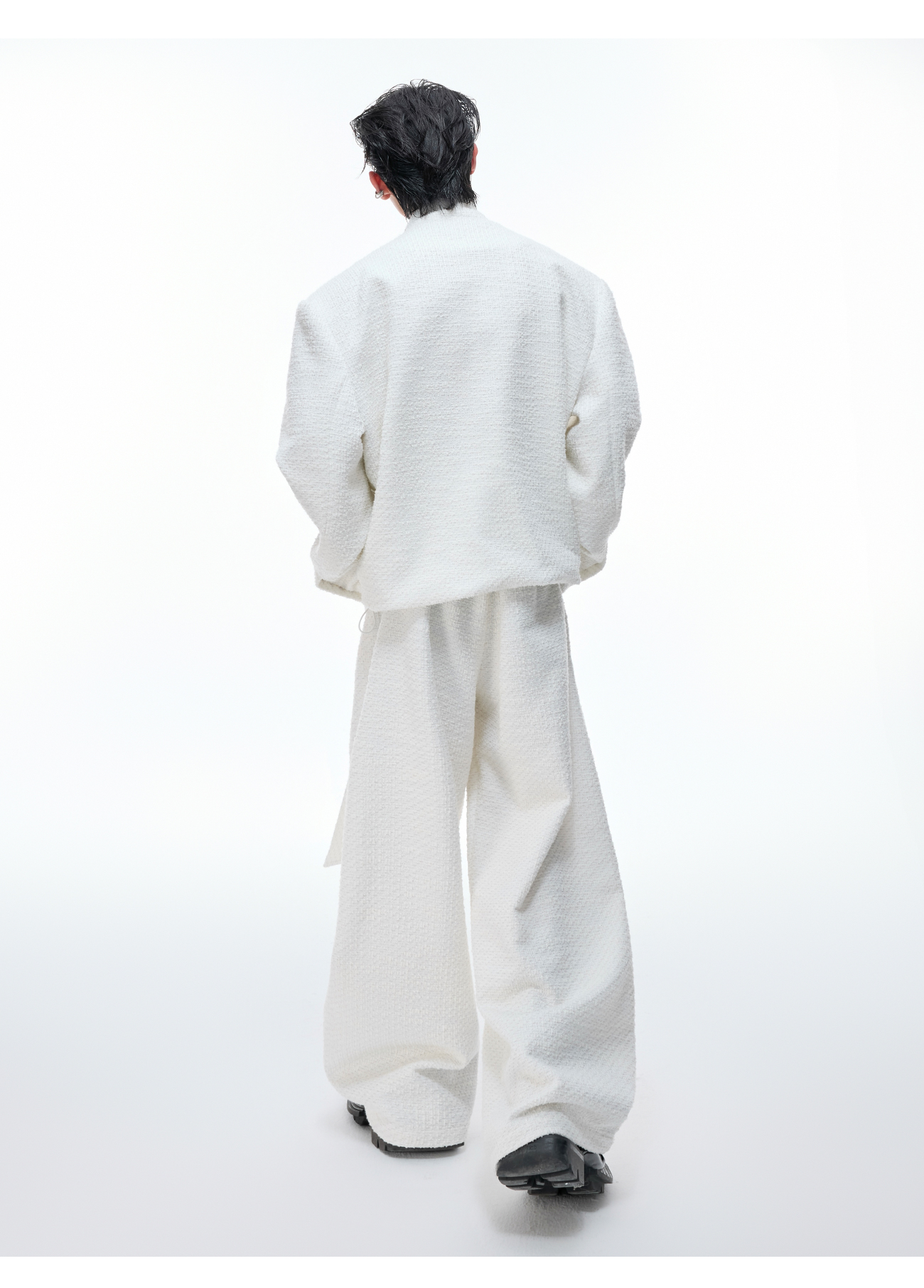 Pearl Button Textured Jacket & Wide Leg Pants Setup WN20529