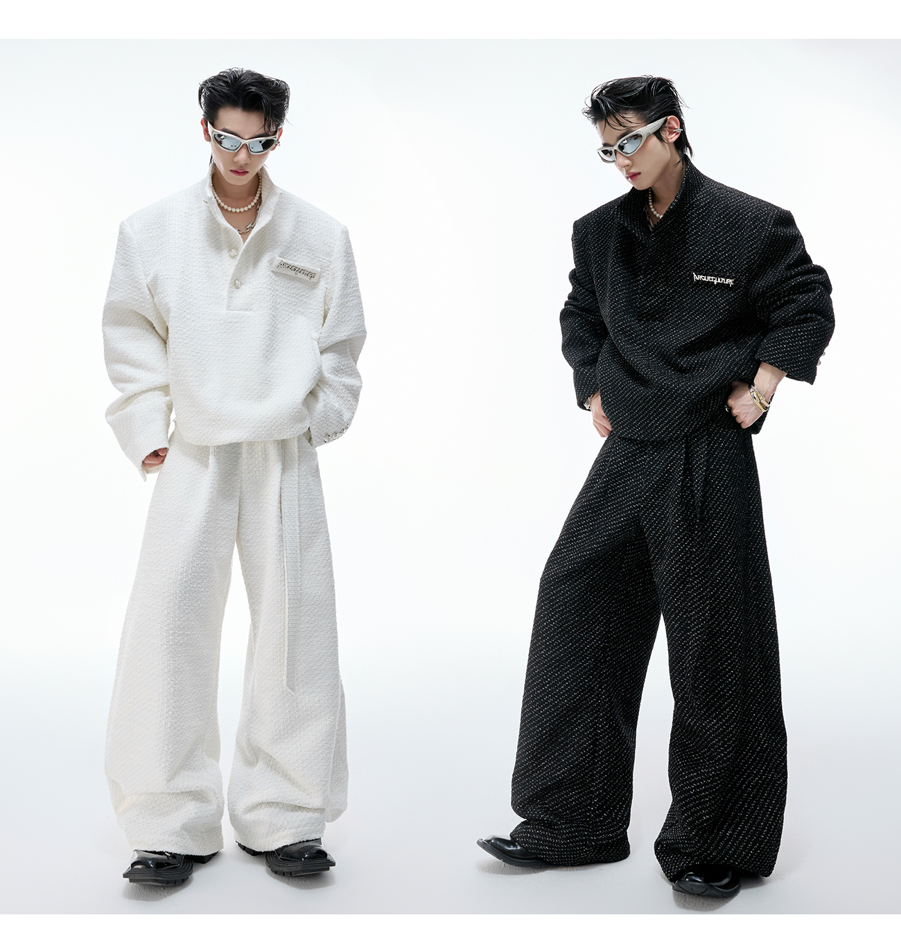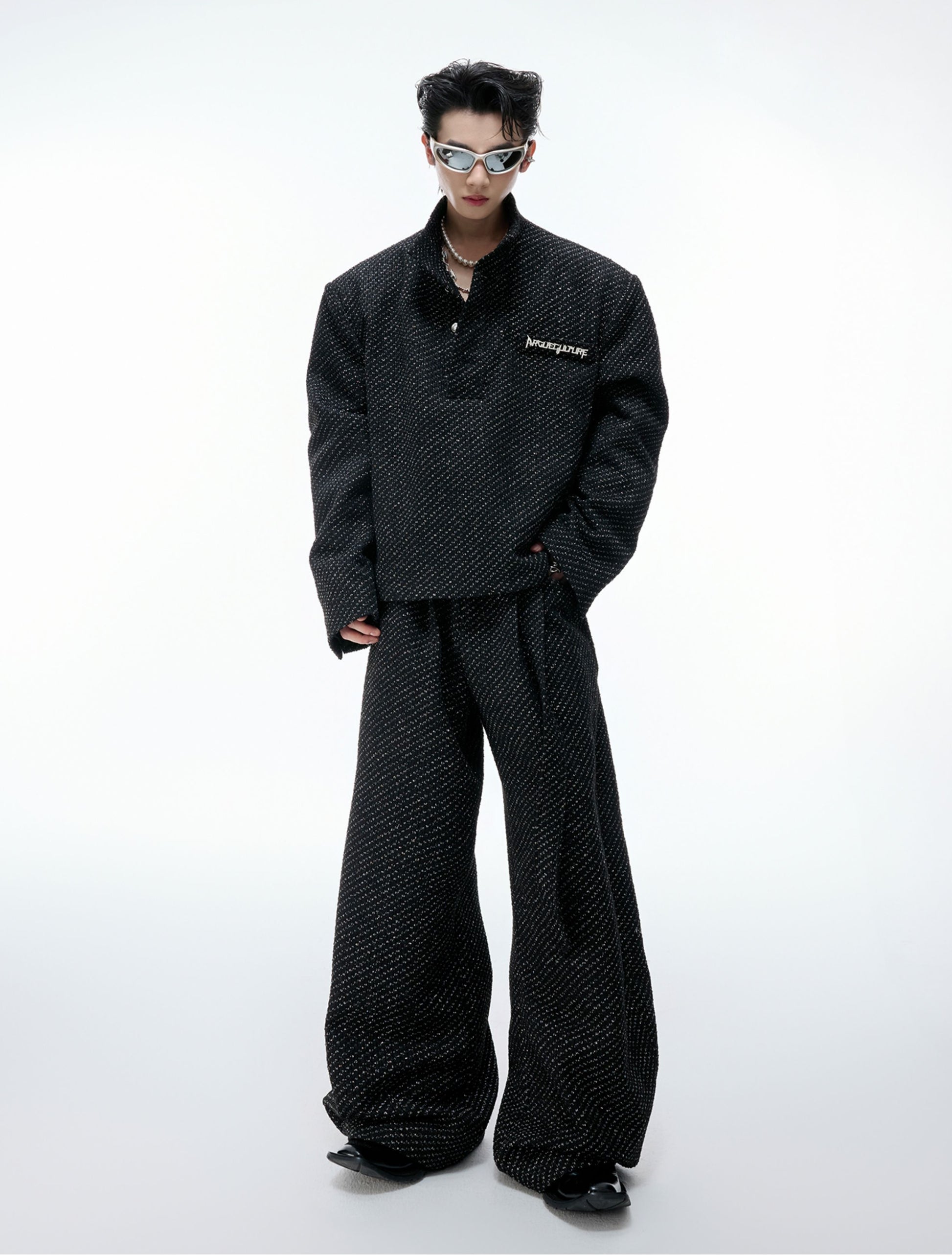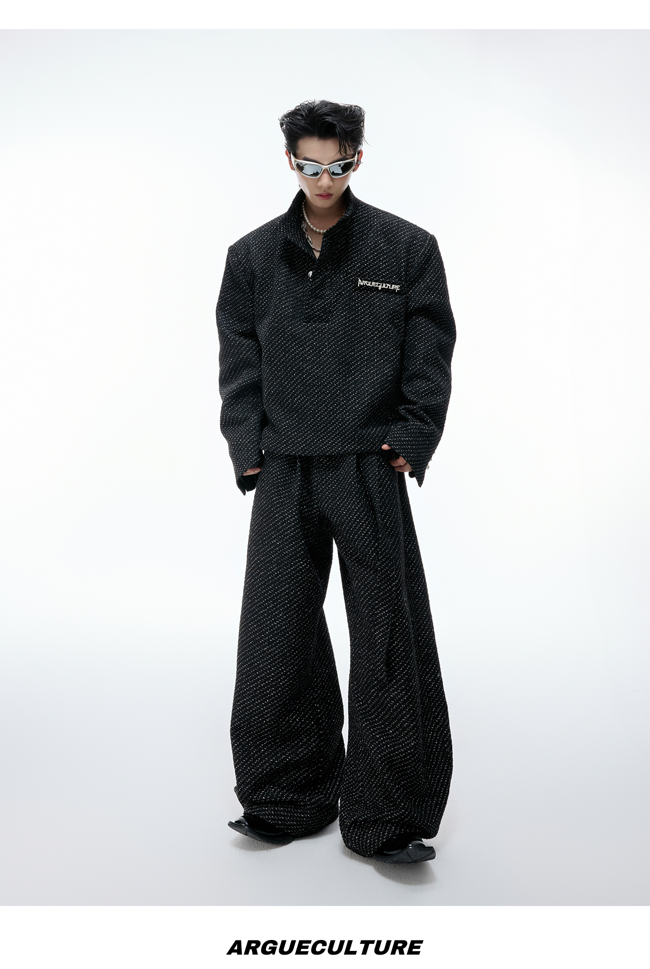 Pearl Button Textured Jacket & Wide Leg Pants Setup WN20529