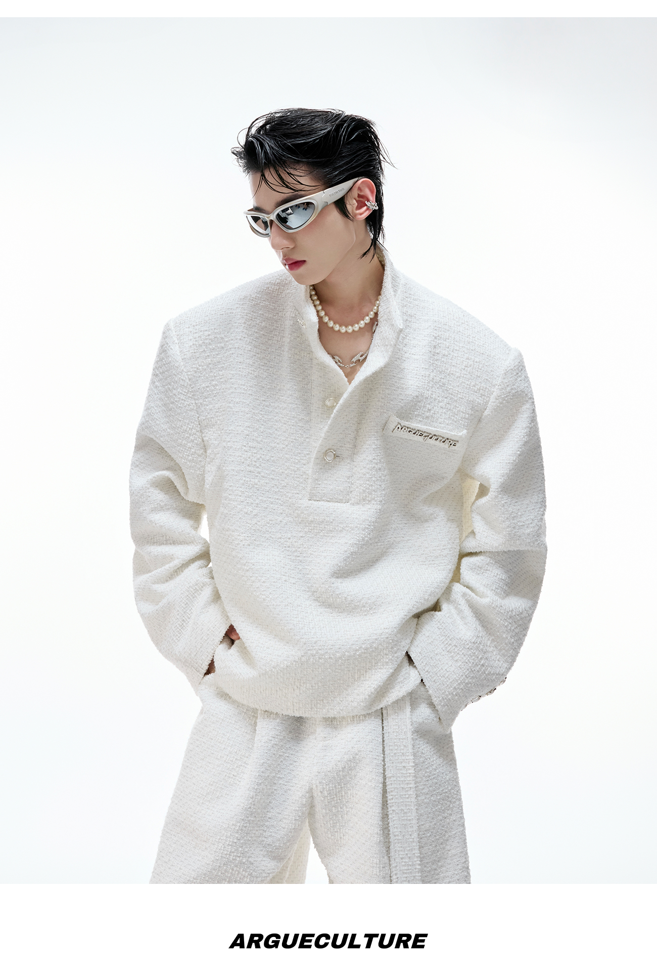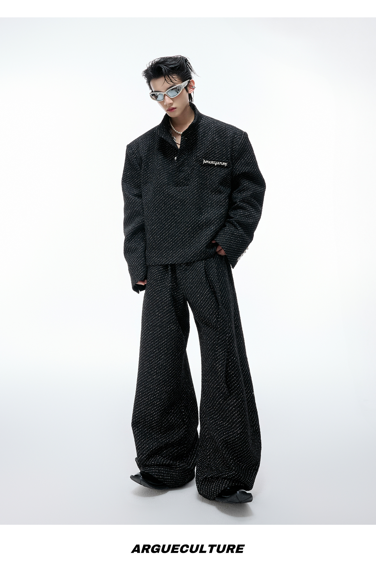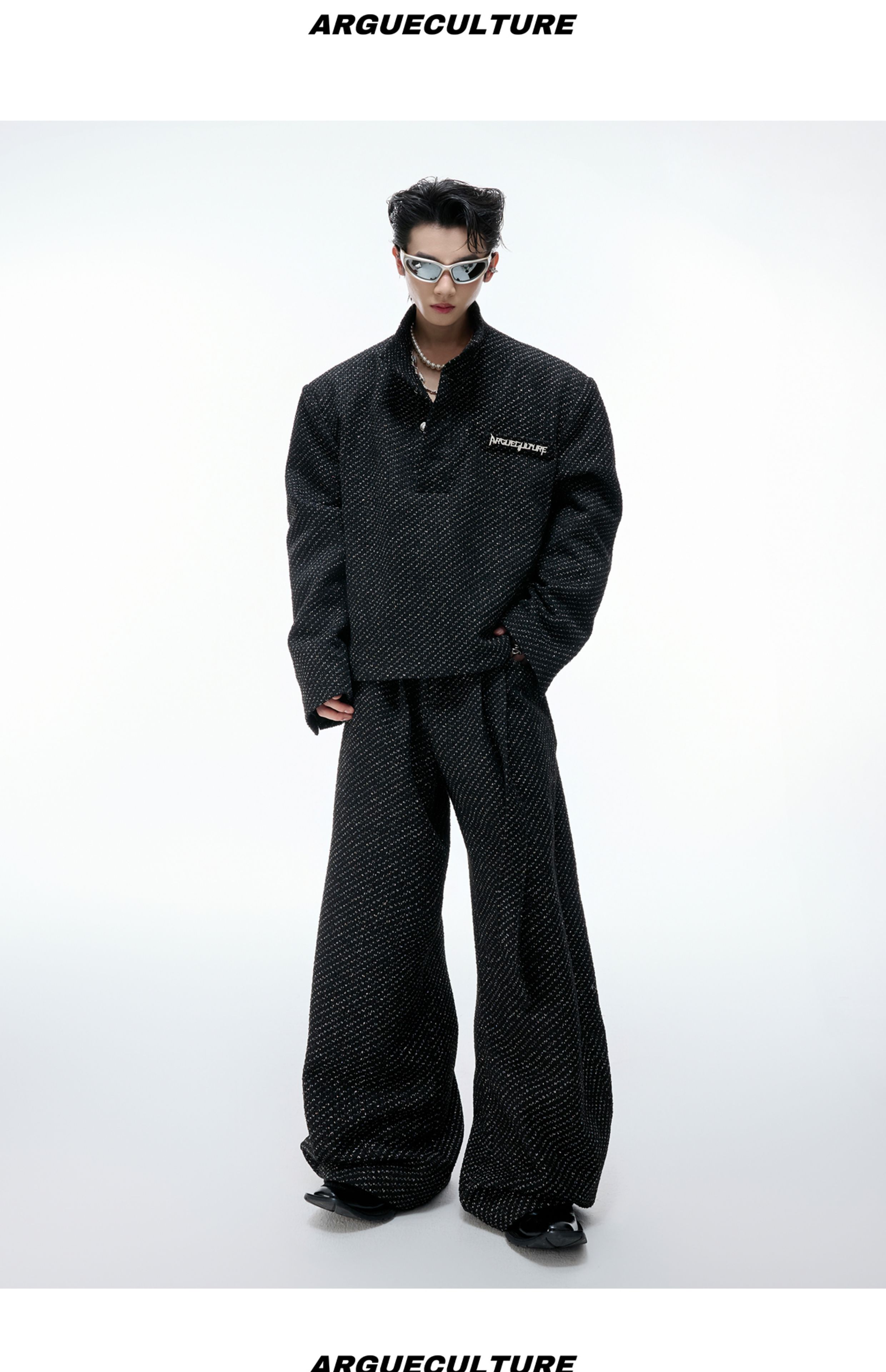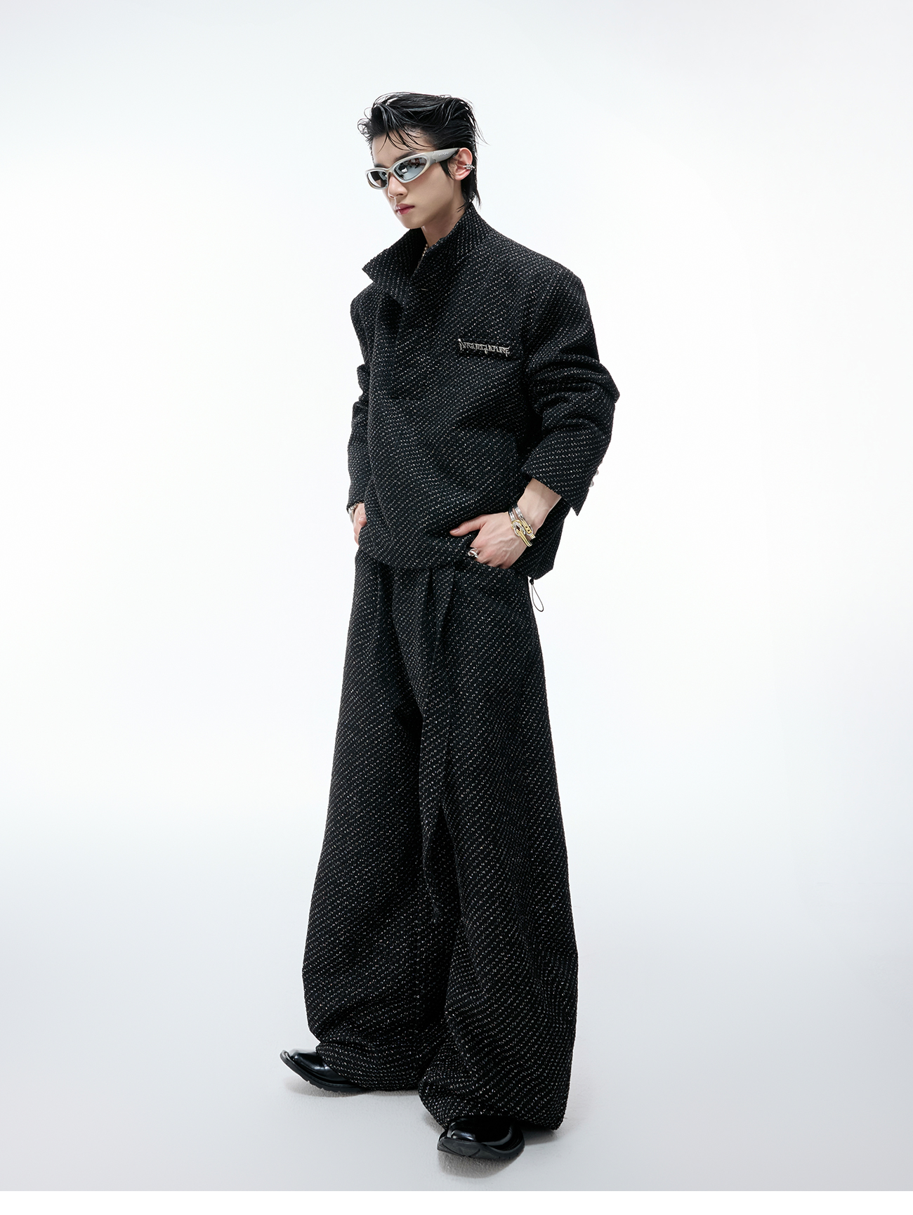 Pearl Button Textured Jacket & Wide Leg Pants Setup WN20529