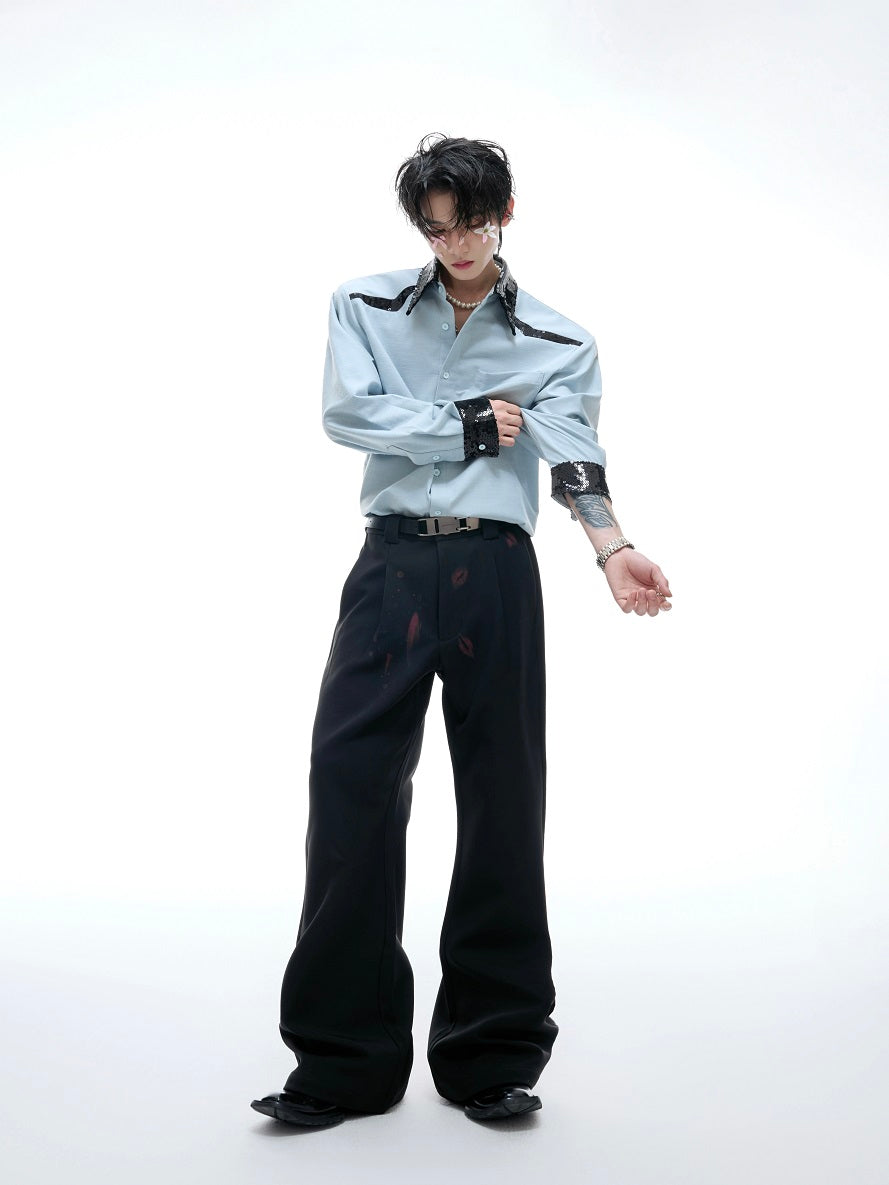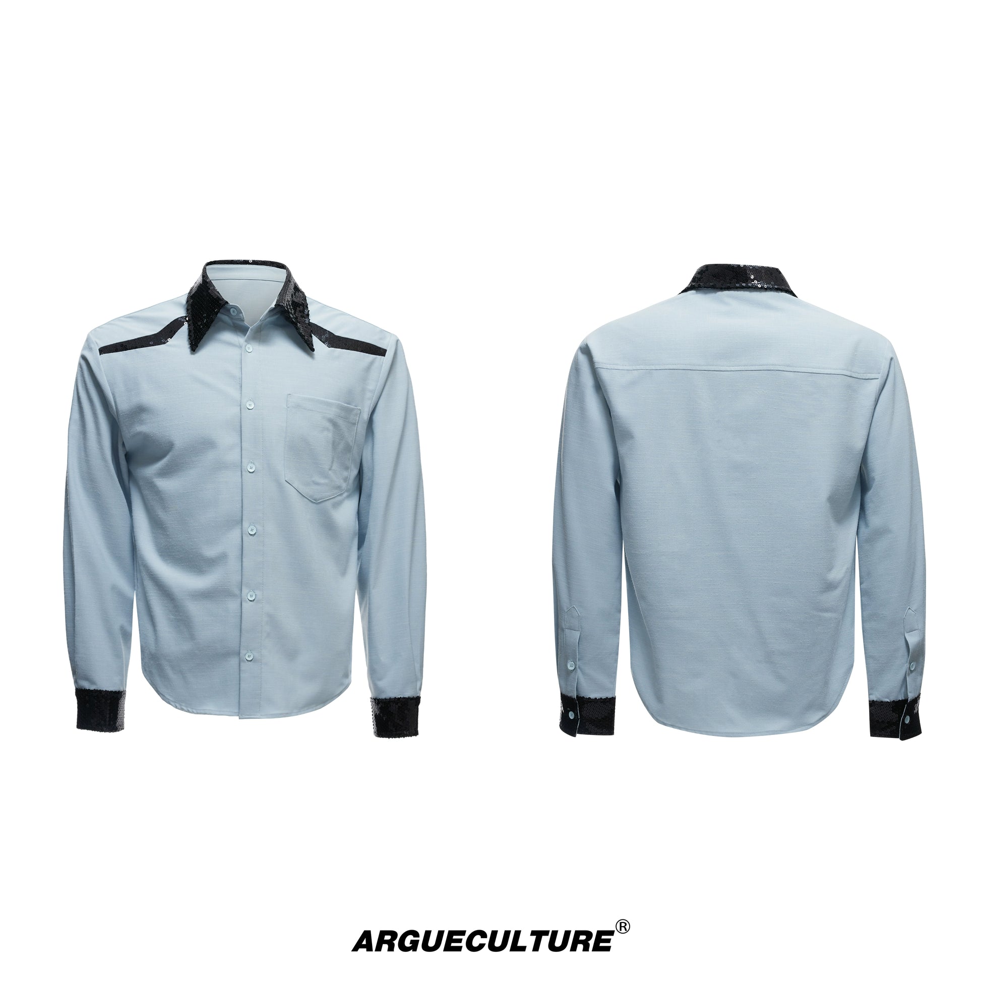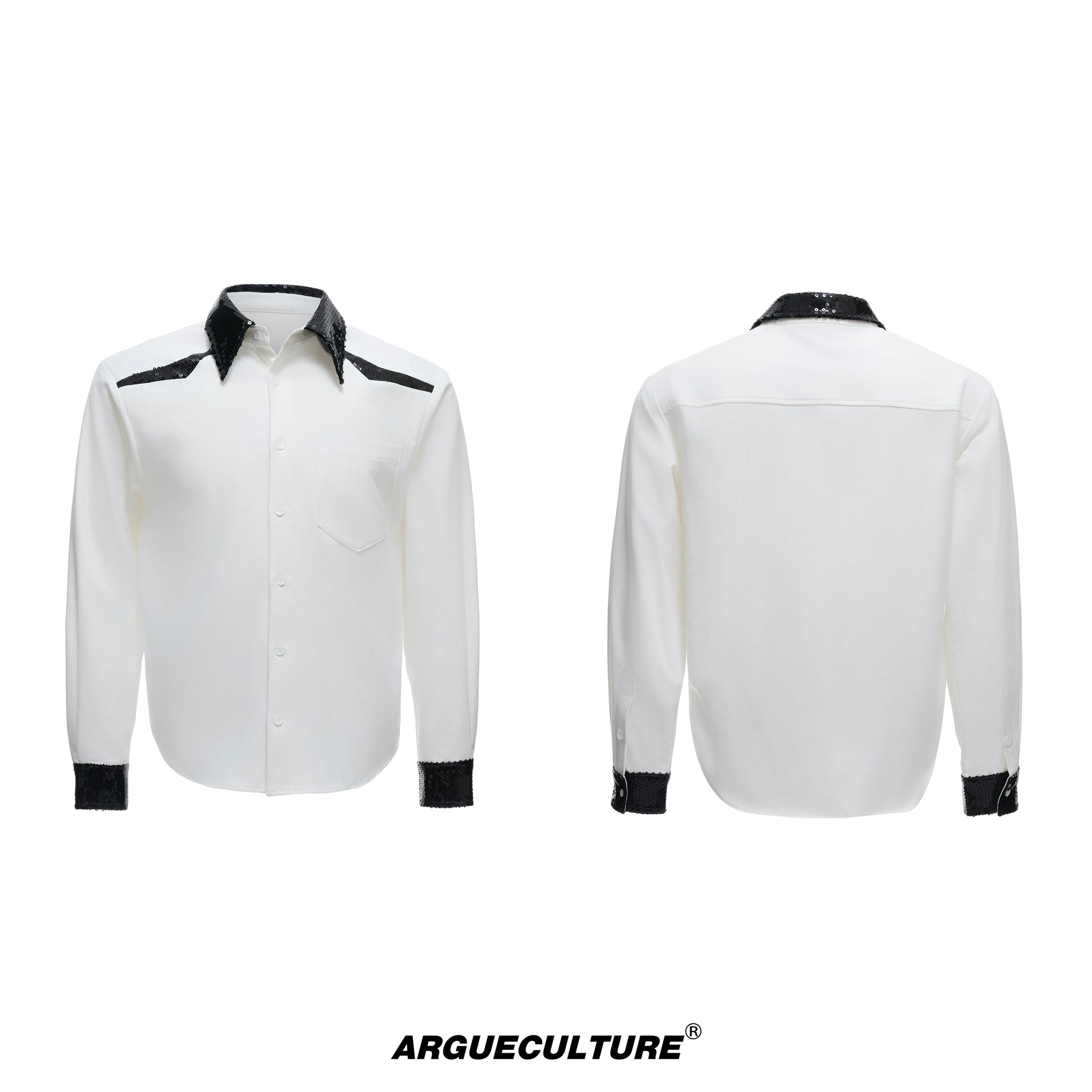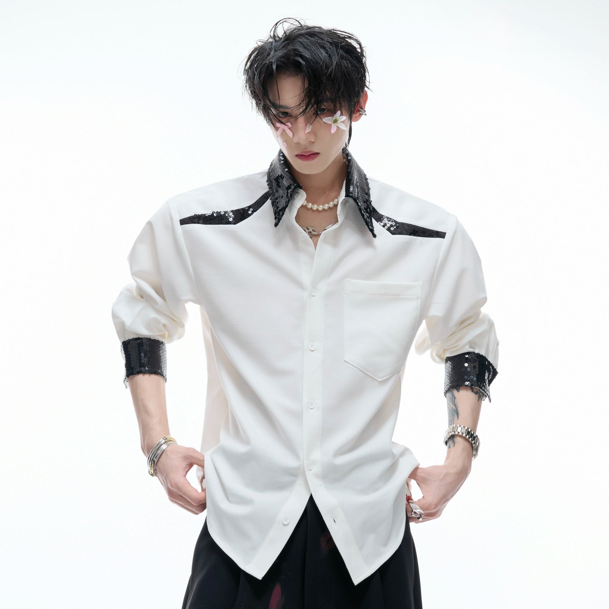 Sequin Colorblock Drape Shoulder-Pad Long Sleeve Shirt WN20531
