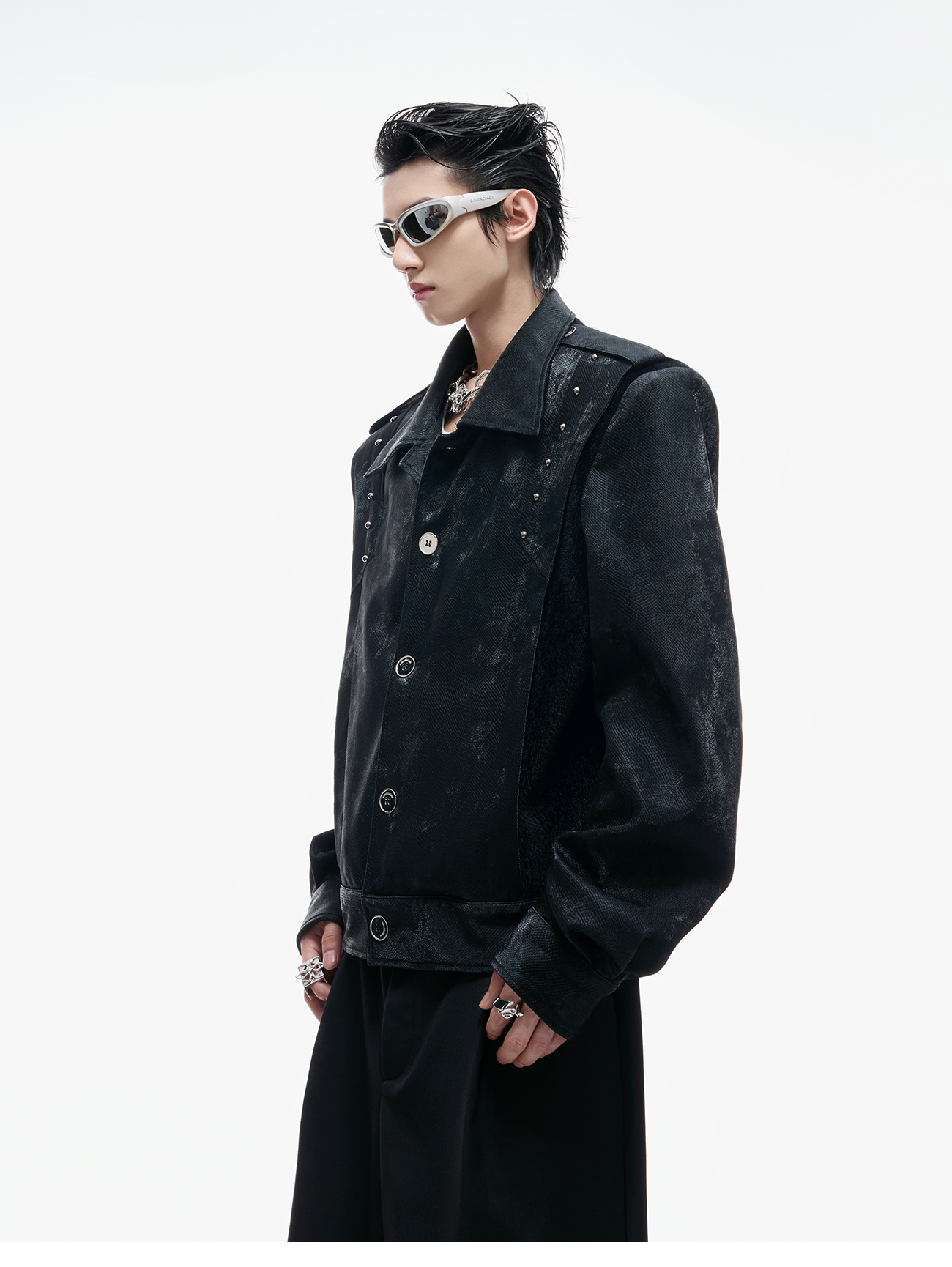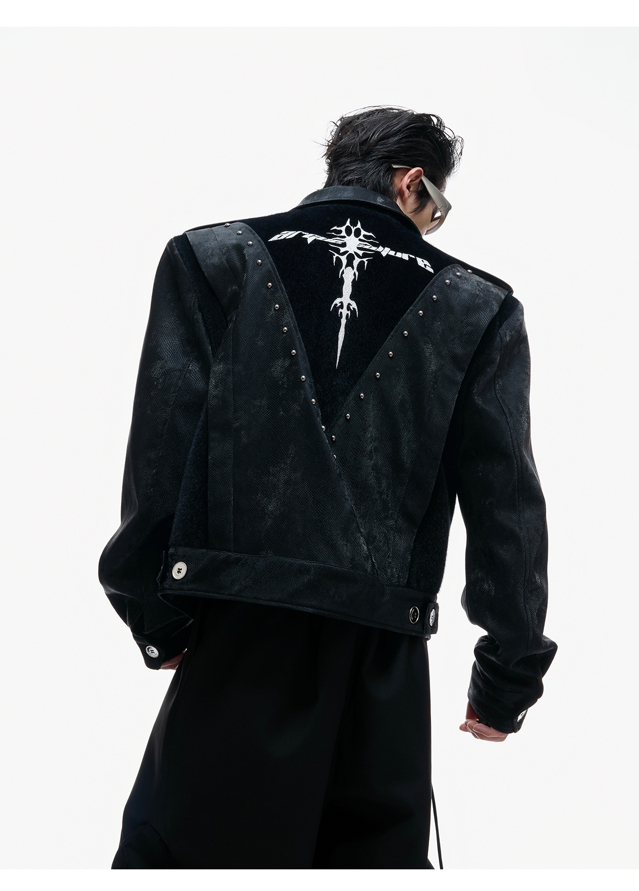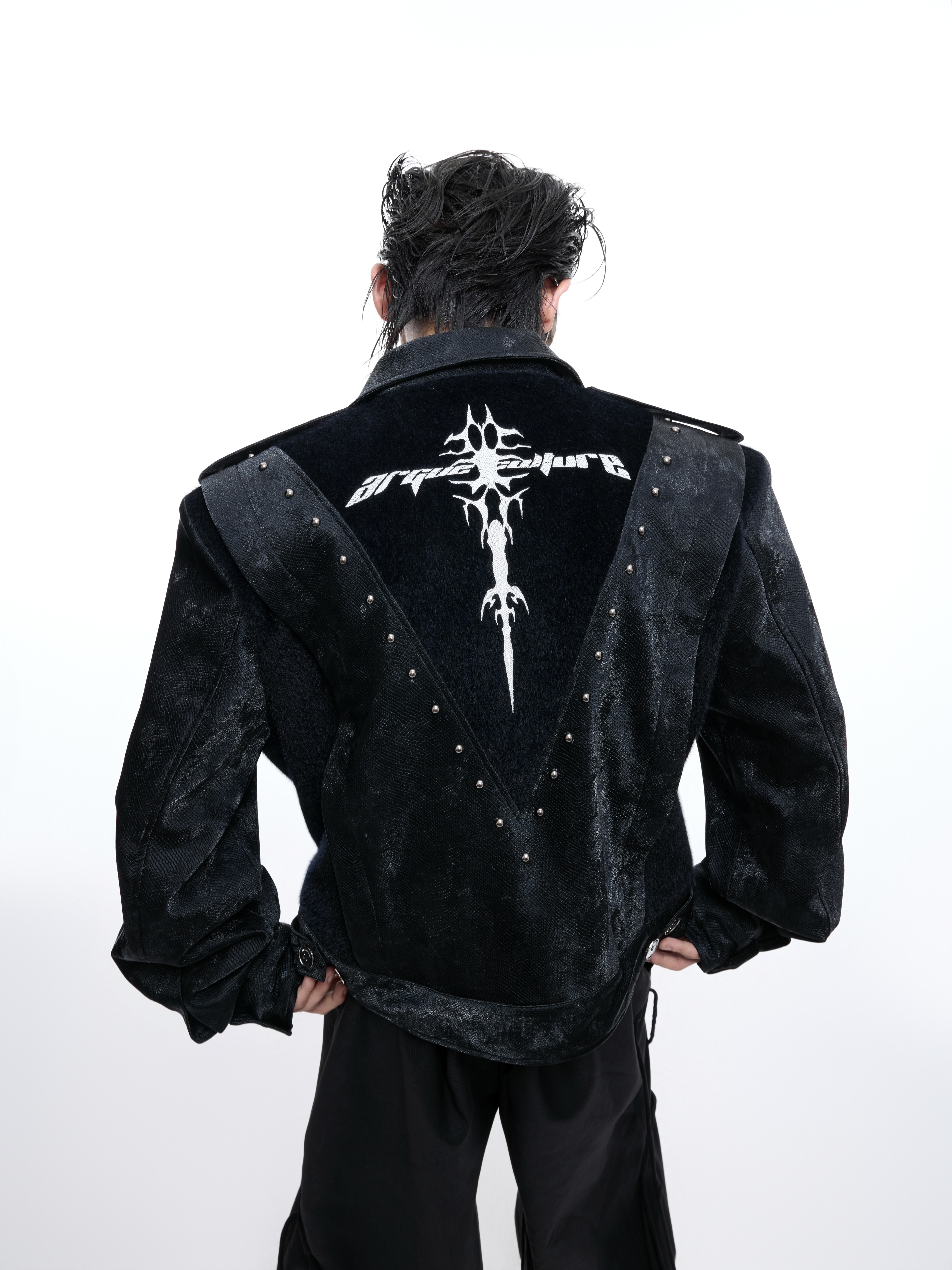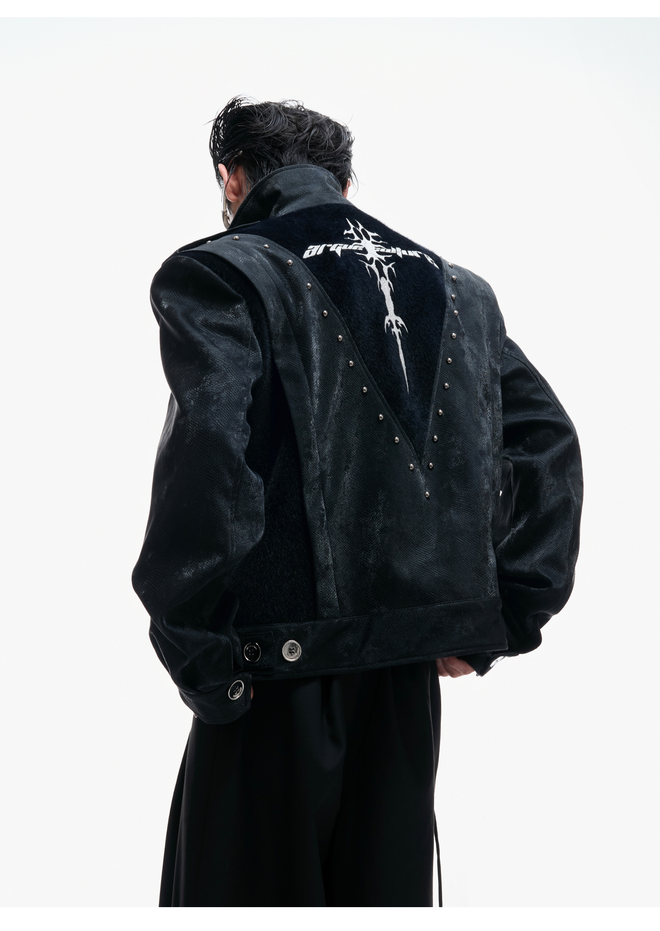 Studs Graphic Print Embroidery PU Leather Jacket WN20548