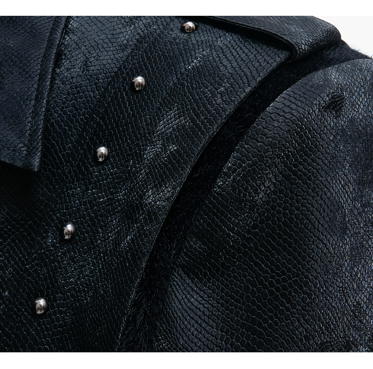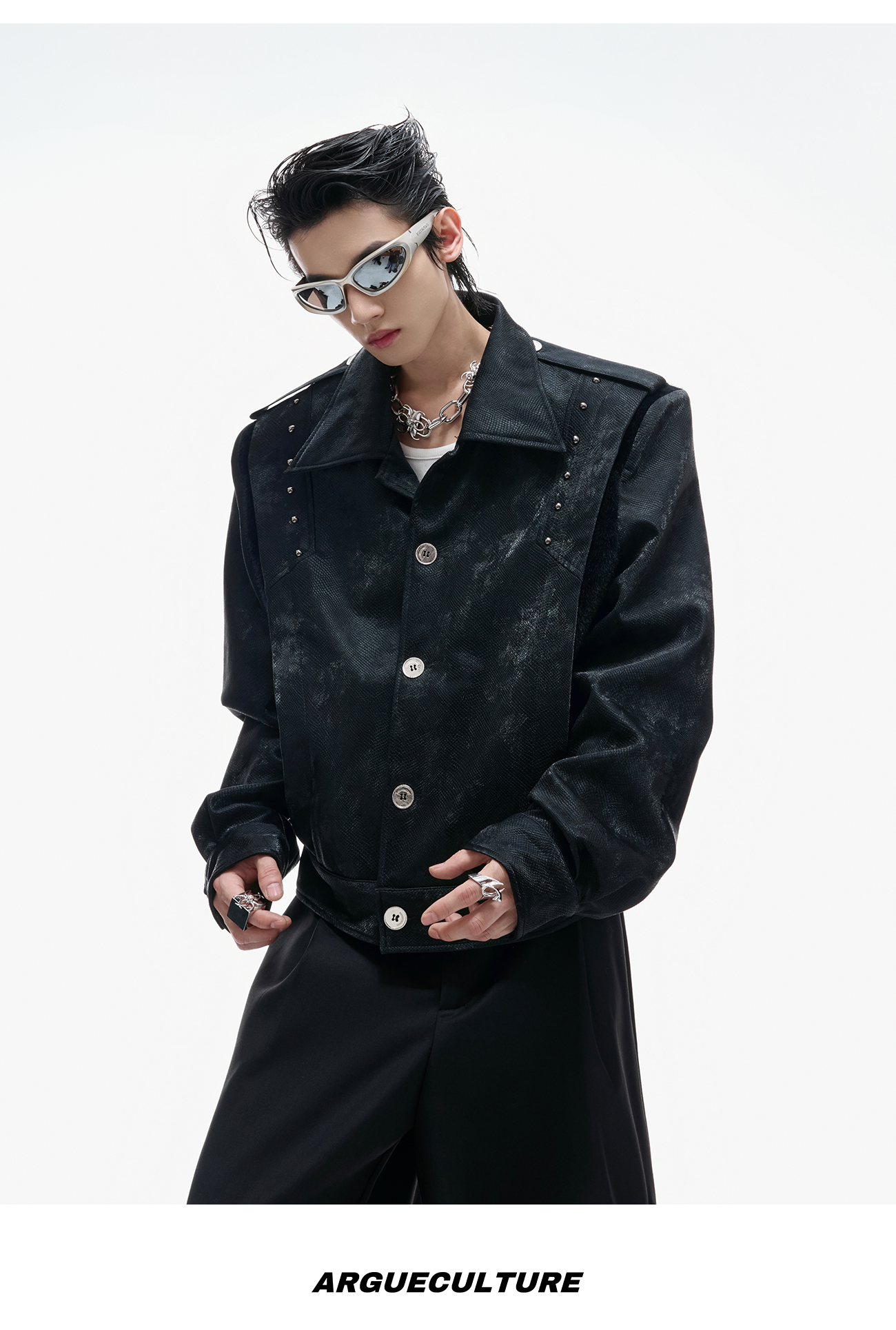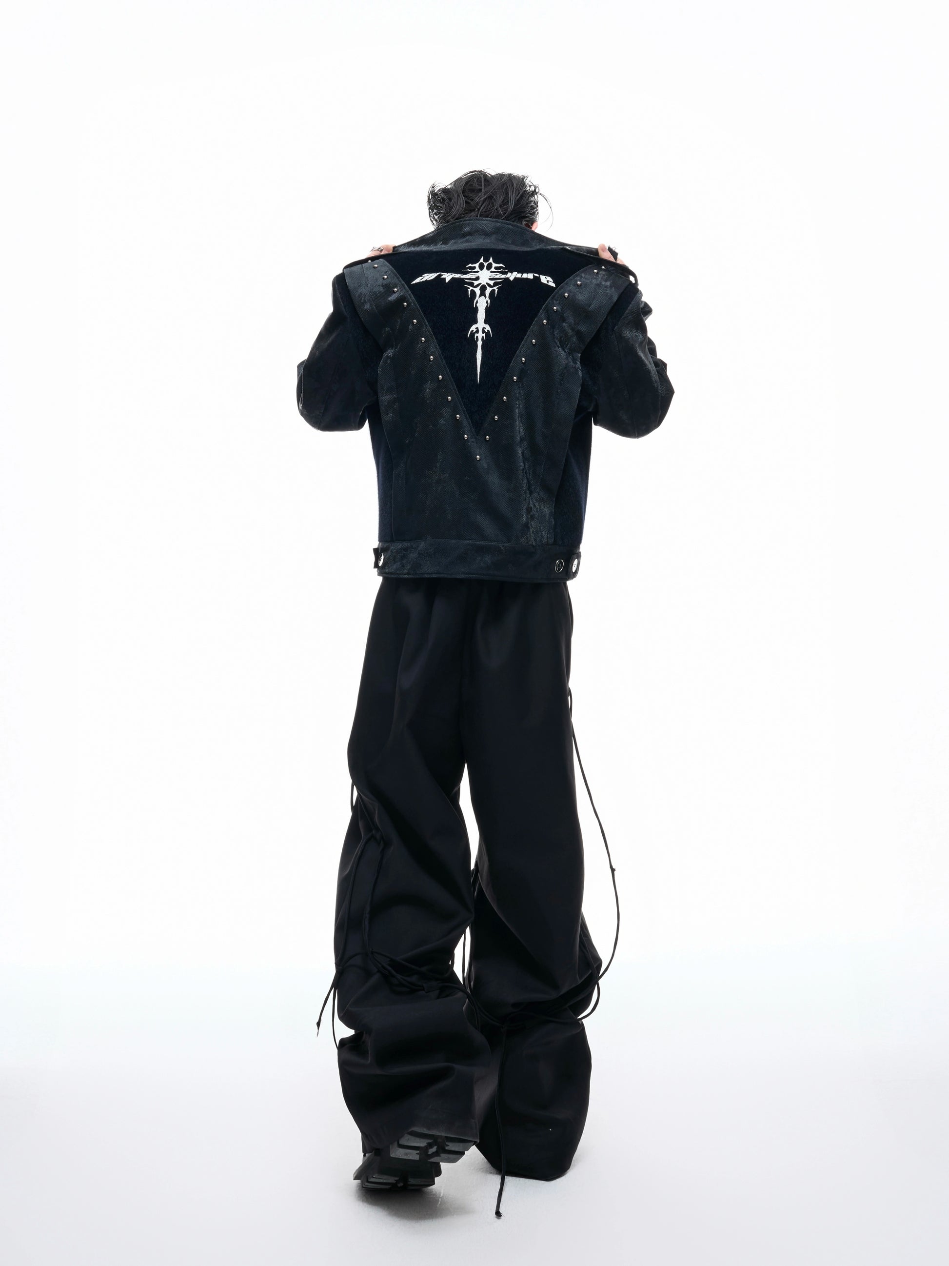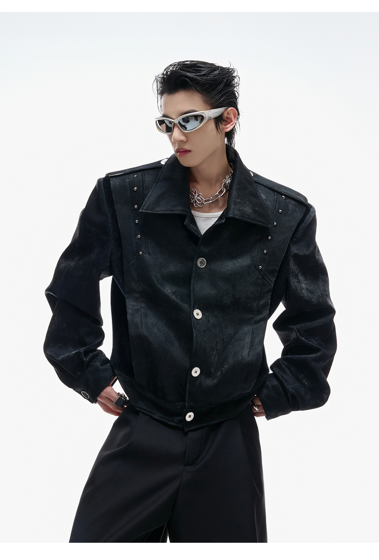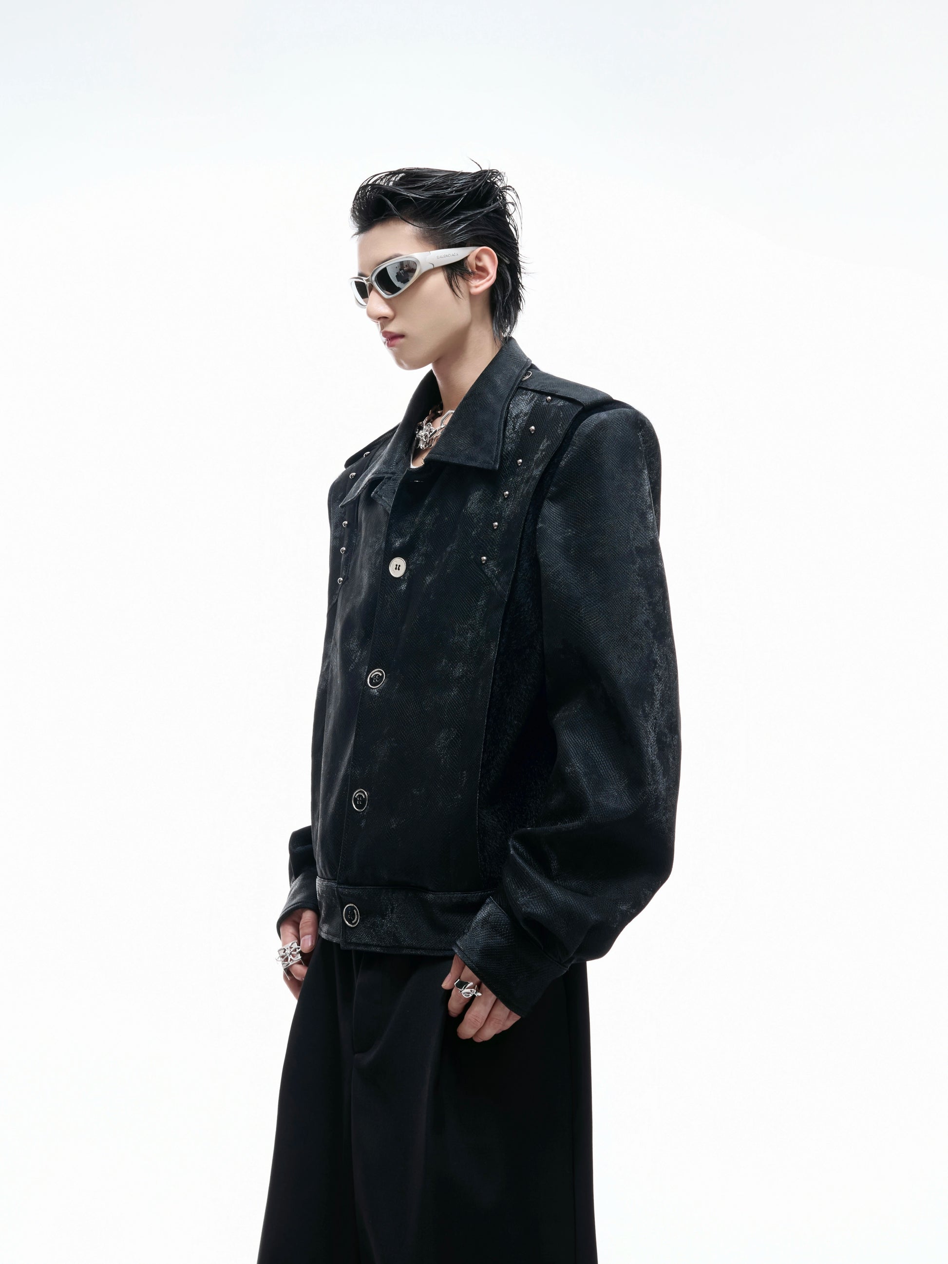 Studs Graphic Print Embroidery PU Leather Jacket WN20548