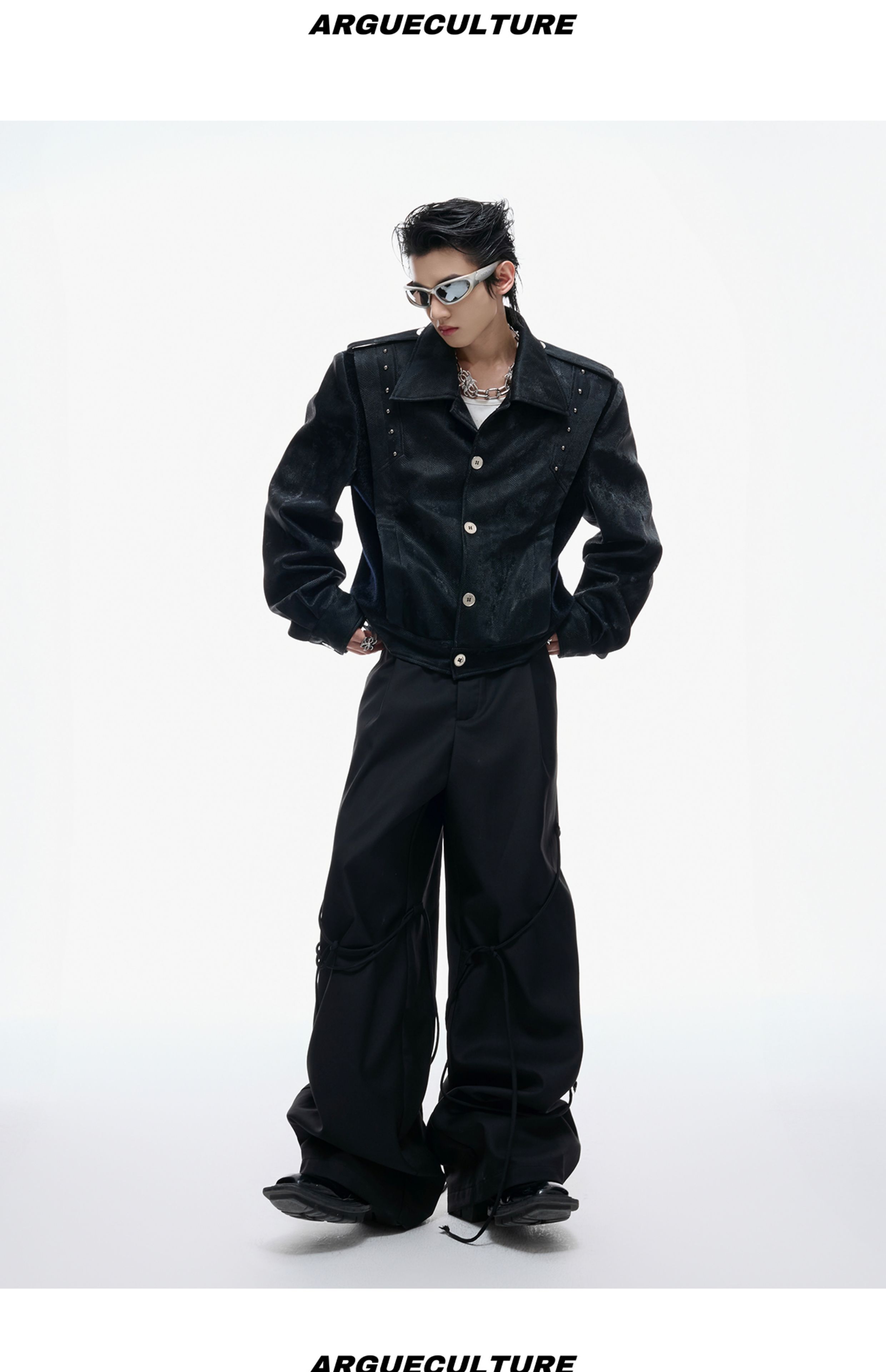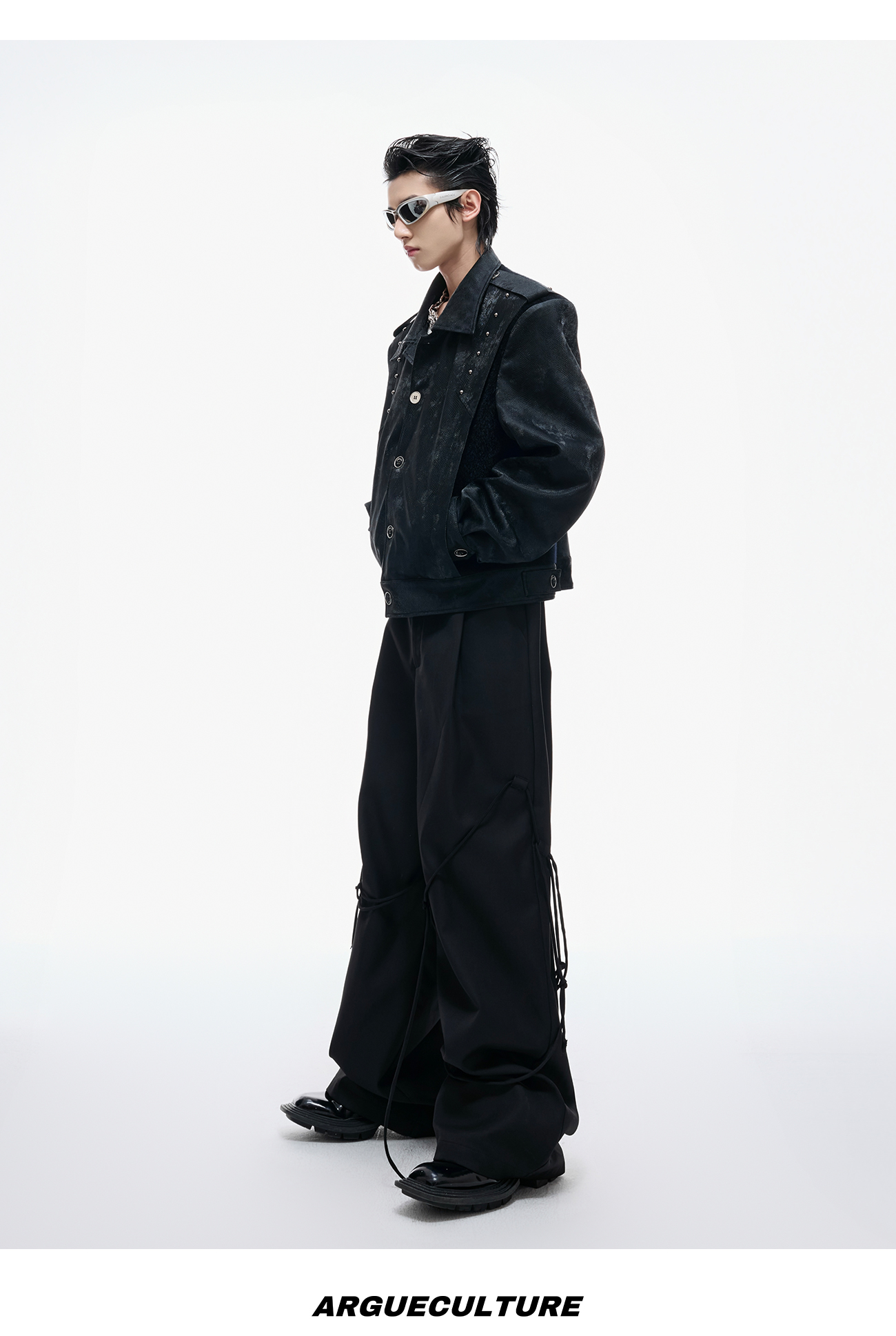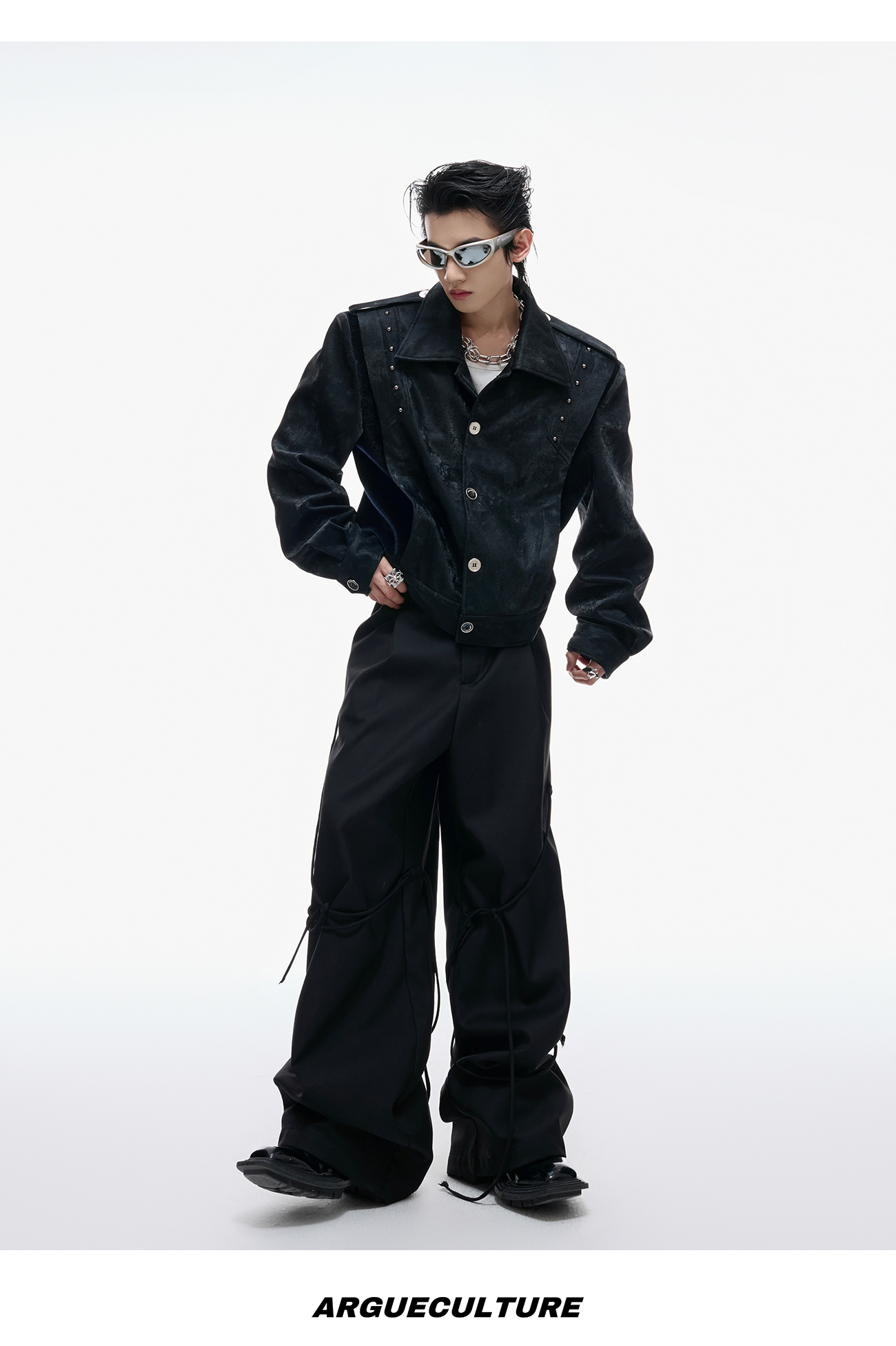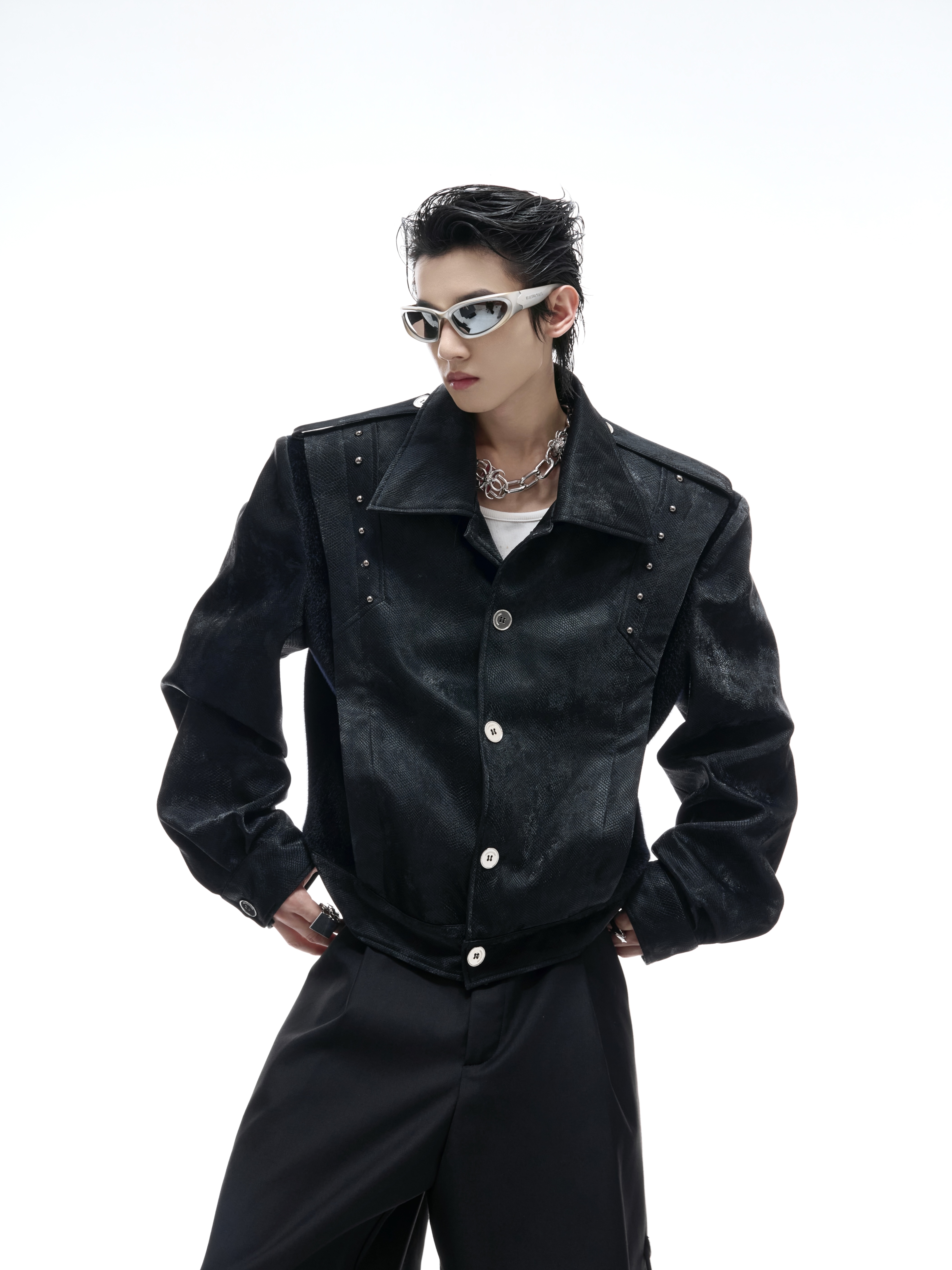 Studs Graphic Print Embroidery PU Leather Jacket WN20548