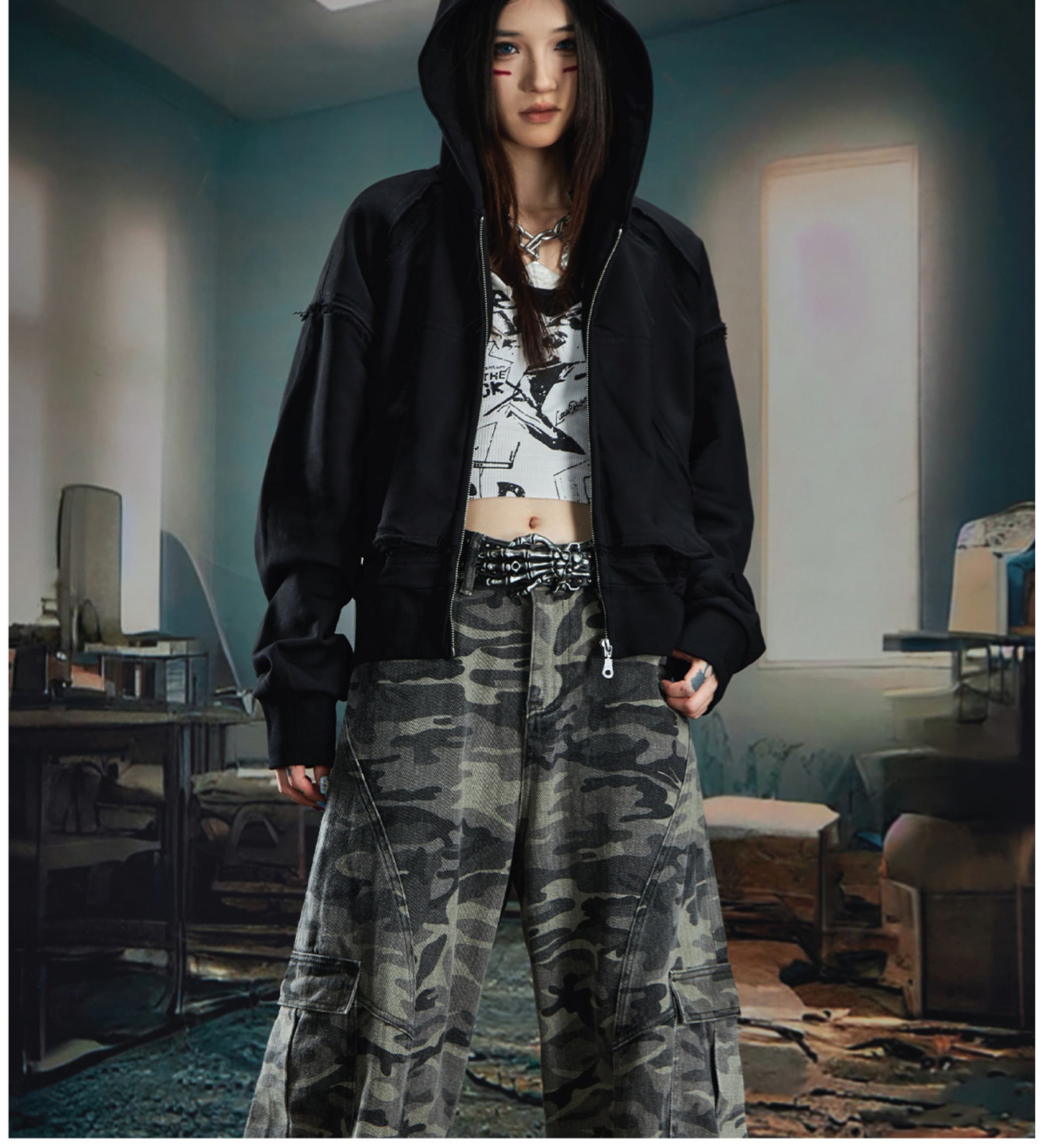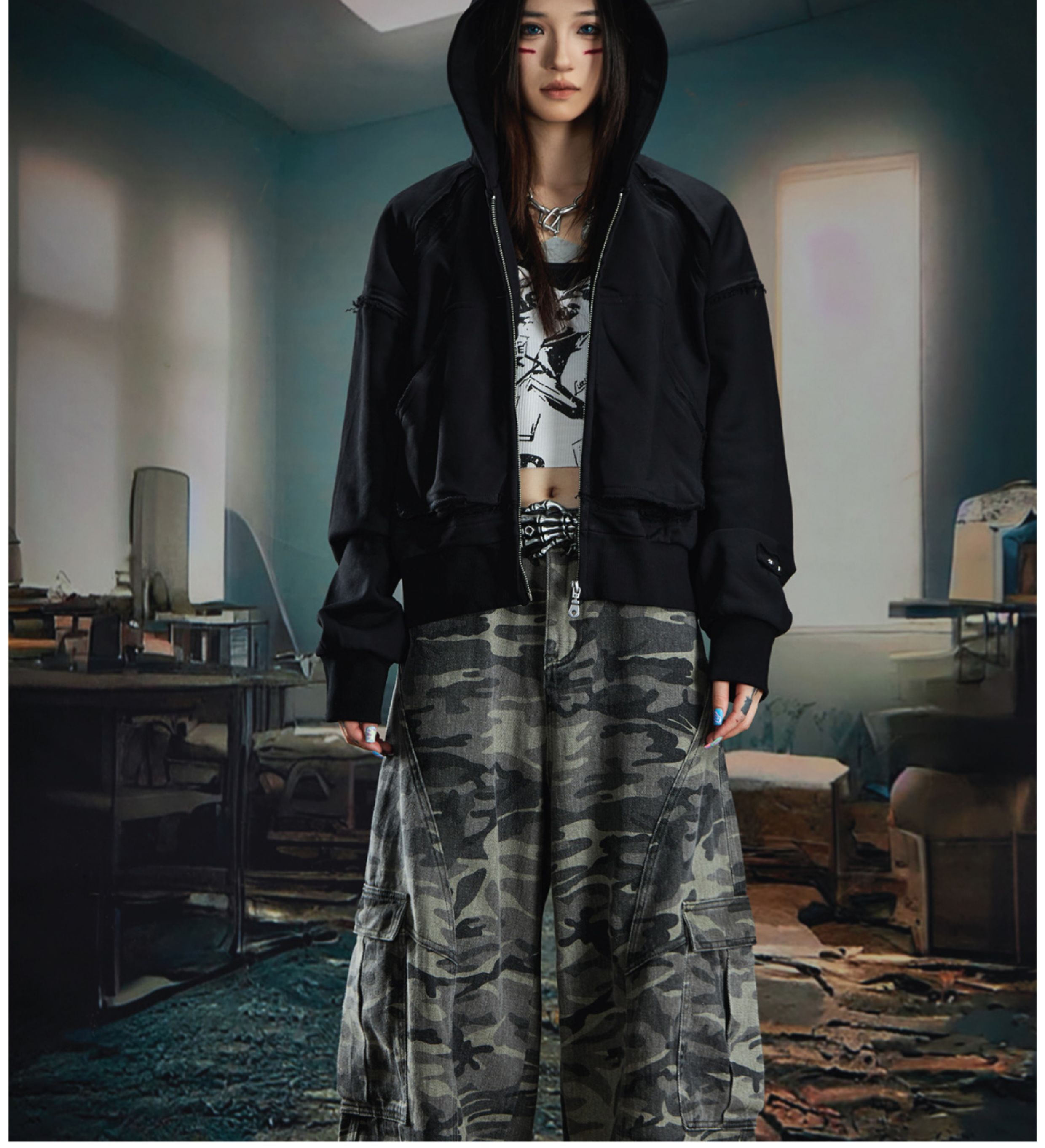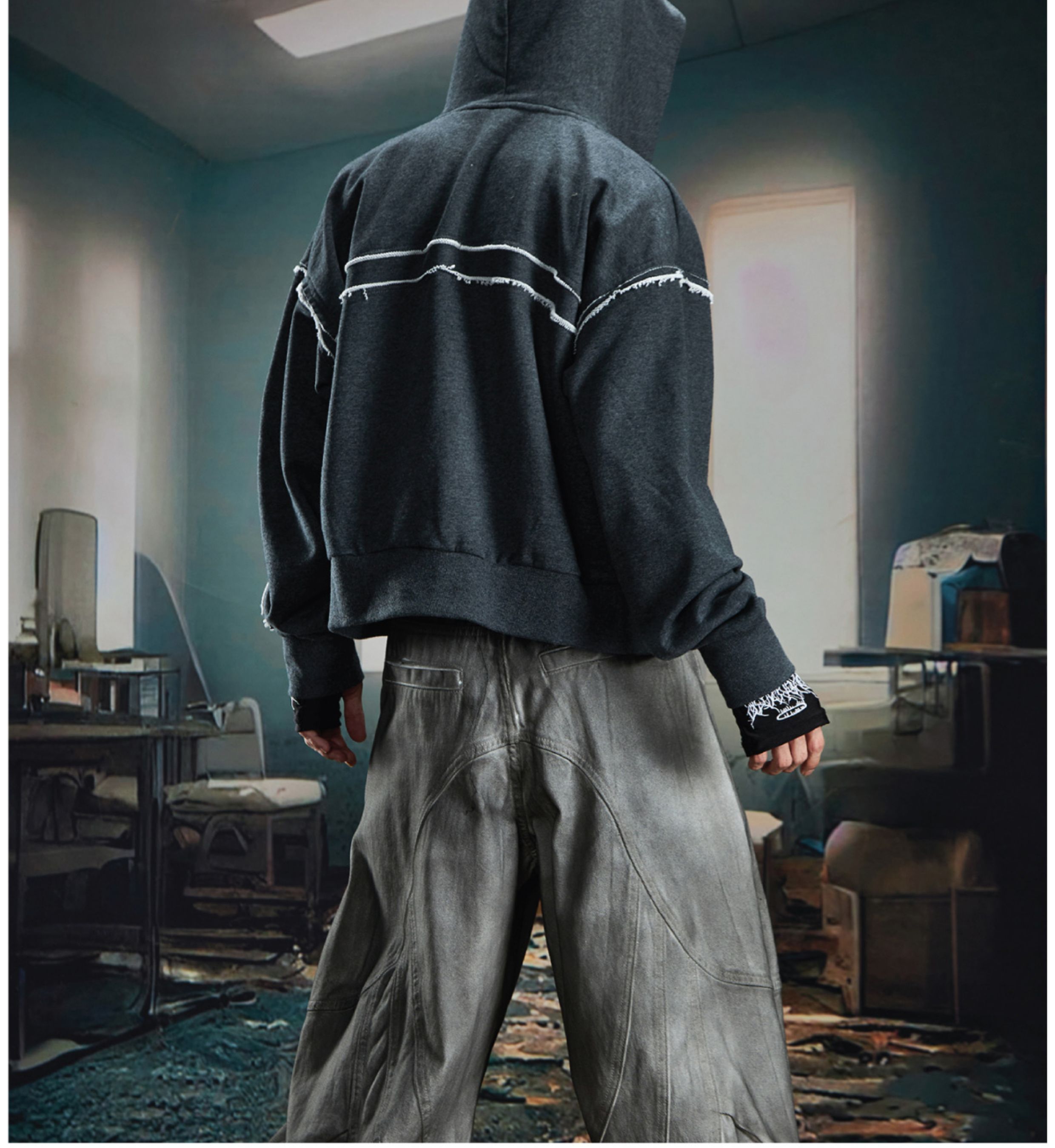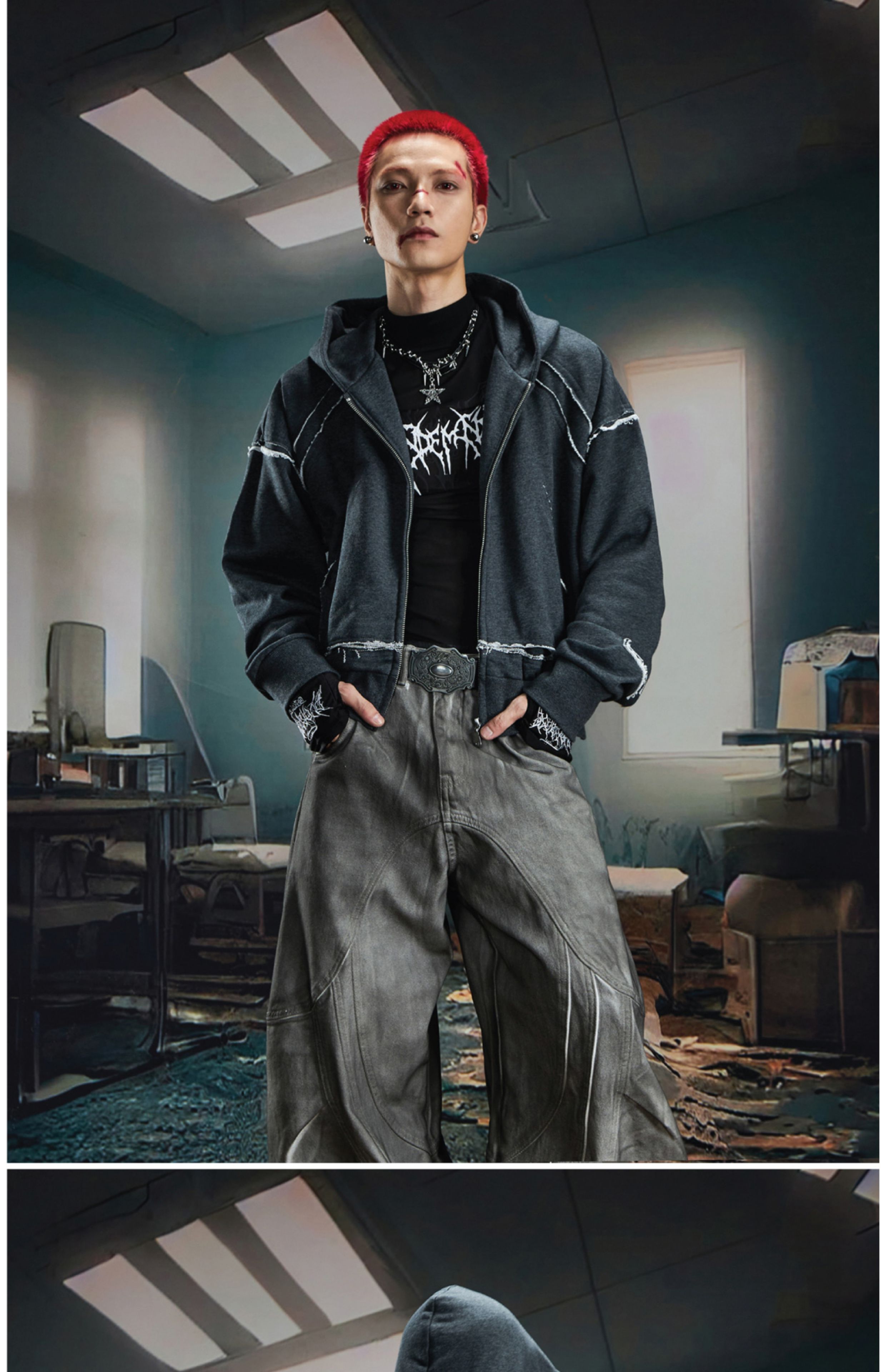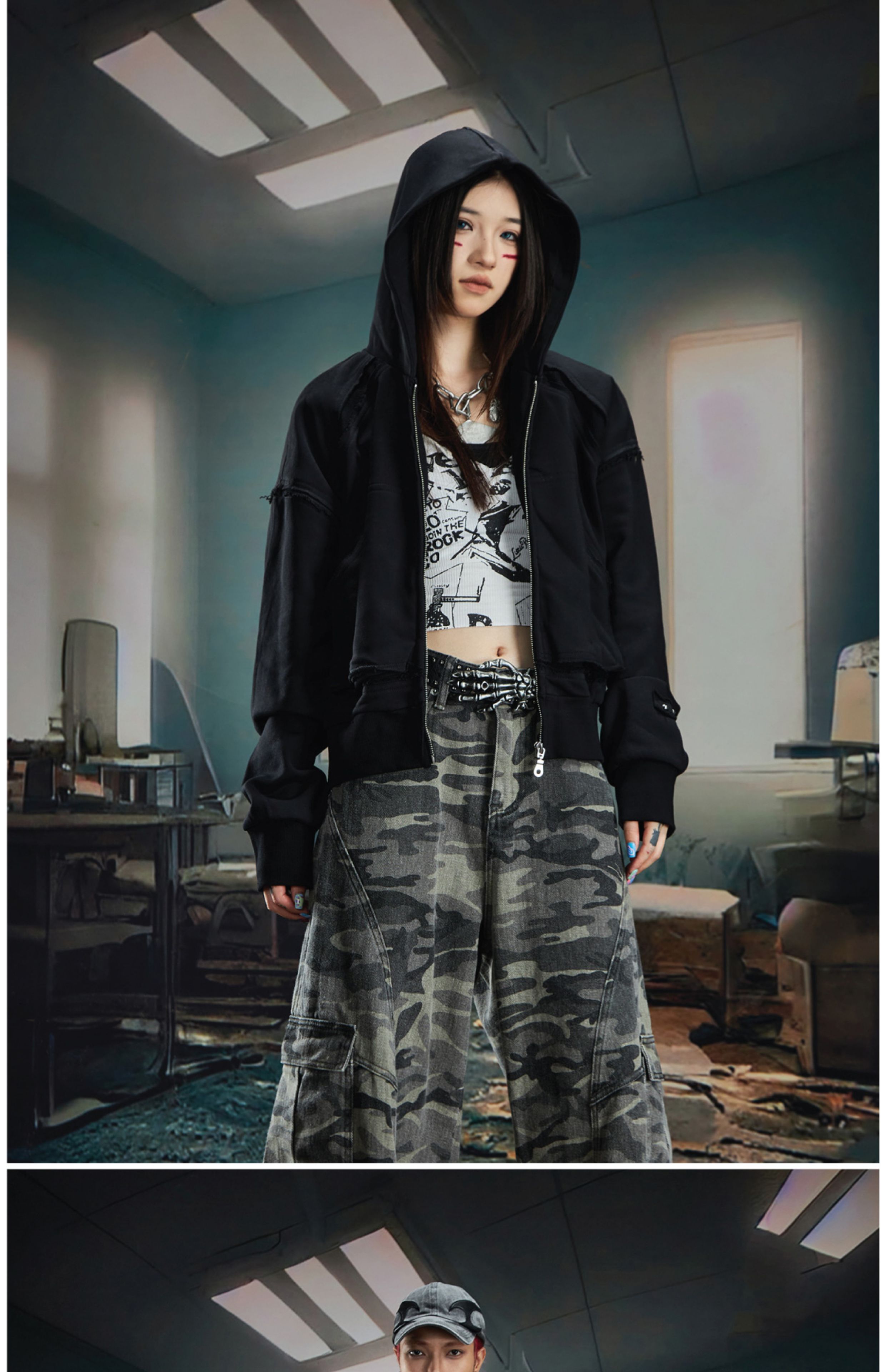 Fringe Deconstructed Patchwork Short Zipper Hoodie WN20583