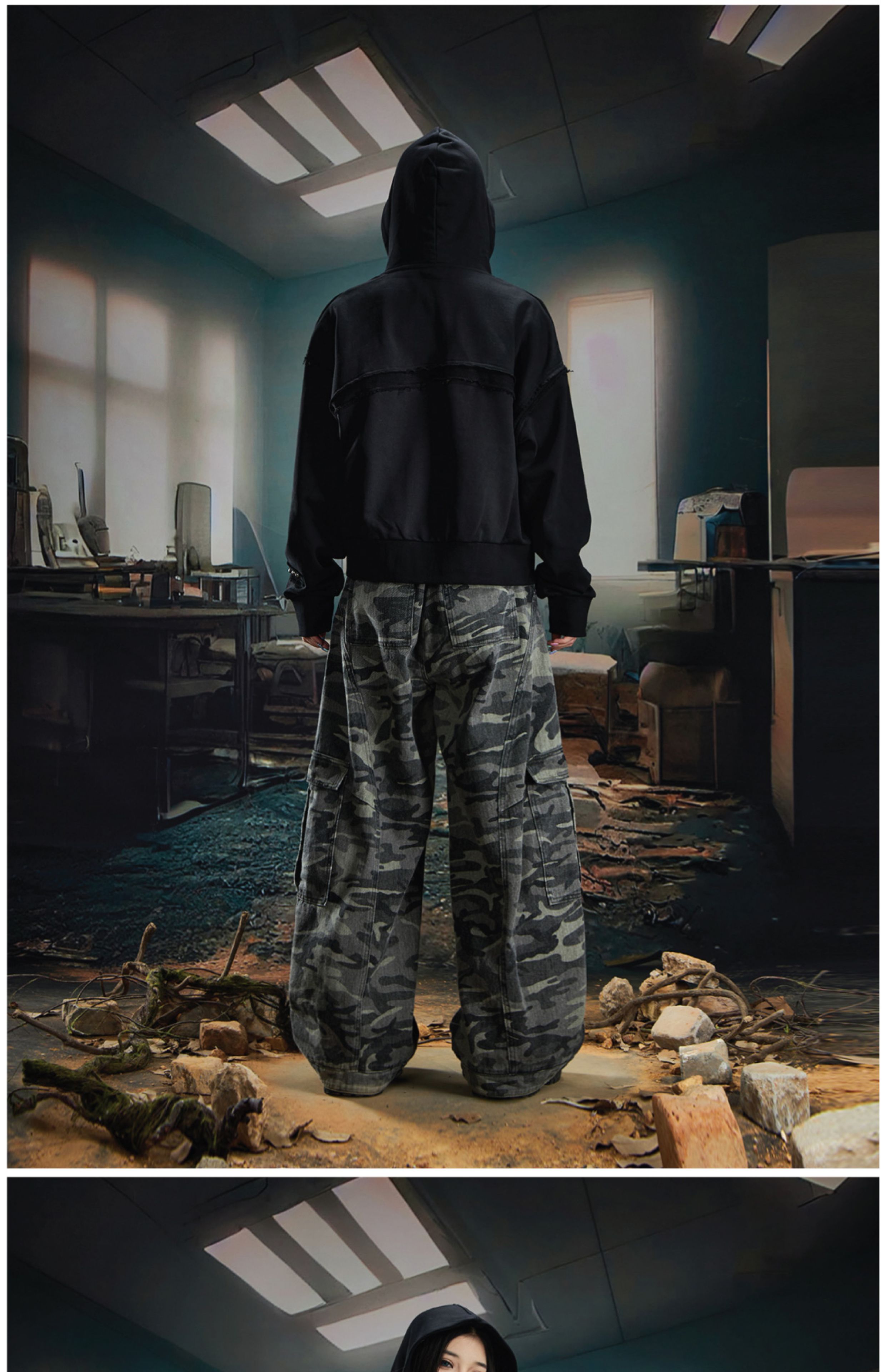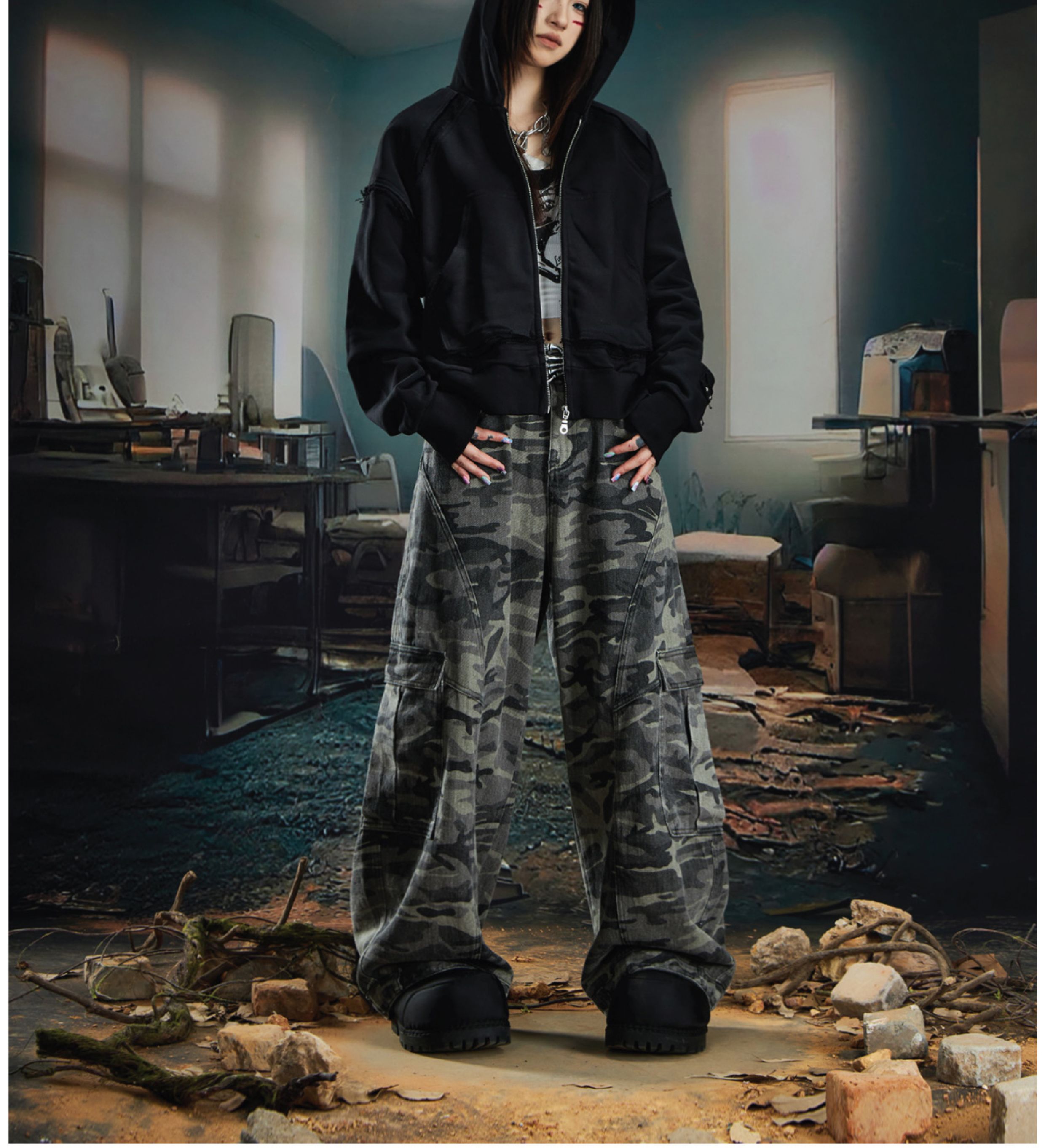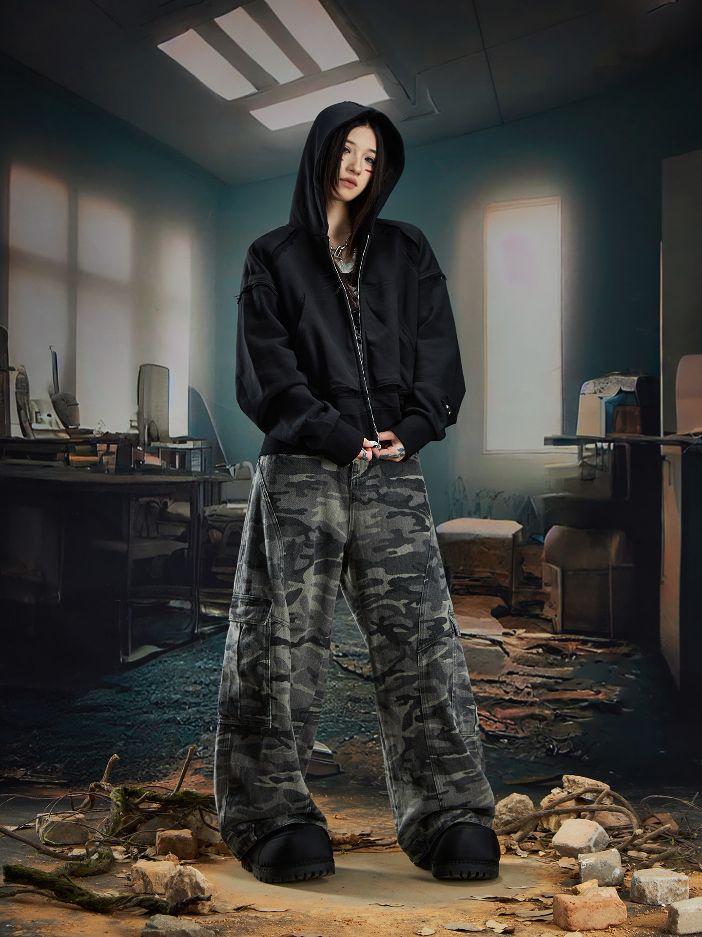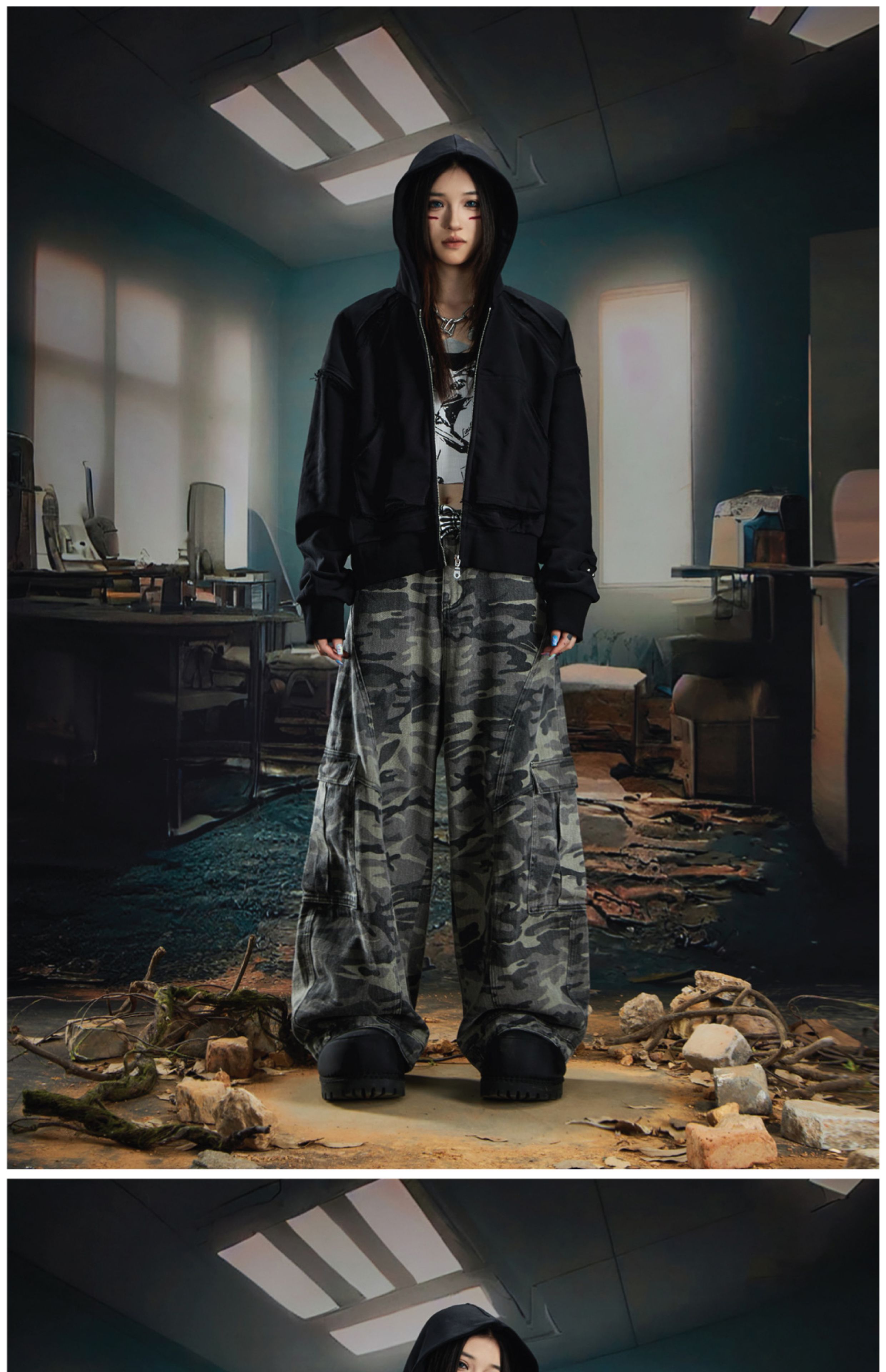Fringe Deconstructed Patchwork Short Zipper Hoodie WN20583