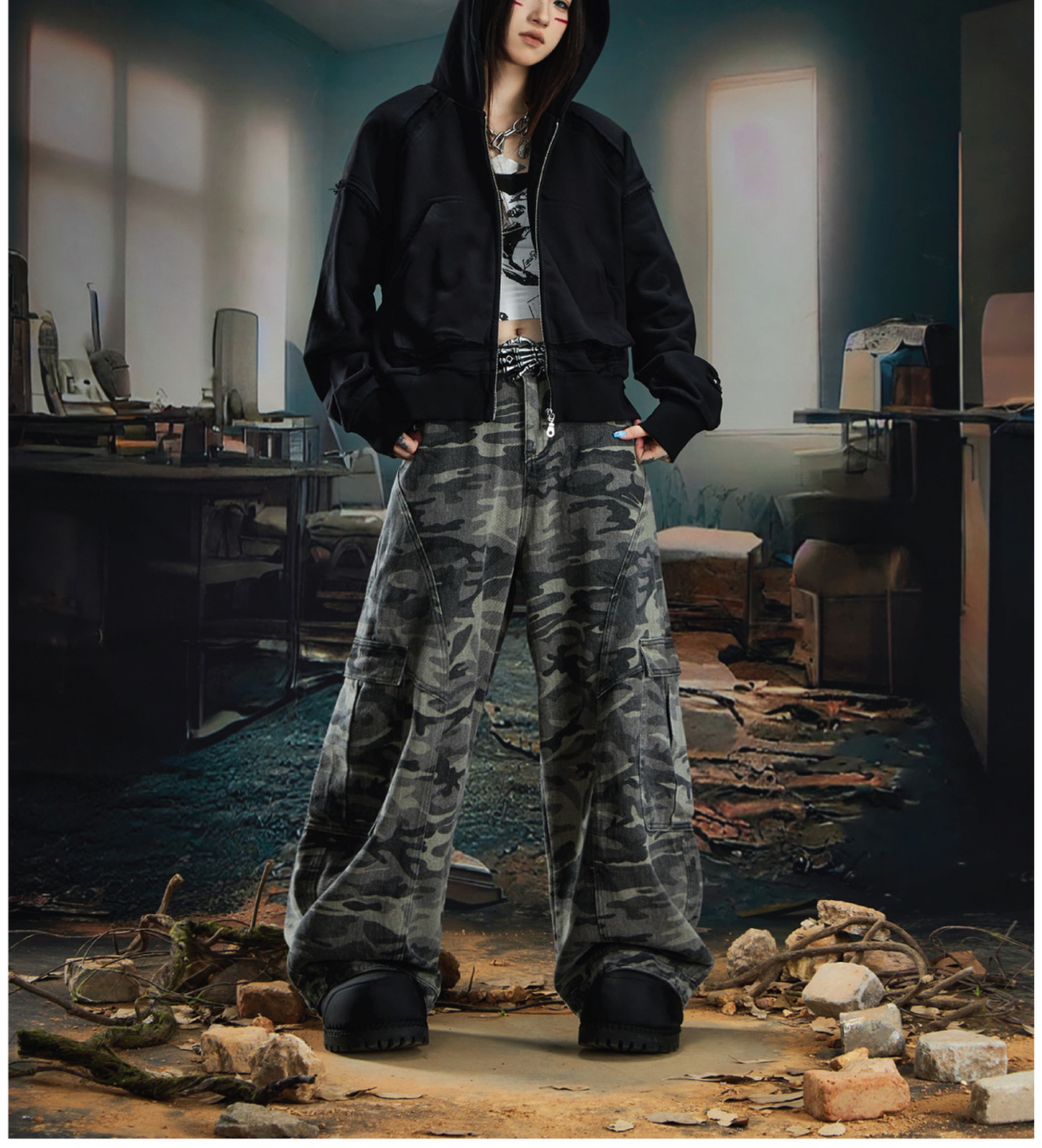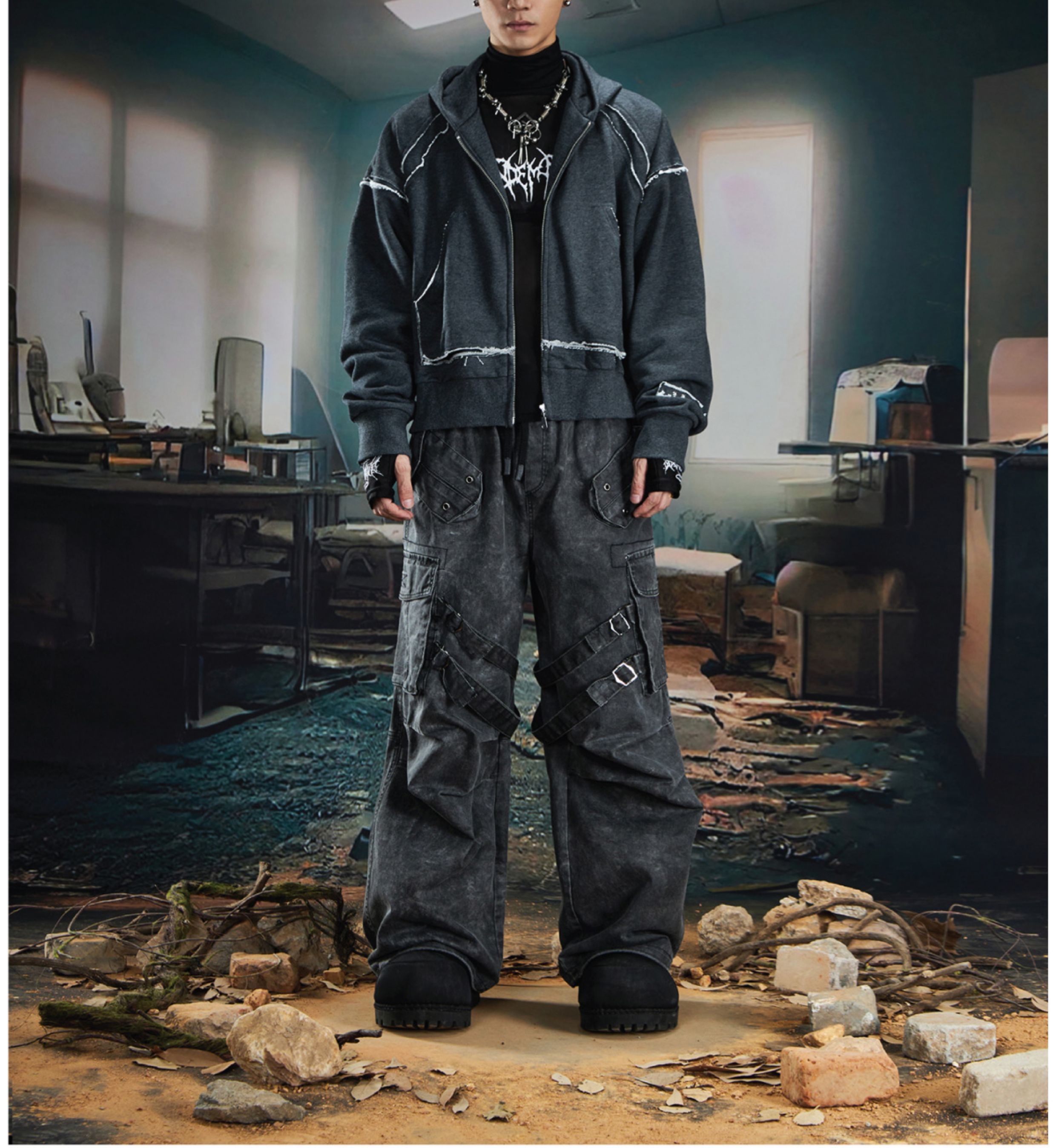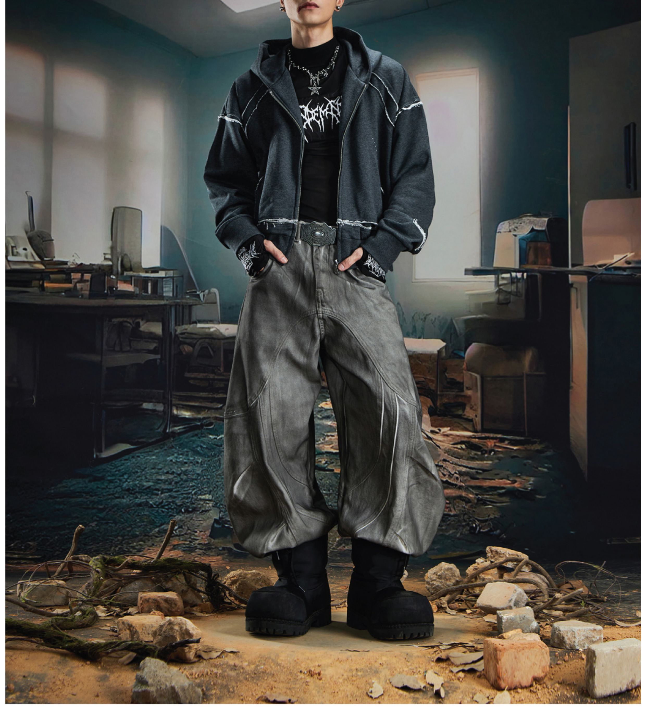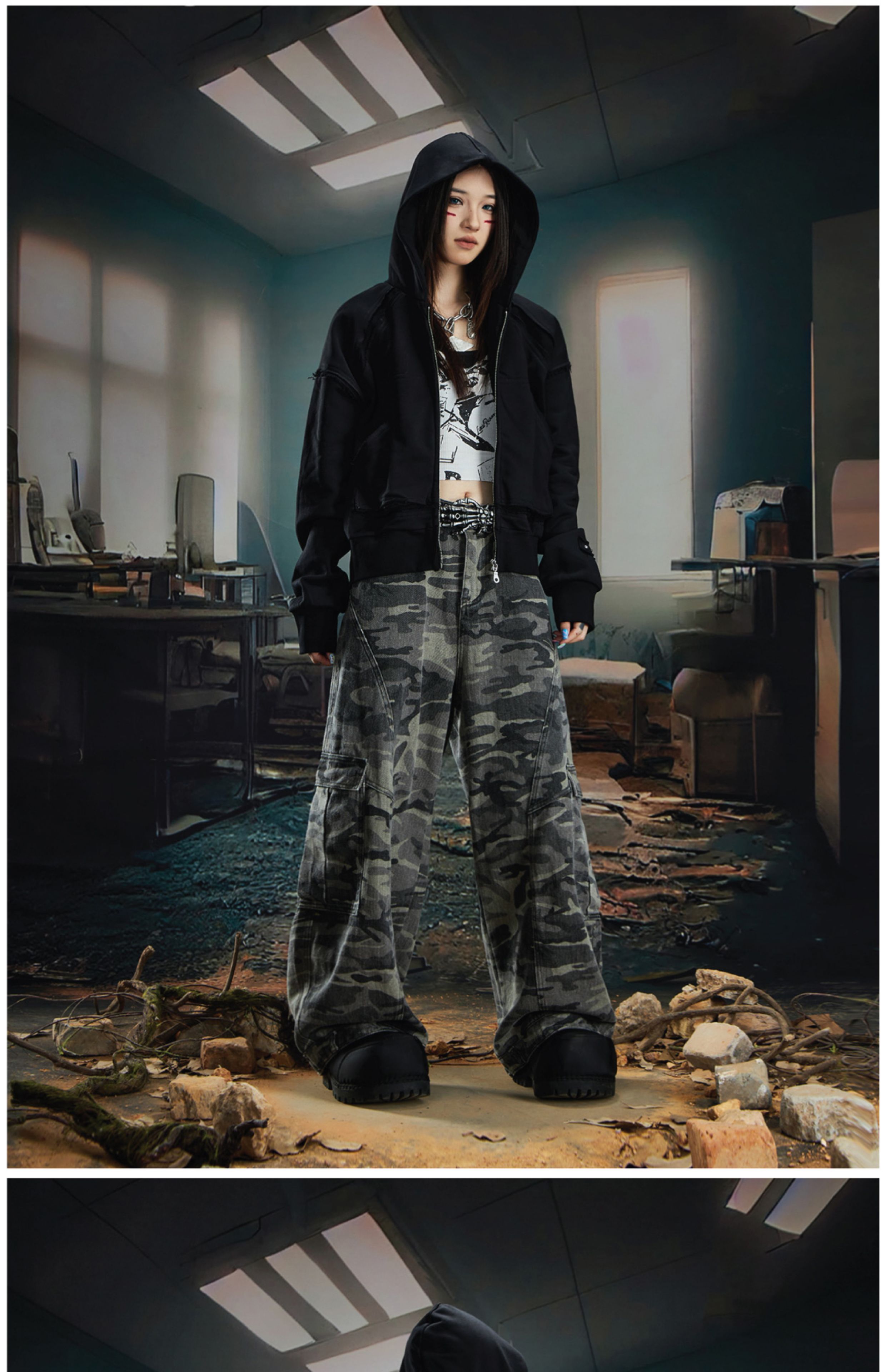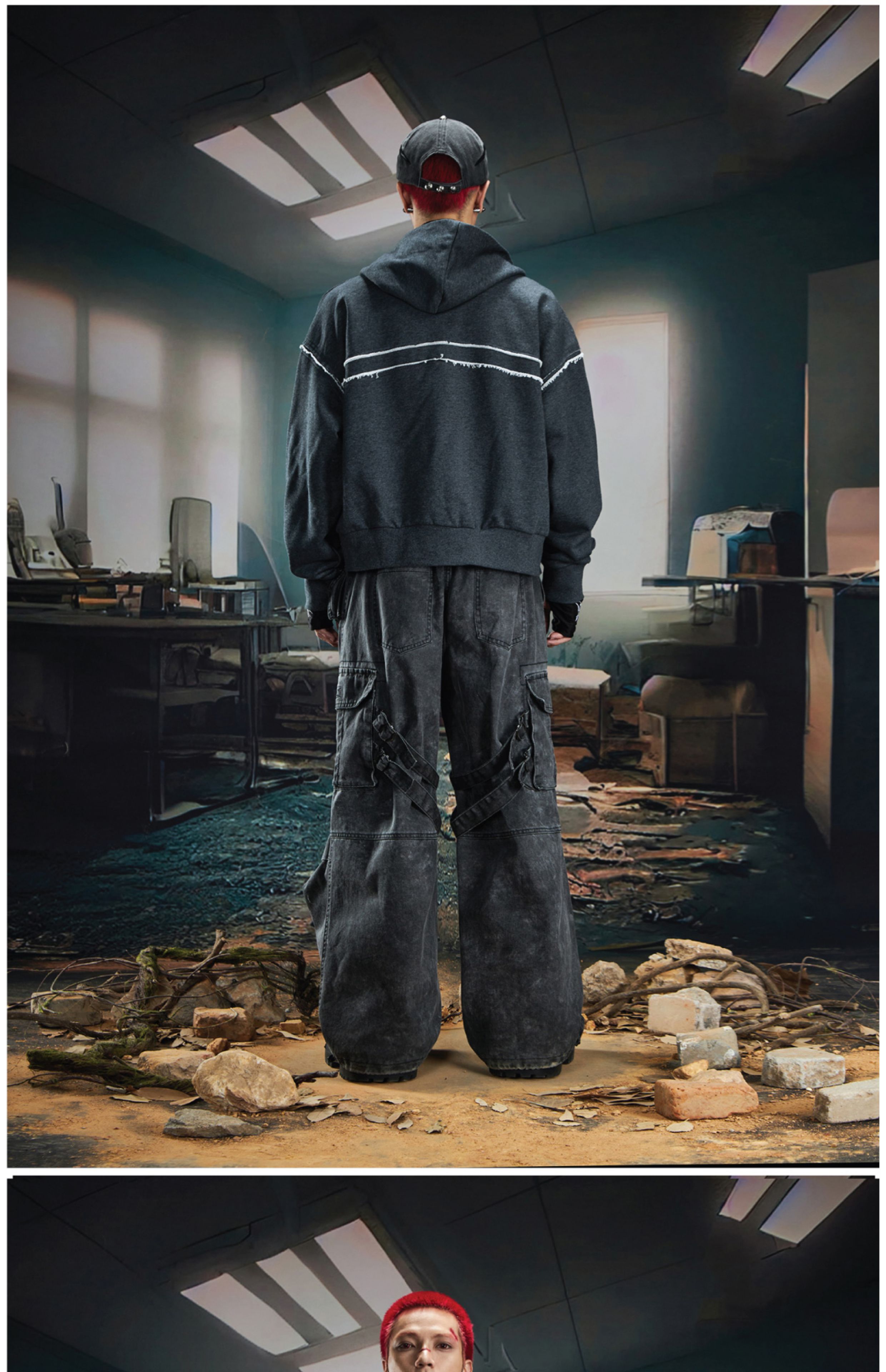 Fringe Deconstructed Patchwork Short Zipper Hoodie WN20583